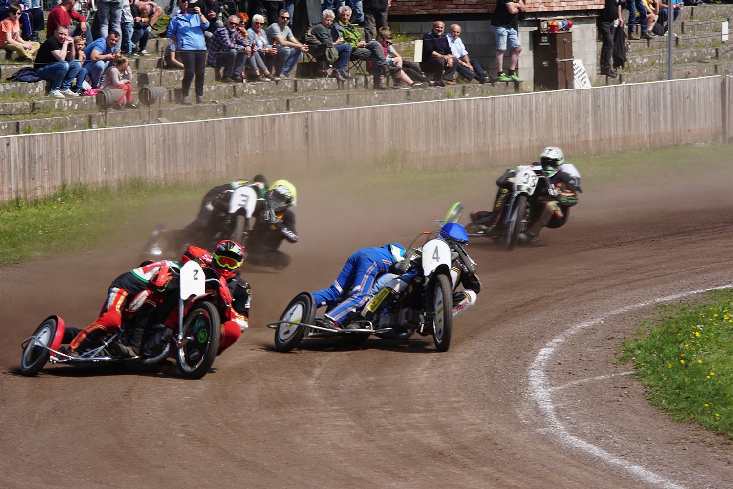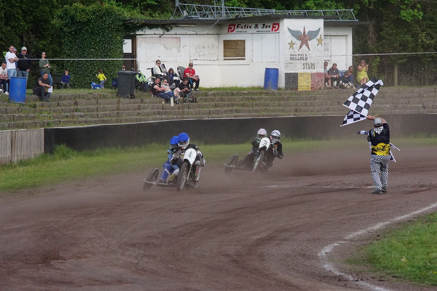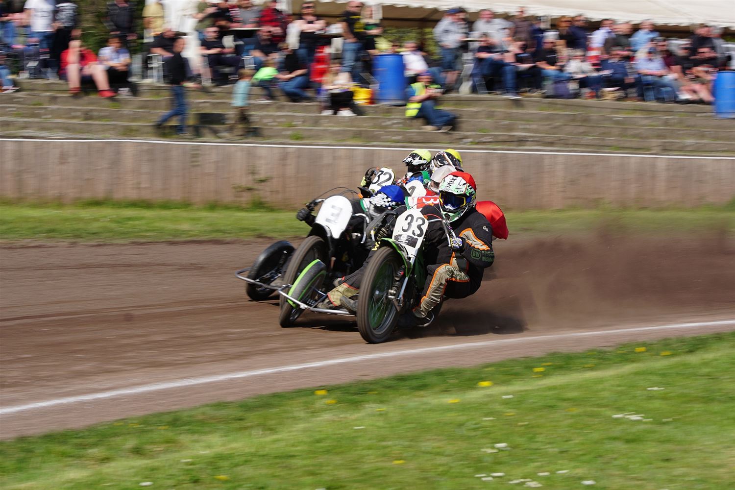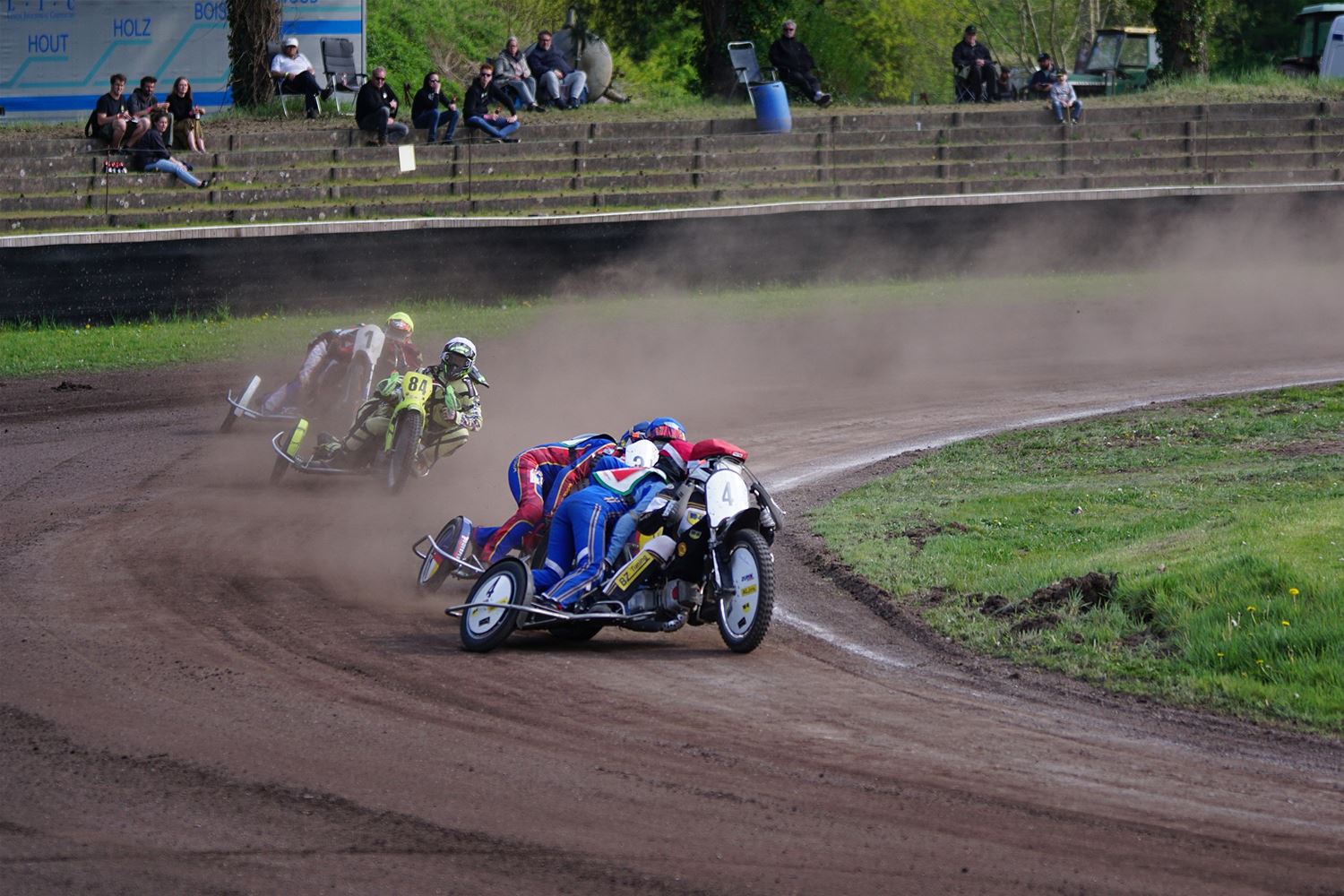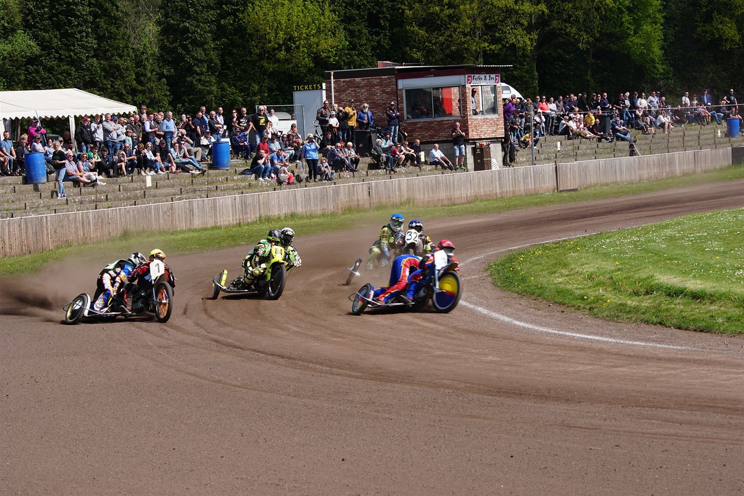 Eindelijk konden de speedwaymotoren weer ronken op Helzold. De zijspannen stonden vandaag centraal. Het werd vooral een Duitse aangelegenheid want na de verschillende manches ging de overwinning naar het duo Fabian Müller-Peter Maurer voor hun landgenoten Mike Kolb-Nadin Löffler en David-Kolb-Patrick Herbst. Bij de internationalen won de Oostenrijker Daniel Gappmaier, bij de nationalen de Nederlander Nynke Sijbesma en de 125 cc was een puur Nederlands onderonsje met als snelste Niek Meijerink. (foto's Stephan Volders)72866