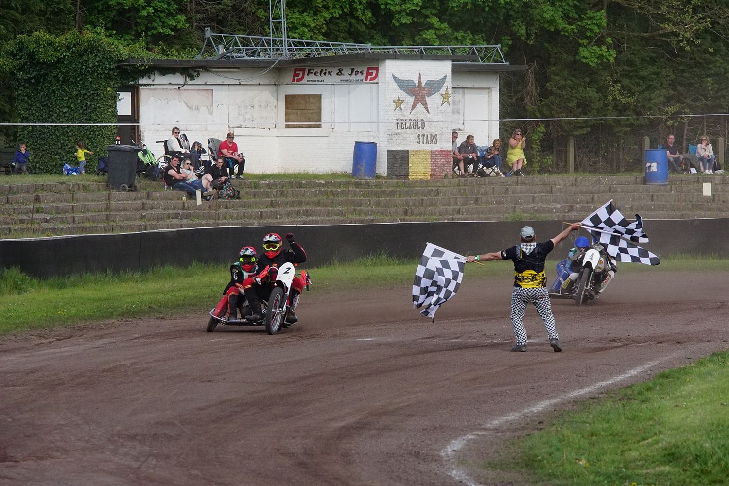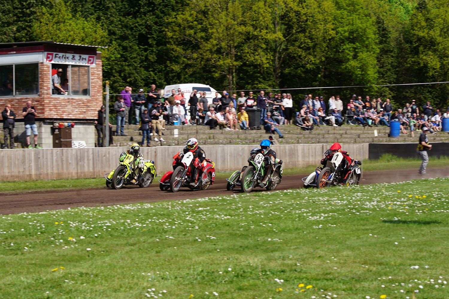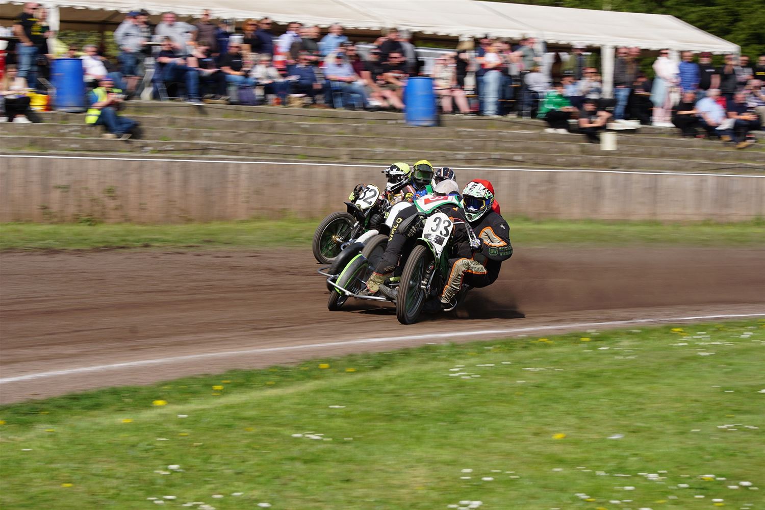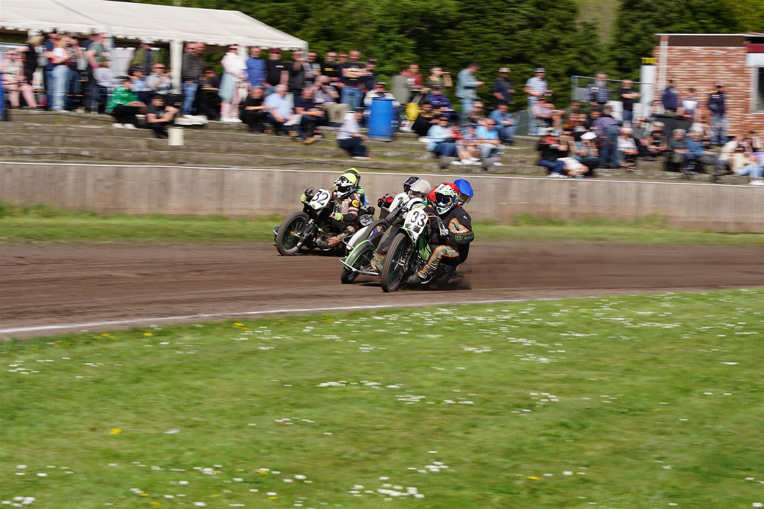 Eindelijk konden de speedwaymotoren weer ronken op Helzold. De zijspannen stonden vandaag centraal. Het werd vooral een Duitse aangelegenheid want na de verschillende manches ging de overwinning naar het duo Fabian Müller-Peter Maurer voor hun landgenoten Mike Kolb-Nadin Löffler en David-Kolb-Patrick Herbst. Bij de internationalen won de Oostenrijker Daniel Gappmaier, bij de nationalen de Nederlander Nynke Sijbesma en de 125 cc was een puur Nederlands onderonsje met als snelste Niek Meijerink. (foto's Stephan Volders)72866