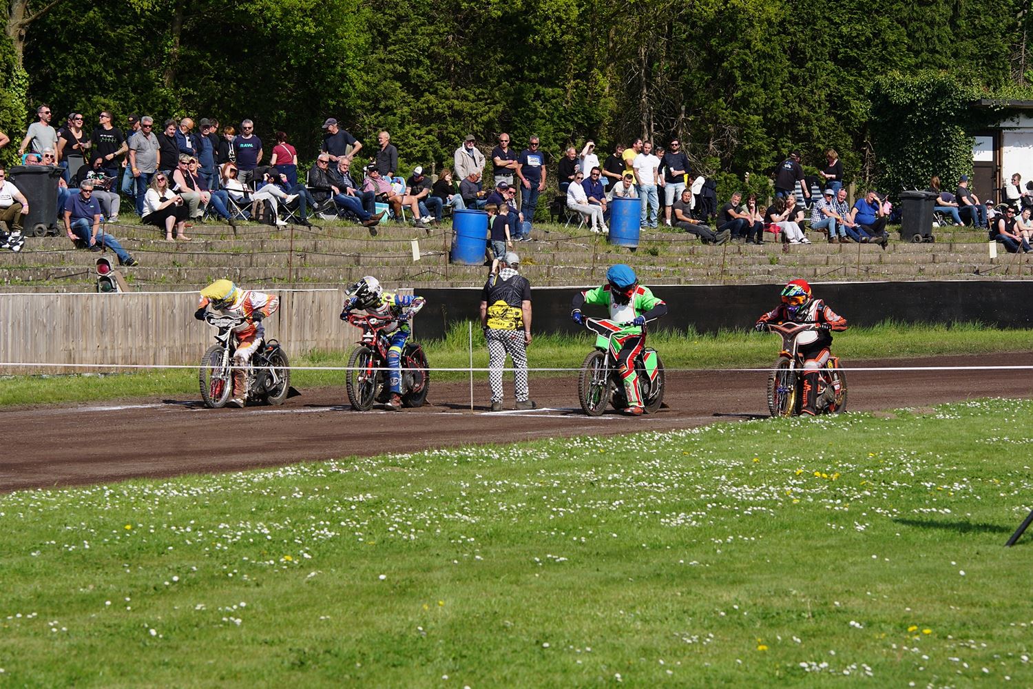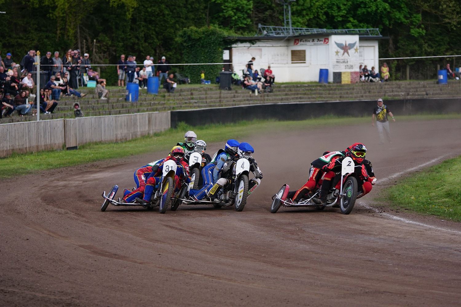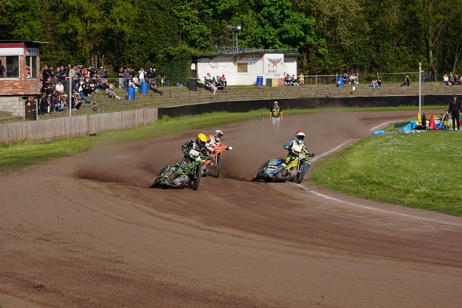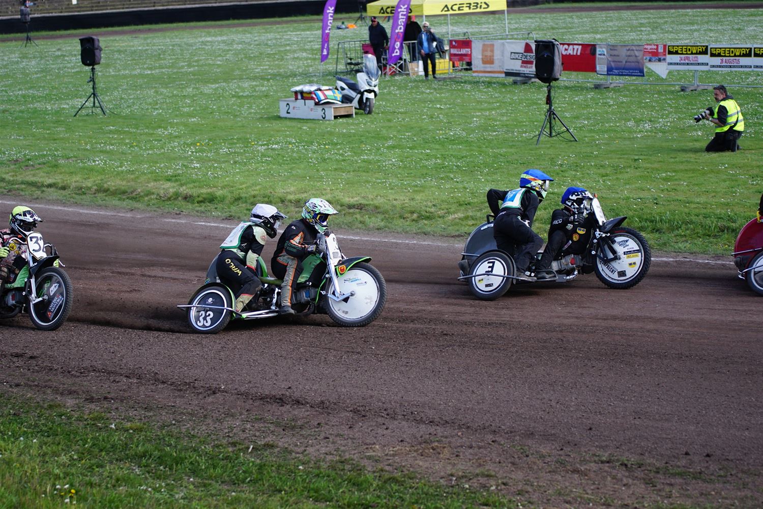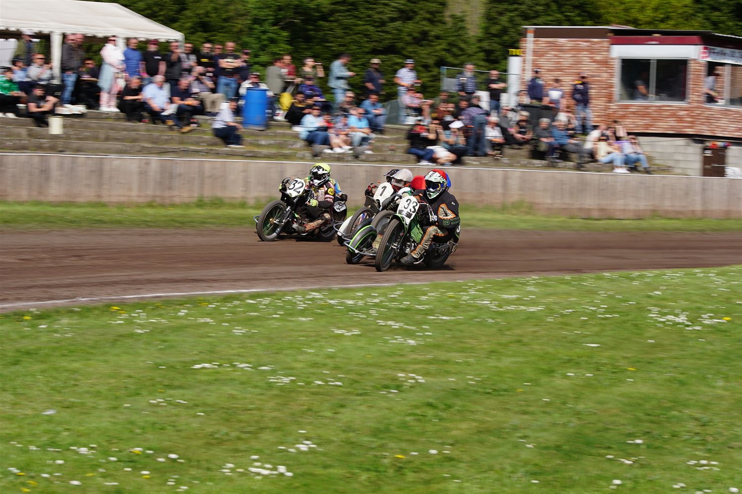 Eindelijk konden de speedwaymotoren weer ronken op Helzold. De zijspannen stonden vandaag centraal. Het werd vooral een Duitse aangelegenheid want na de verschillende manches ging de overwinning naar het duo Fabian Müller-Peter Maurer voor hun landgenoten Mike Kolb-Nadin Löffler en David-Kolb-Patrick Herbst. Bij de internationalen won de Oostenrijker Daniel Gappmaier, bij de nationalen de Nederlander Nynke Sijbesma en de 125 cc was een puur Nederlands onderonsje met als snelste Niek Meijerink. (foto's Stephan Volders)72866