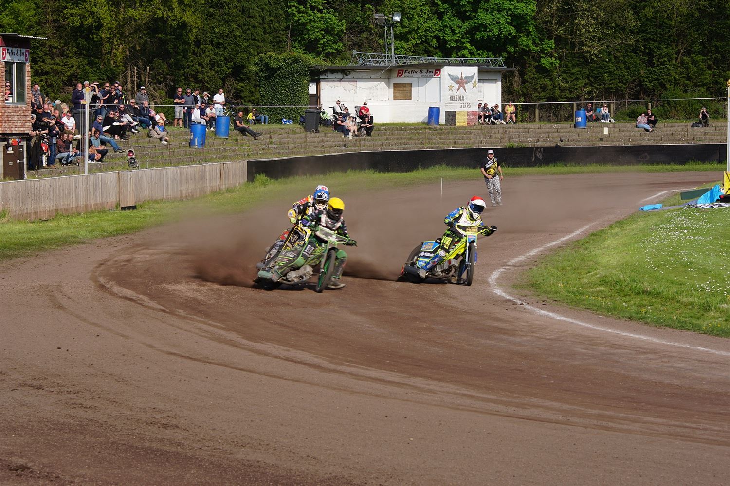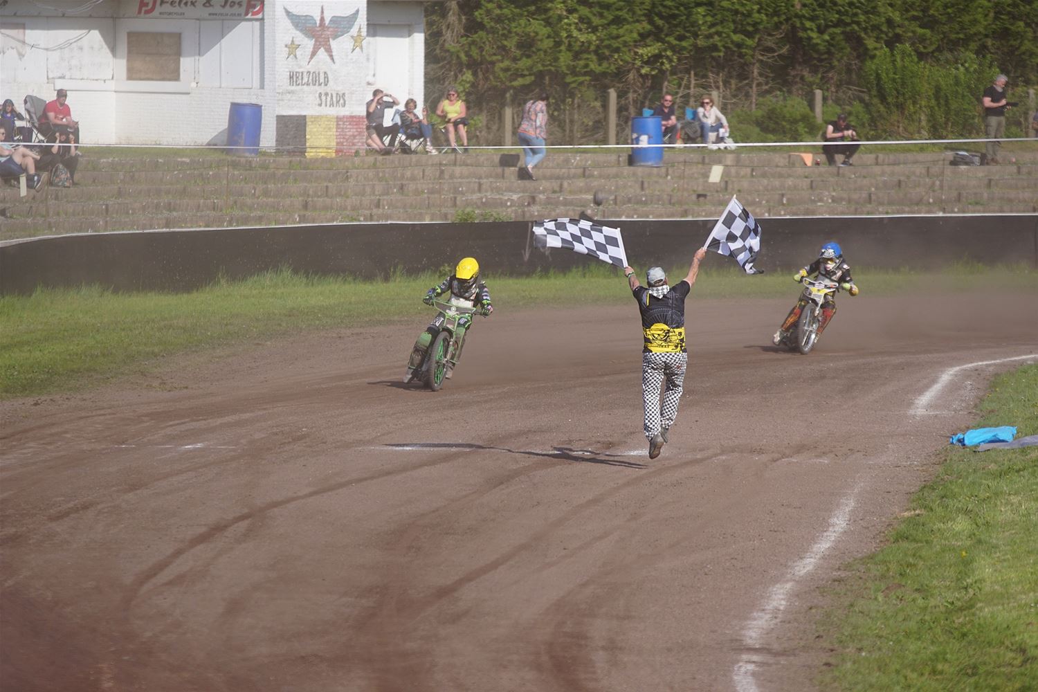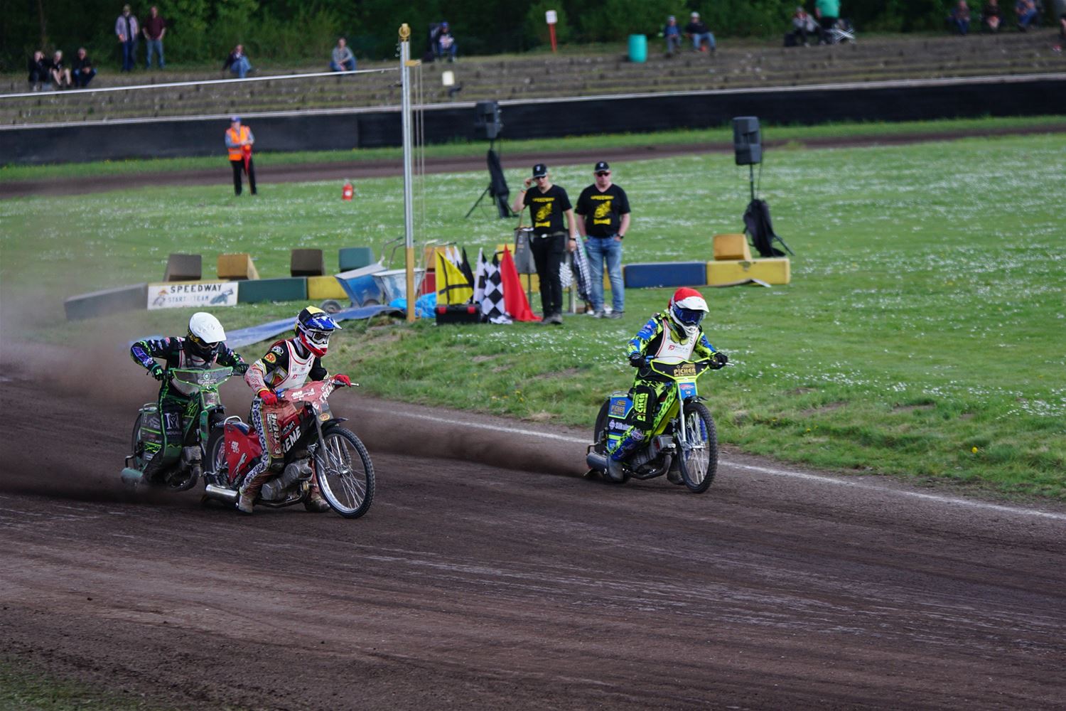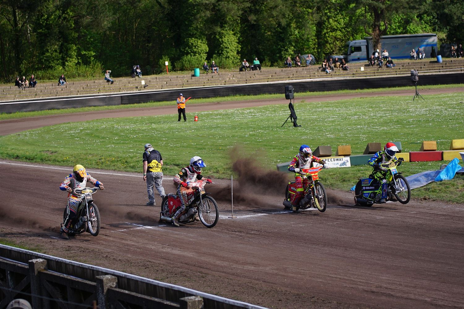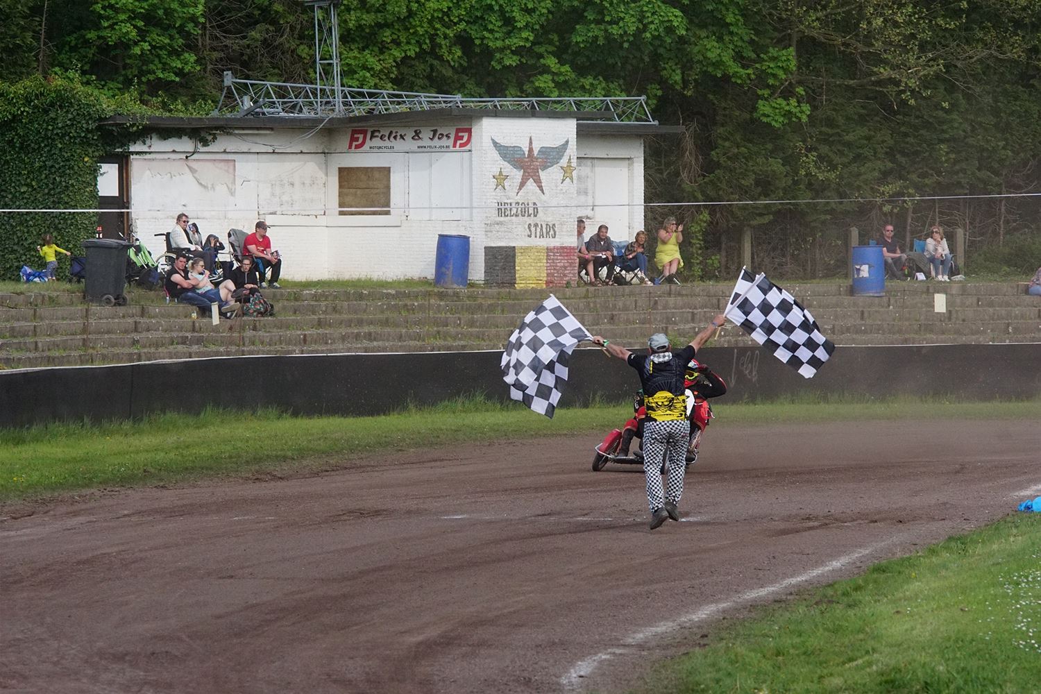 Eindelijk konden de speedwaymotoren weer ronken op Helzold. De zijspannen stonden vandaag centraal. Het werd vooral een Duitse aangelegenheid want na de verschillende manches ging de overwinning naar het duo Fabian Müller-Peter Maurer voor hun landgenoten Mike Kolb-Nadin Löffler en David-Kolb-Patrick Herbst. Bij de internationalen won de Oostenrijker Daniel Gappmaier, bij de nationalen de Nederlander Nynke Sijbesma en de 125 cc was een puur Nederlands onderonsje met als snelste Niek Meijerink. (foto's Stephan Volders)72866