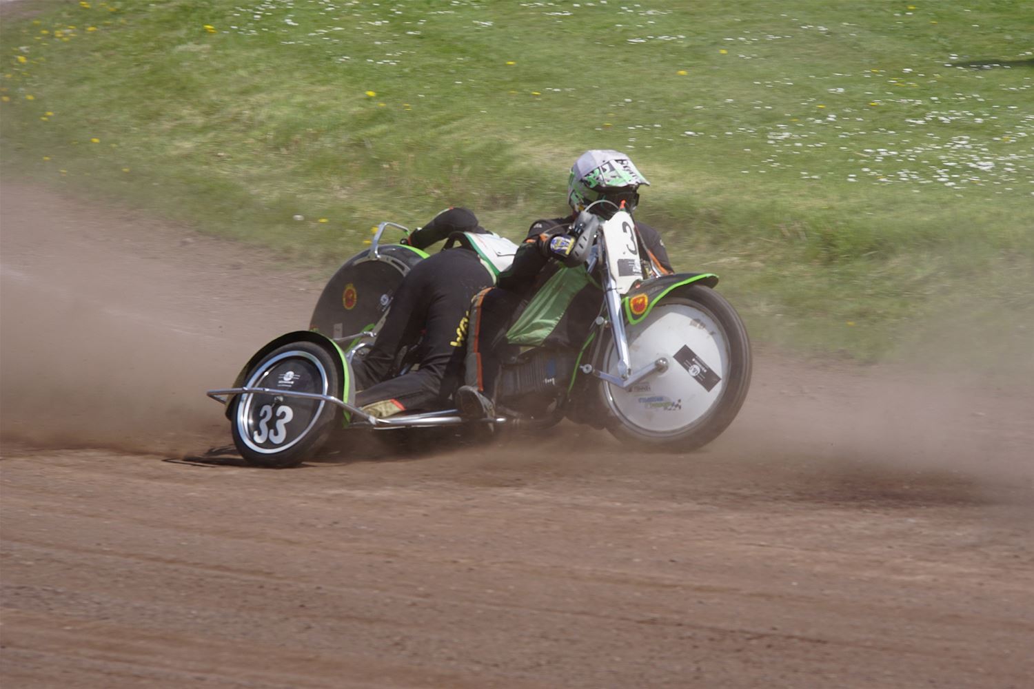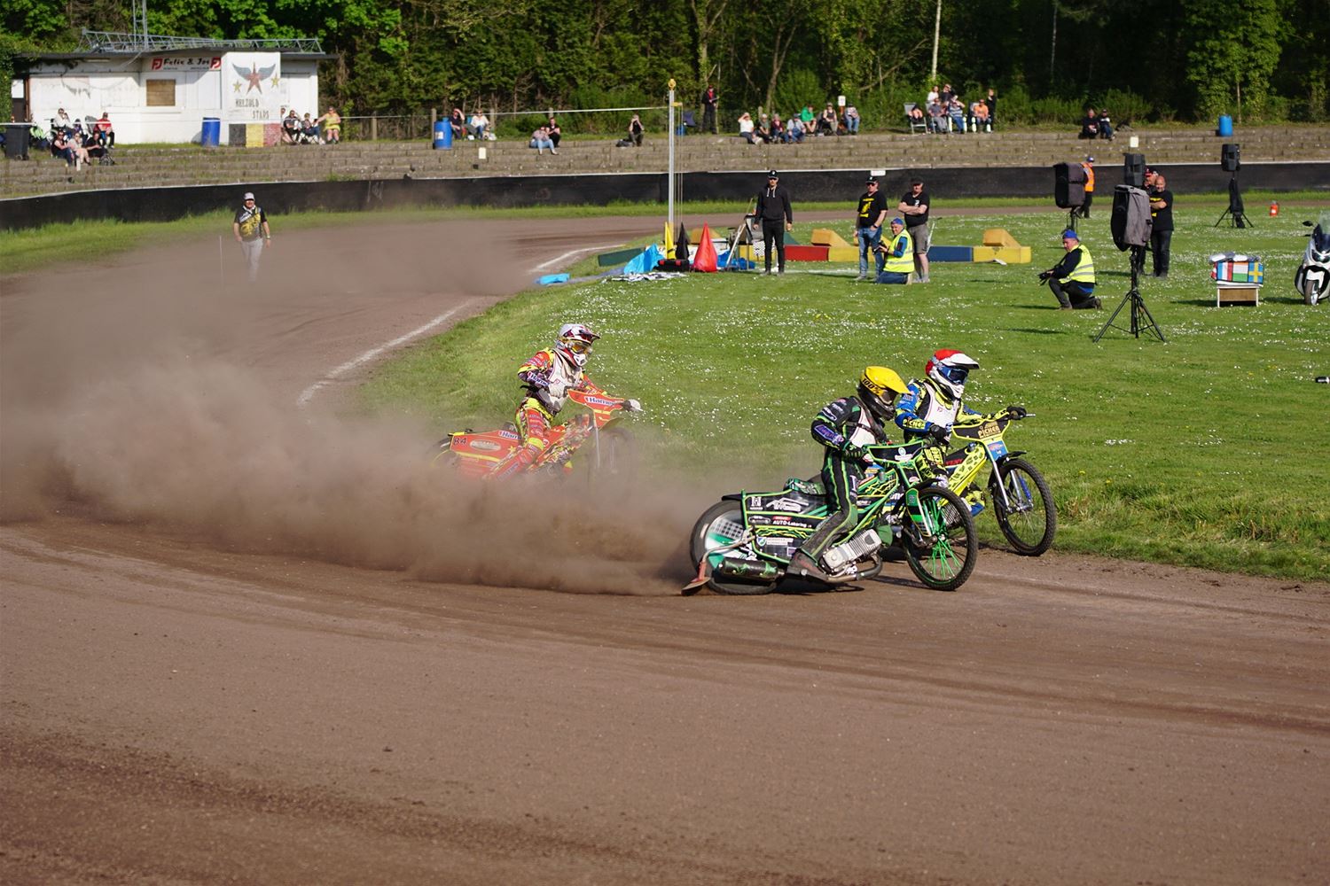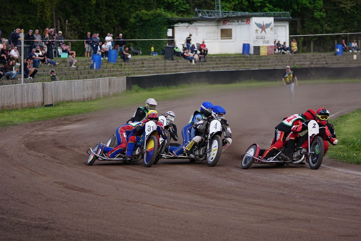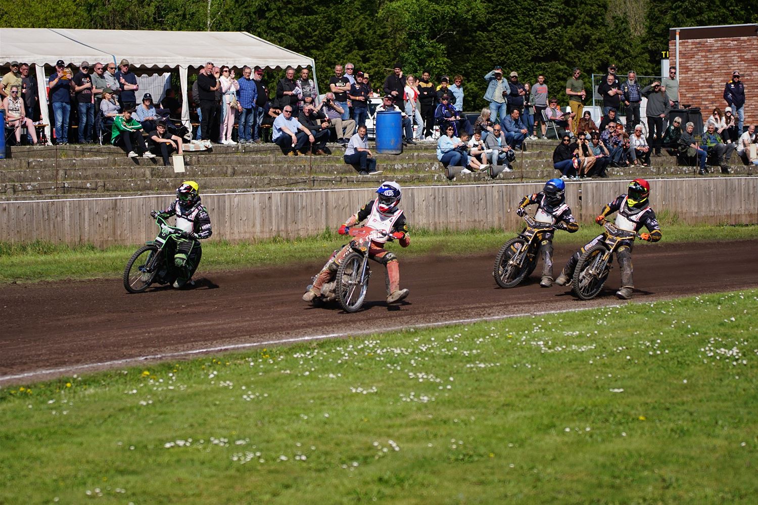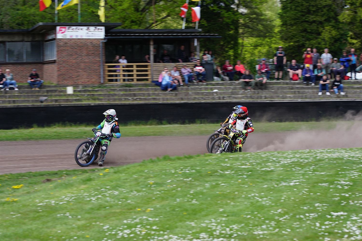 Eindelijk konden de speedwaymotoren weer ronken op Helzold. De zijspannen stonden vandaag centraal. Het werd vooral een Duitse aangelegenheid want na de verschillende manches ging de overwinning naar het duo Fabian Müller-Peter Maurer voor hun landgenoten Mike Kolb-Nadin Löffler en David-Kolb-Patrick Herbst. Bij de internationalen won de Oostenrijker Daniel Gappmaier, bij de nationalen de Nederlander Nynke Sijbesma en de 125 cc was een puur Nederlands onderonsje met als snelste Niek Meijerink. (foto's Stephan Volders)72866