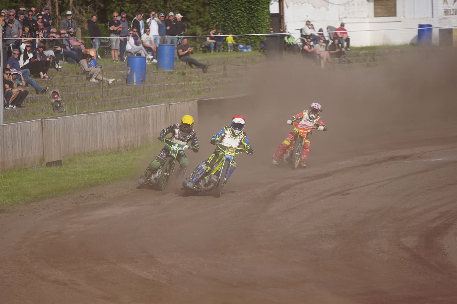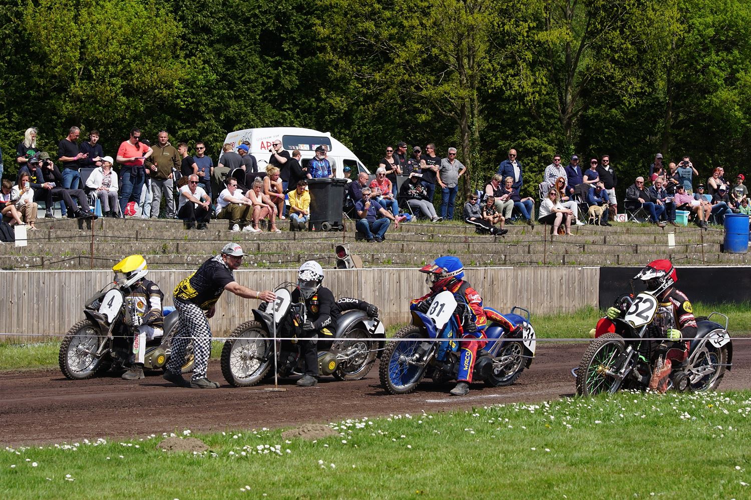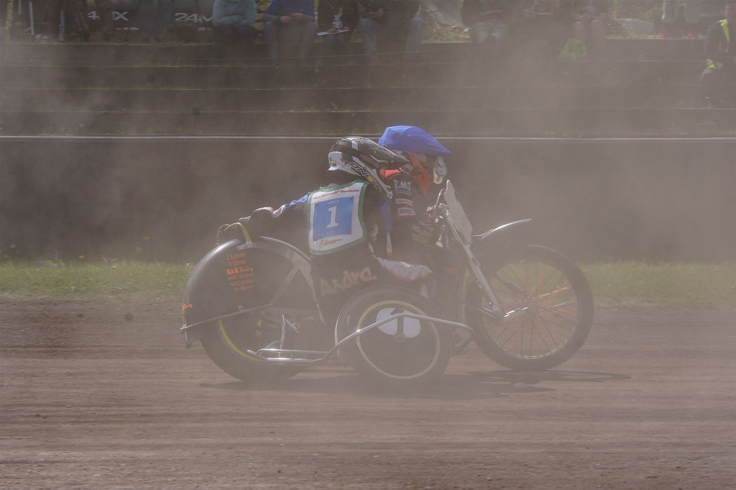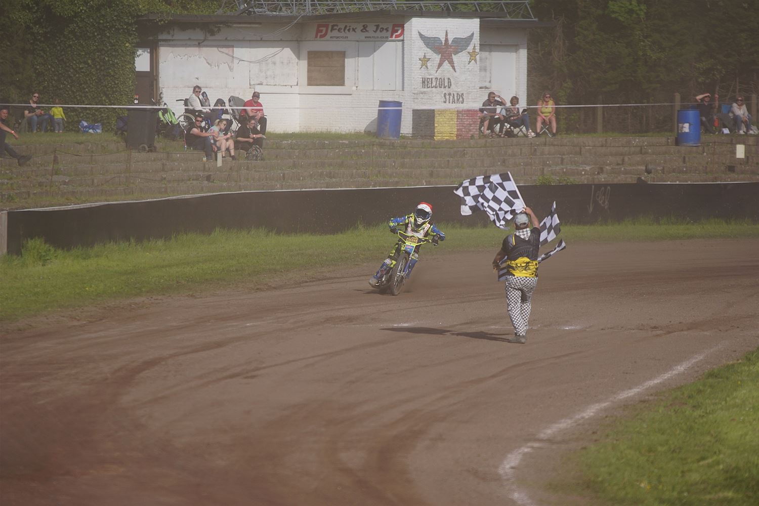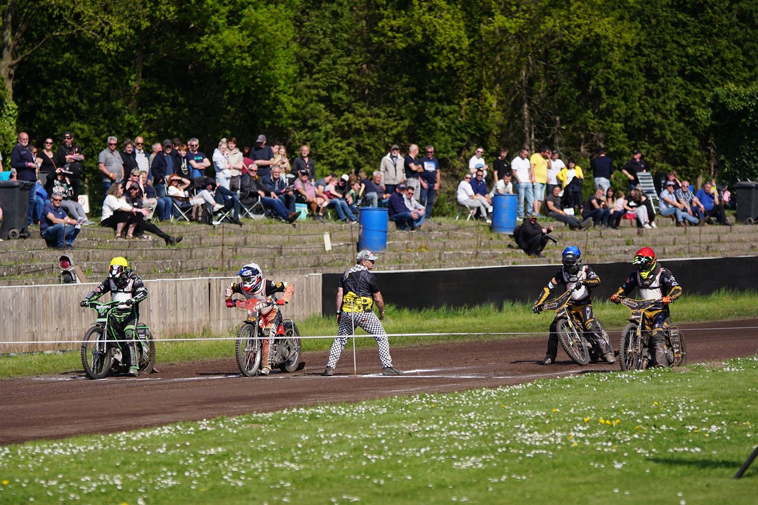 Eindelijk konden de speedwaymotoren weer ronken op Helzold. De zijspannen stonden vandaag centraal. Het werd vooral een Duitse aangelegenheid want na de verschillende manches ging de overwinning naar het duo Fabian Müller-Peter Maurer voor hun landgenoten Mike Kolb-Nadin Löffler en David-Kolb-Patrick Herbst. Bij de internationalen won de Oostenrijker Daniel Gappmaier, bij de nationalen de Nederlander Nynke Sijbesma en de 125 cc was een puur Nederlands onderonsje met als snelste Niek Meijerink. (foto's Stephan Volders)72866