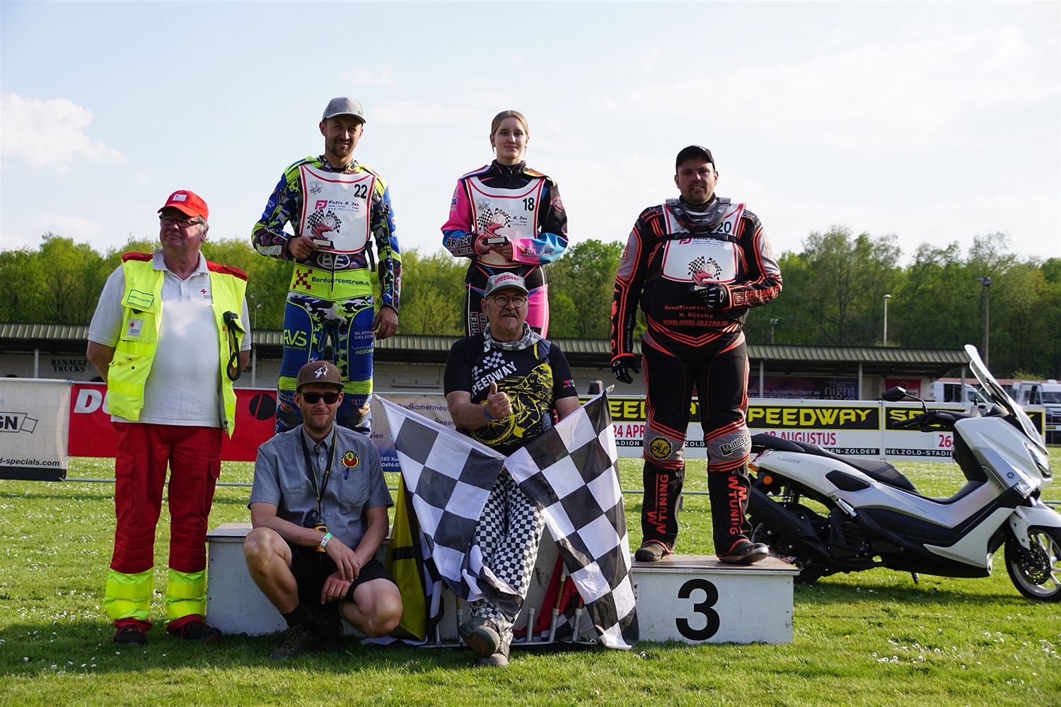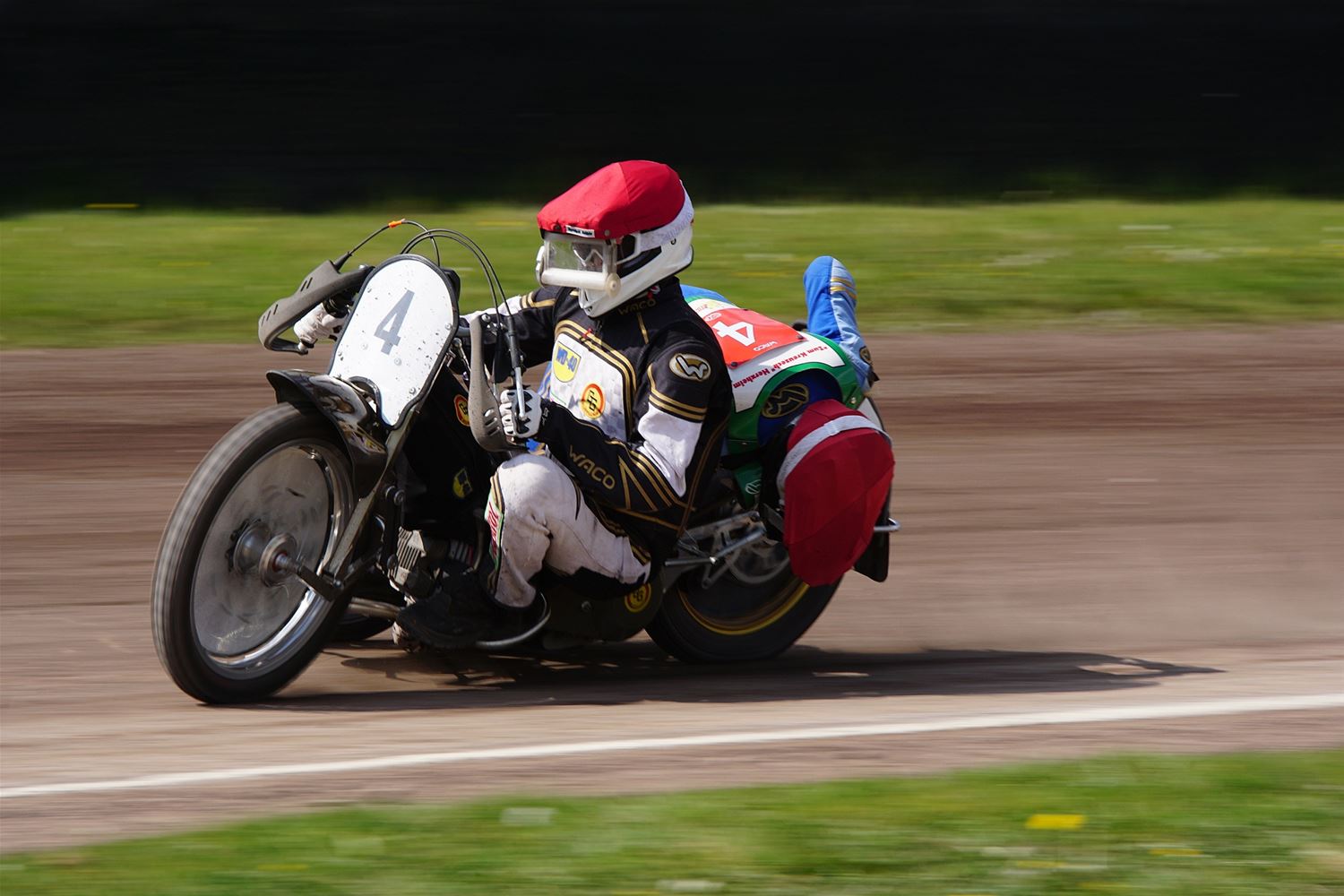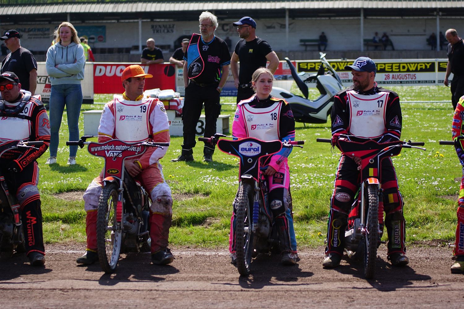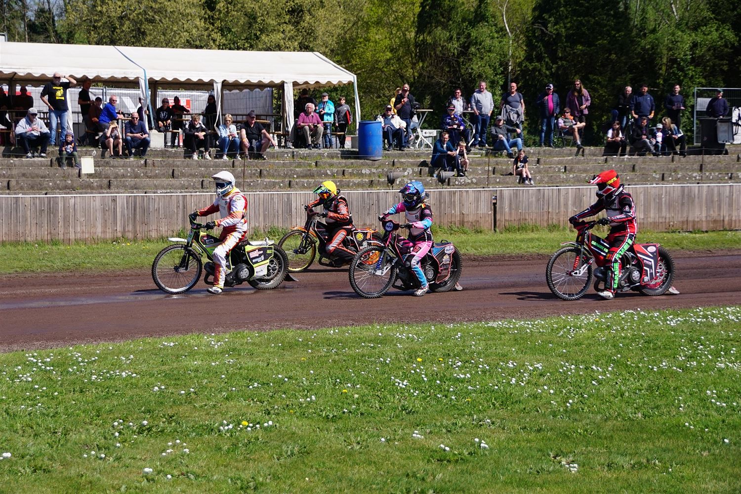 Eindelijk konden de speedwaymotoren weer ronken op Helzold. De zijspannen stonden vandaag centraal. Het werd vooral een Duitse aangelegenheid want na de verschillende manches ging de overwinning naar het duo Fabian Müller-Peter Maurer voor hun landgenoten Mike Kolb-Nadin Löffler en David-Kolb-Patrick Herbst. Bij de internationalen won de Oostenrijker Daniel Gappmaier, bij de nationalen de Nederlander Nynke Sijbesma en de 125 cc was een puur Nederlands onderonsje met als snelste Niek Meijerink. (foto's Stephan Volders)72866