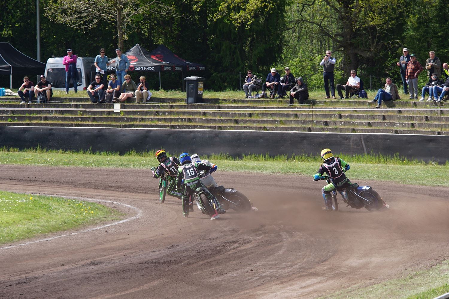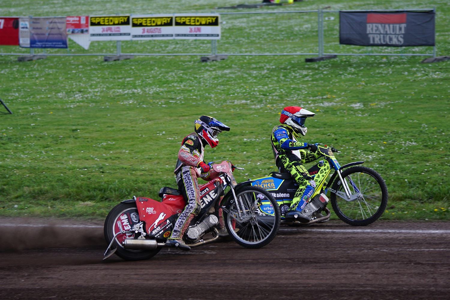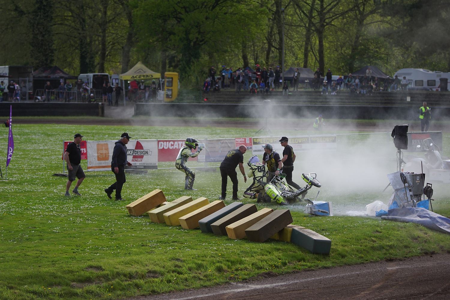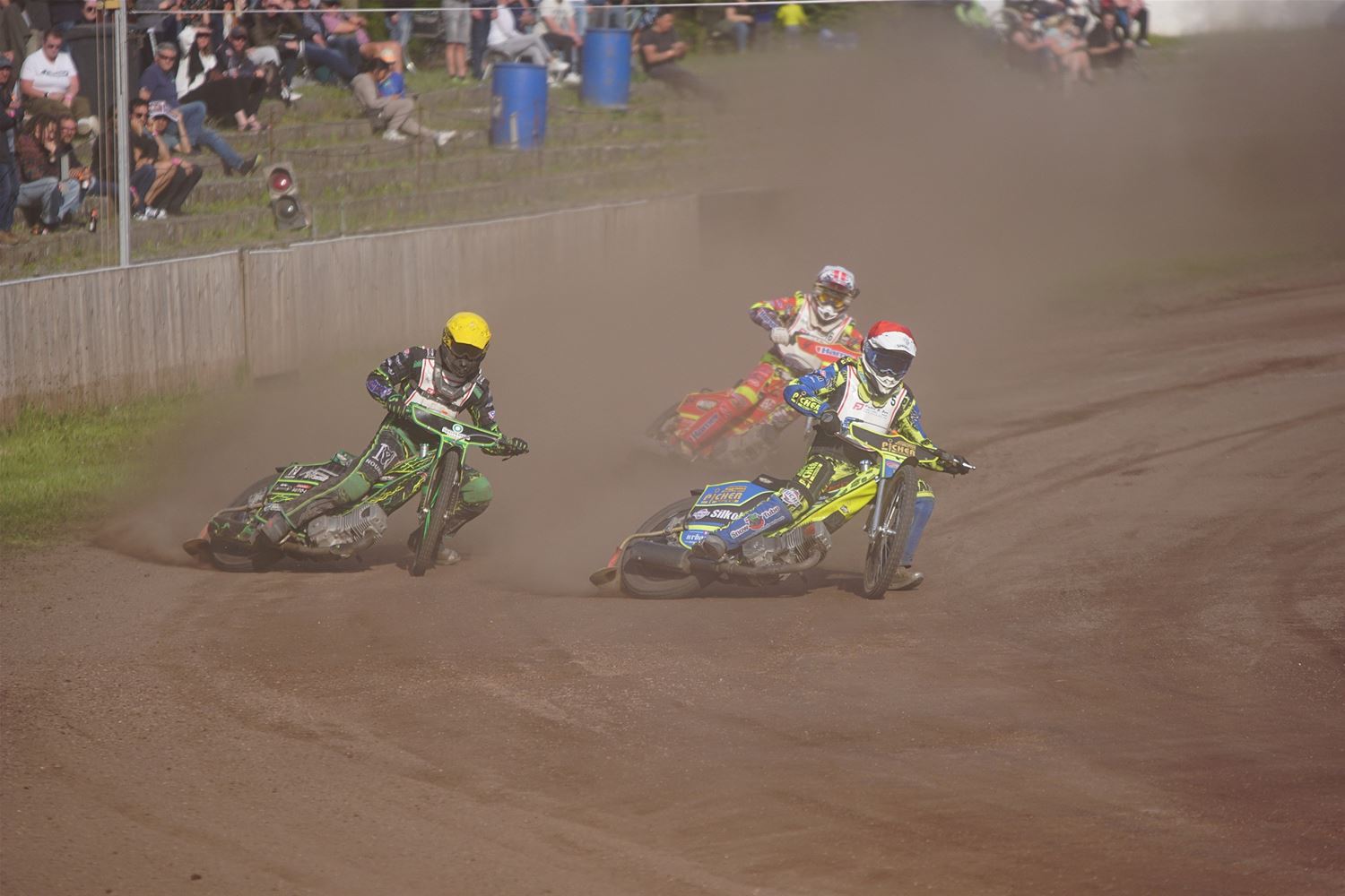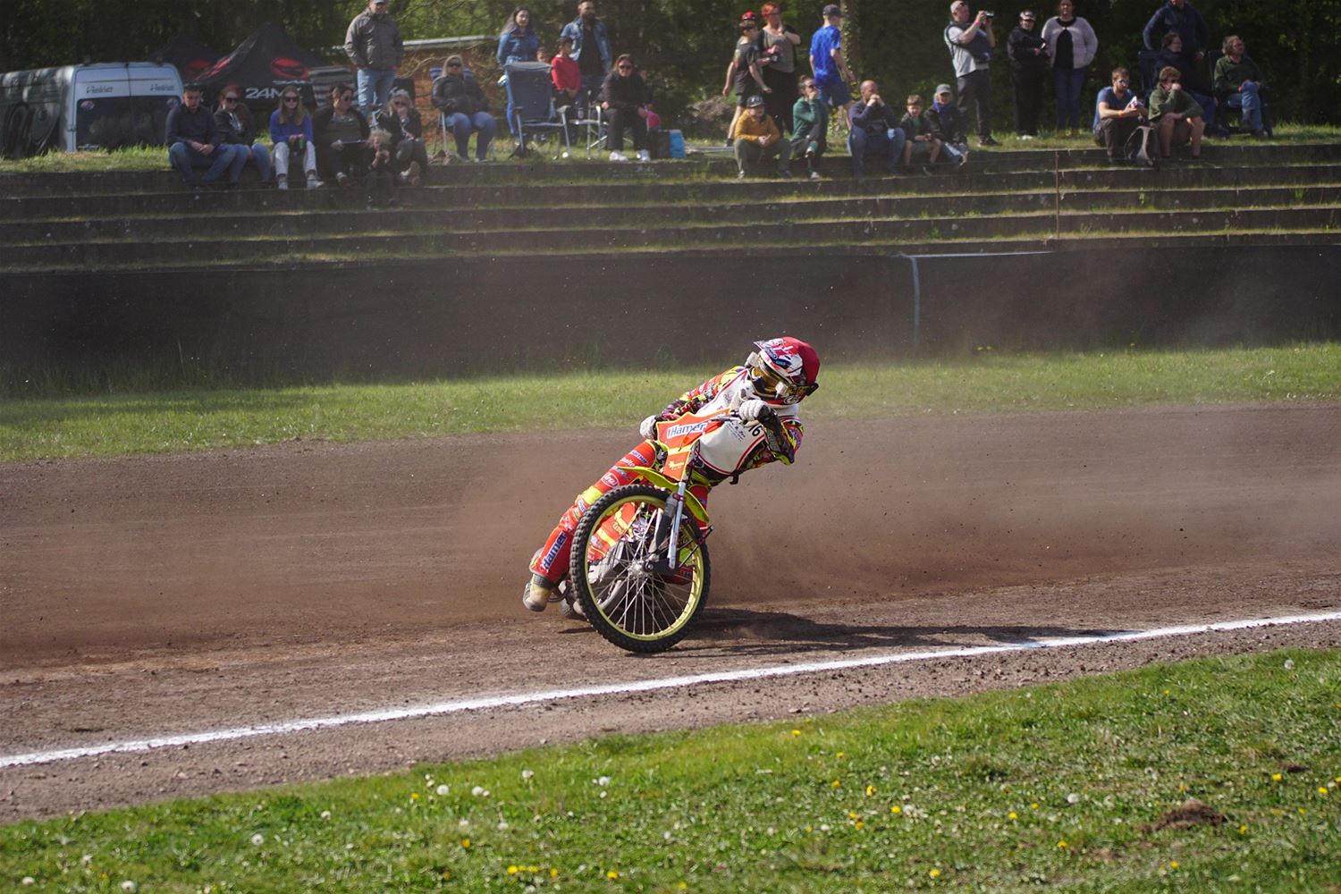 Eindelijk konden de speedwaymotoren weer ronken op Helzold. De zijspannen stonden vandaag centraal. Het werd vooral een Duitse aangelegenheid want na de verschillende manches ging de overwinning naar het duo Fabian Müller-Peter Maurer voor hun landgenoten Mike Kolb-Nadin Löffler en David-Kolb-Patrick Herbst. Bij de internationalen won de Oostenrijker Daniel Gappmaier, bij de nationalen de Nederlander Nynke Sijbesma en de 125 cc was een puur Nederlands onderonsje met als snelste Niek Meijerink. (foto's Stephan Volders)72866