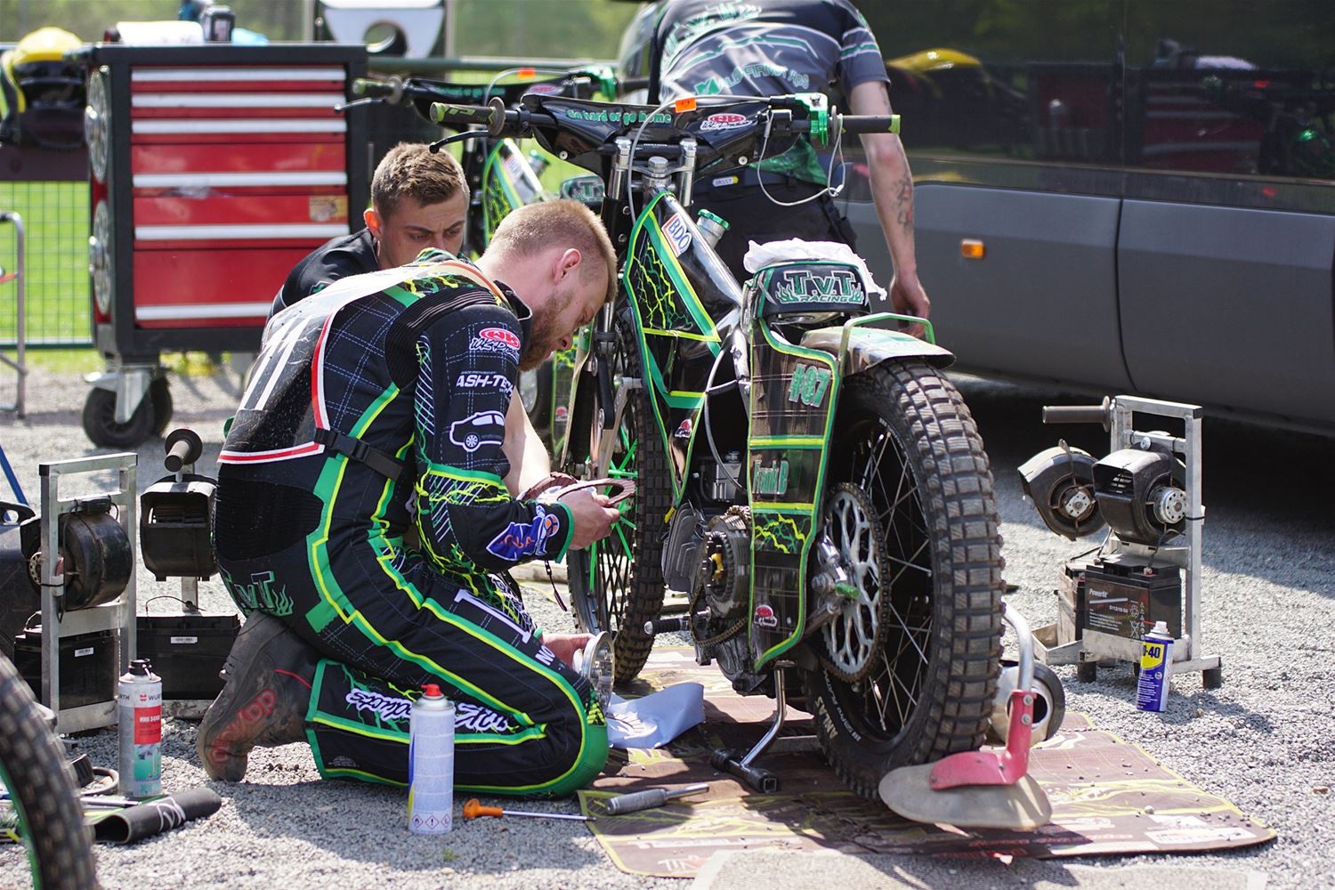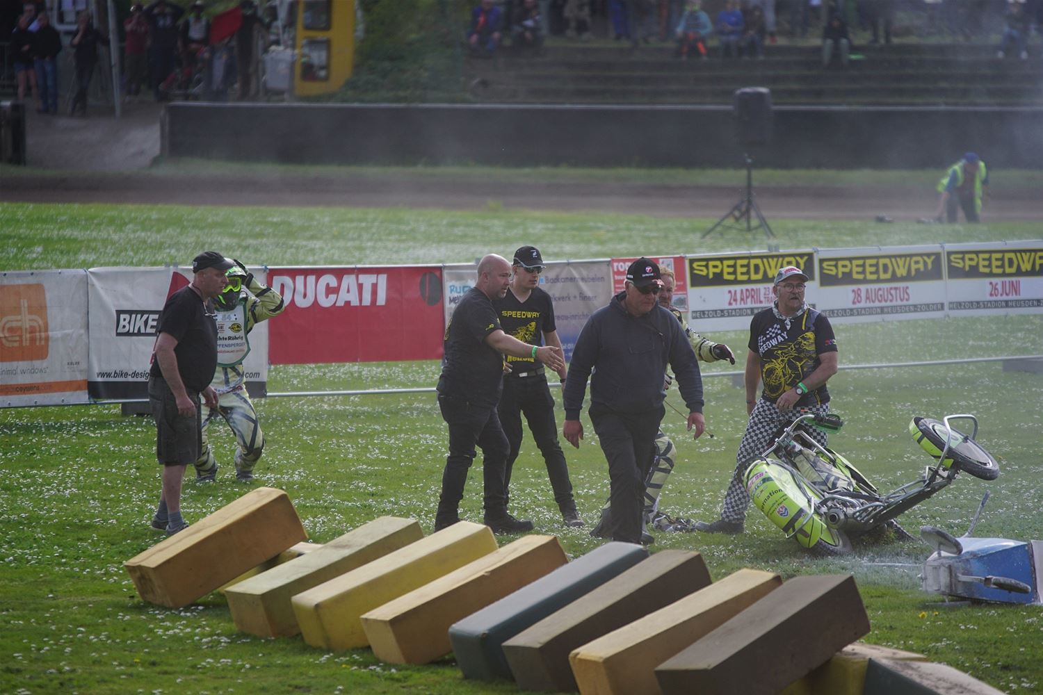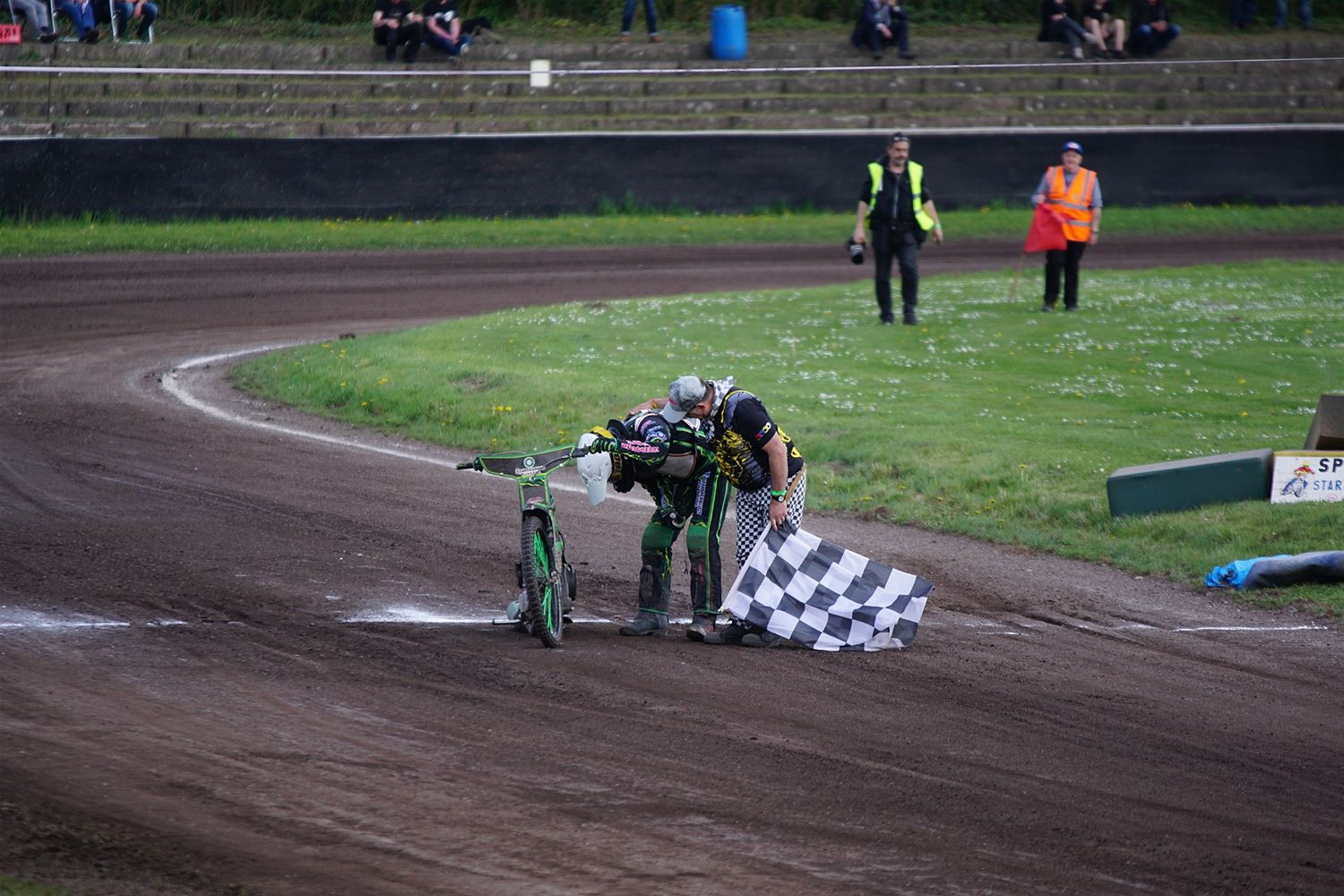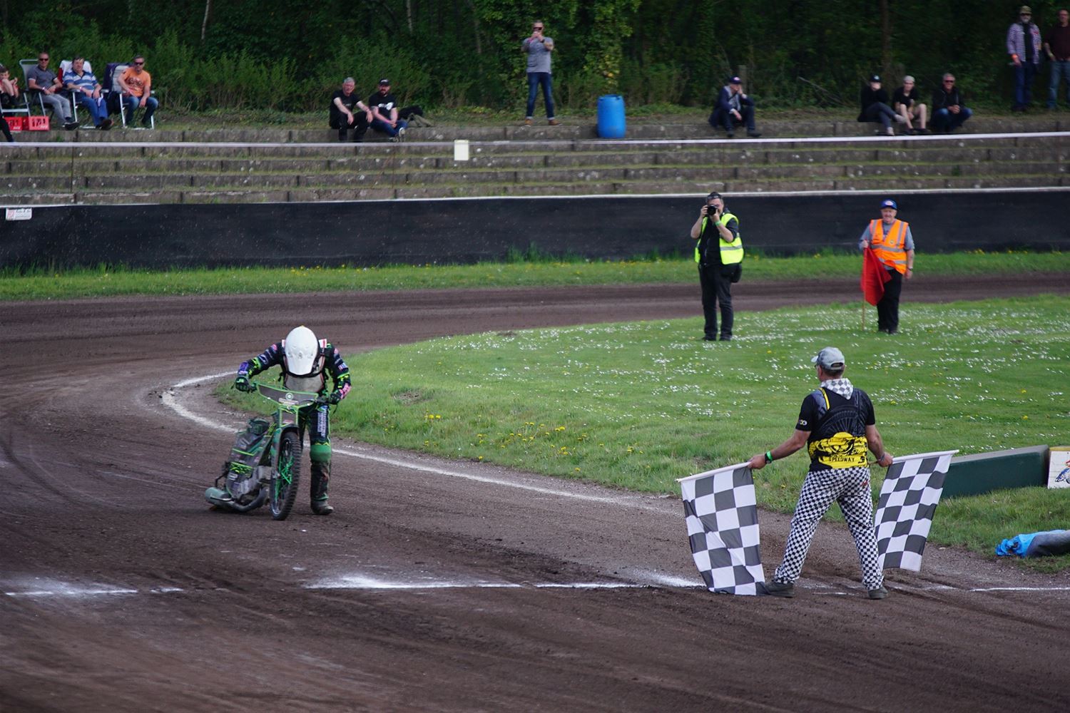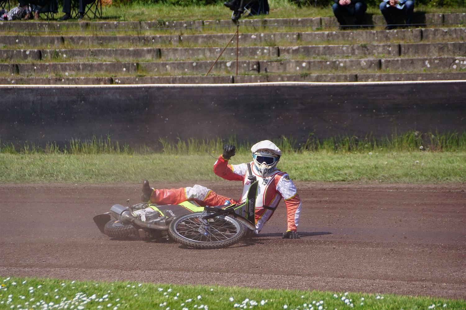 Eindelijk konden de speedwaymotoren weer ronken op Helzold. De zijspannen stonden vandaag centraal. Het werd vooral een Duitse aangelegenheid want na de verschillende manches ging de overwinning naar het duo Fabian Müller-Peter Maurer voor hun landgenoten Mike Kolb-Nadin Löffler en David-Kolb-Patrick Herbst. Bij de internationalen won de Oostenrijker Daniel Gappmaier, bij de nationalen de Nederlander Nynke Sijbesma en de 125 cc was een puur Nederlands onderonsje met als snelste Niek Meijerink. (foto's Stephan Volders)72866