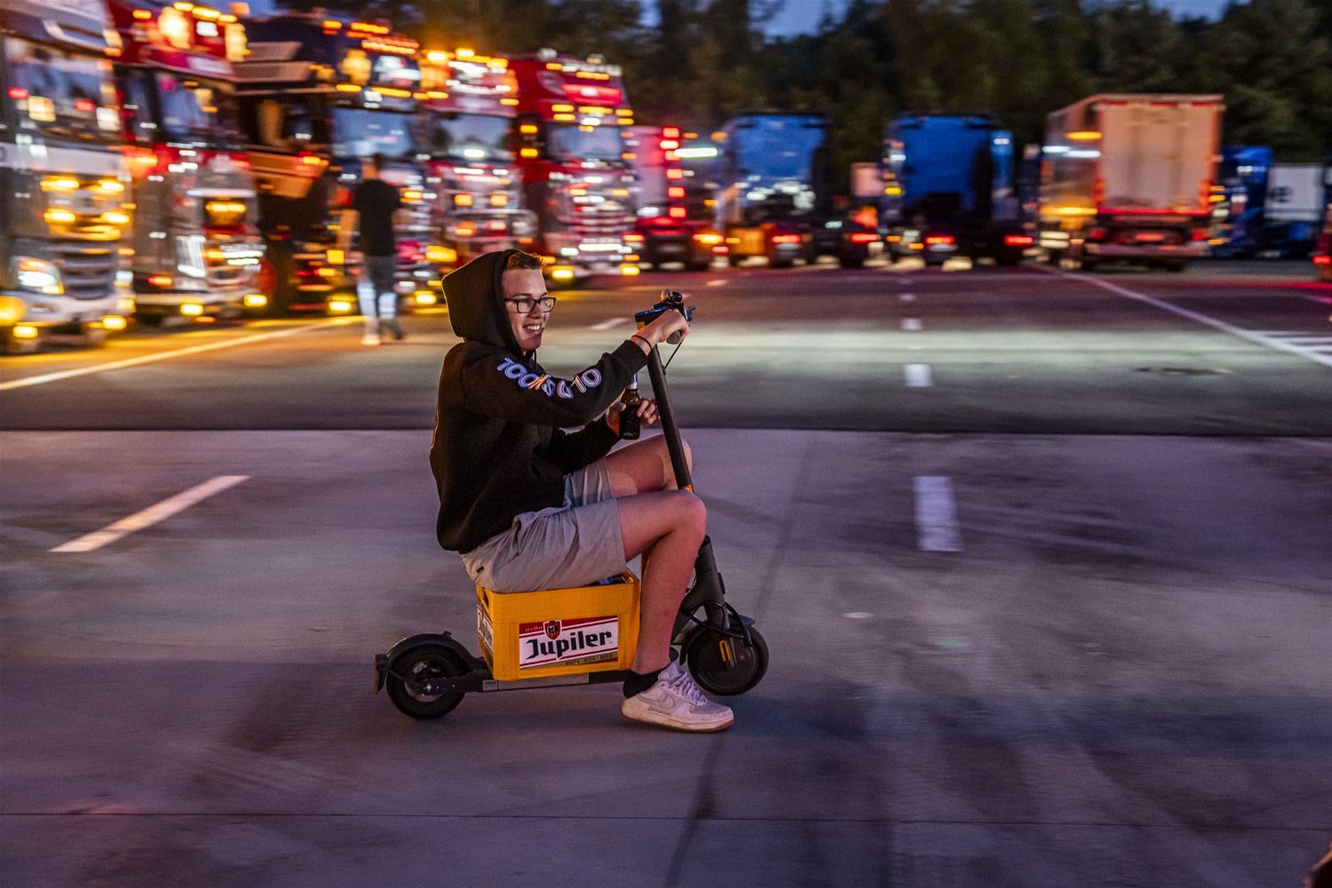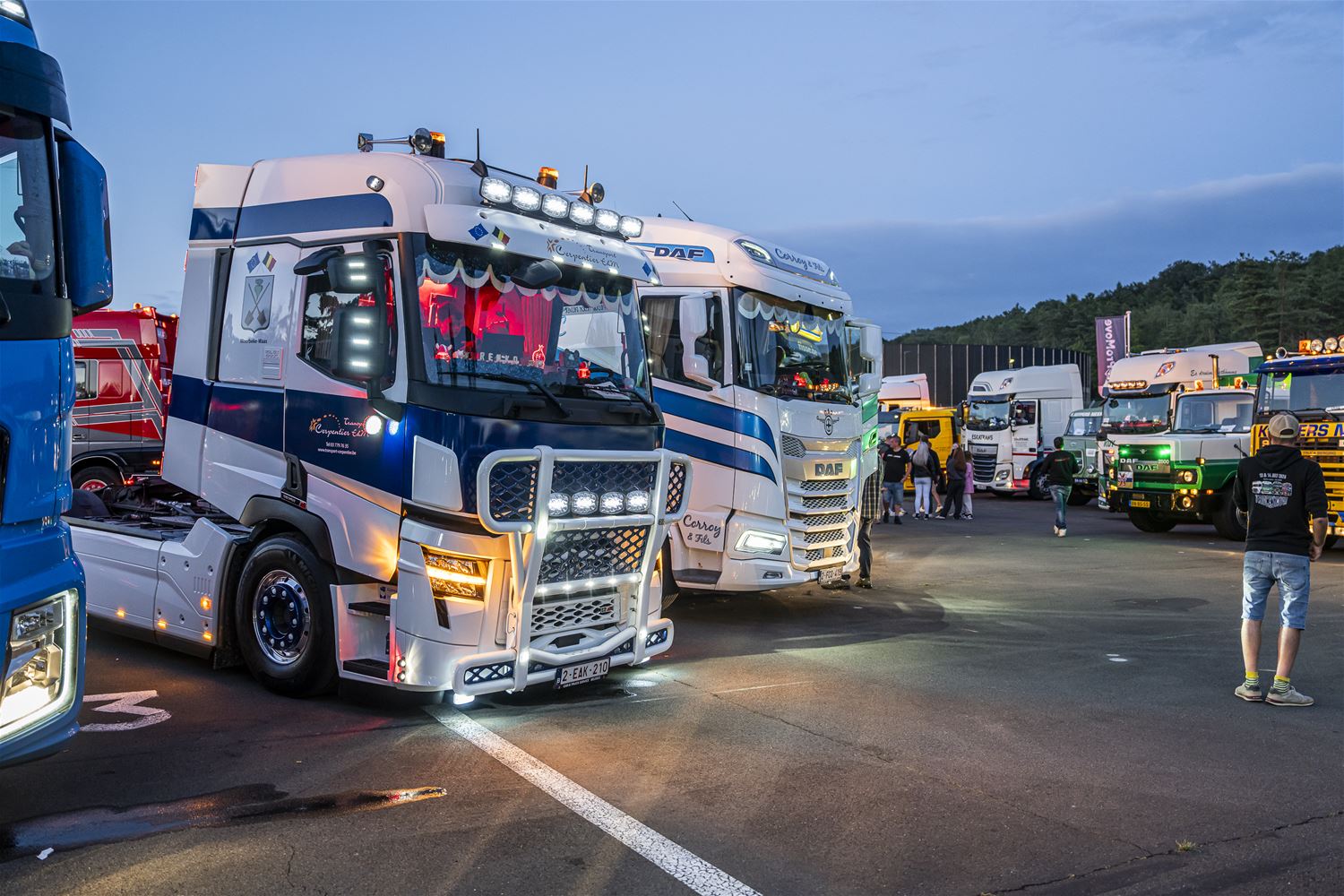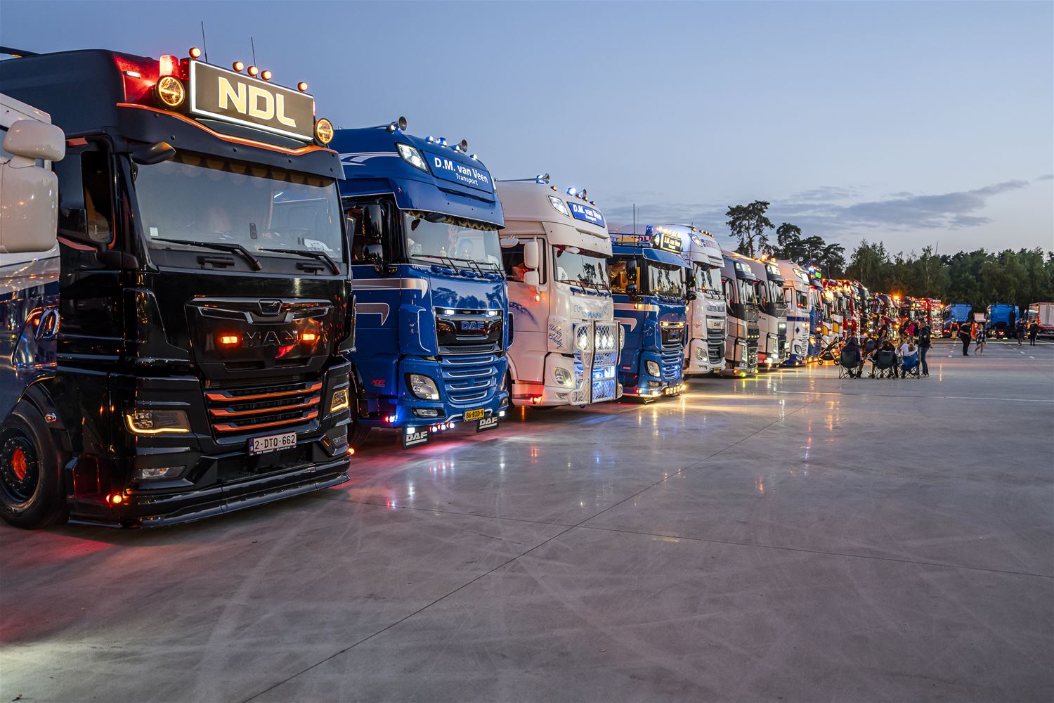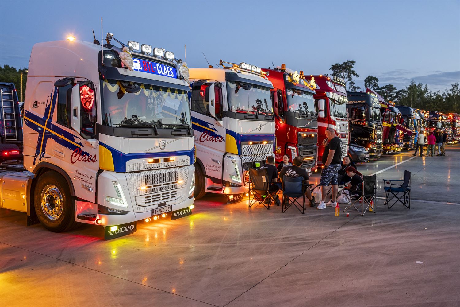 Tijdens de Truck Grand Prix is de zaterdagavond altijd een bijzonder moment. Dan steken de trucks in de paddock allemaal hun lichten aan en laten hun toeters horen. Dit jaar was het wel iets moeilijker, dan andere jaren. Dan had het event immers in september plaats, een periode waarin het veel vroeger donker is, terwijl we nu net in de langste dagen van het jaar zitten. (foto's Dirk Dekens)81280