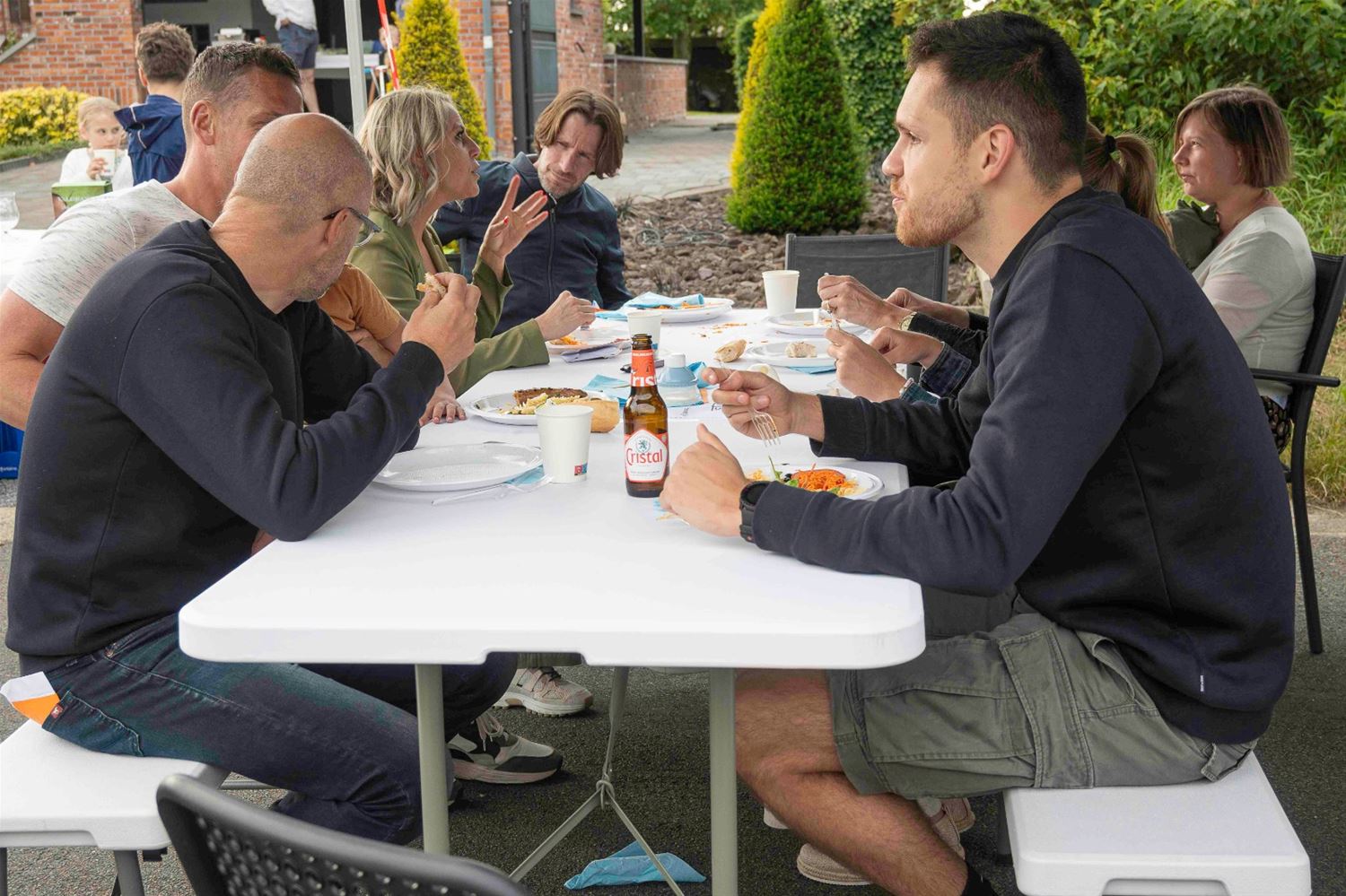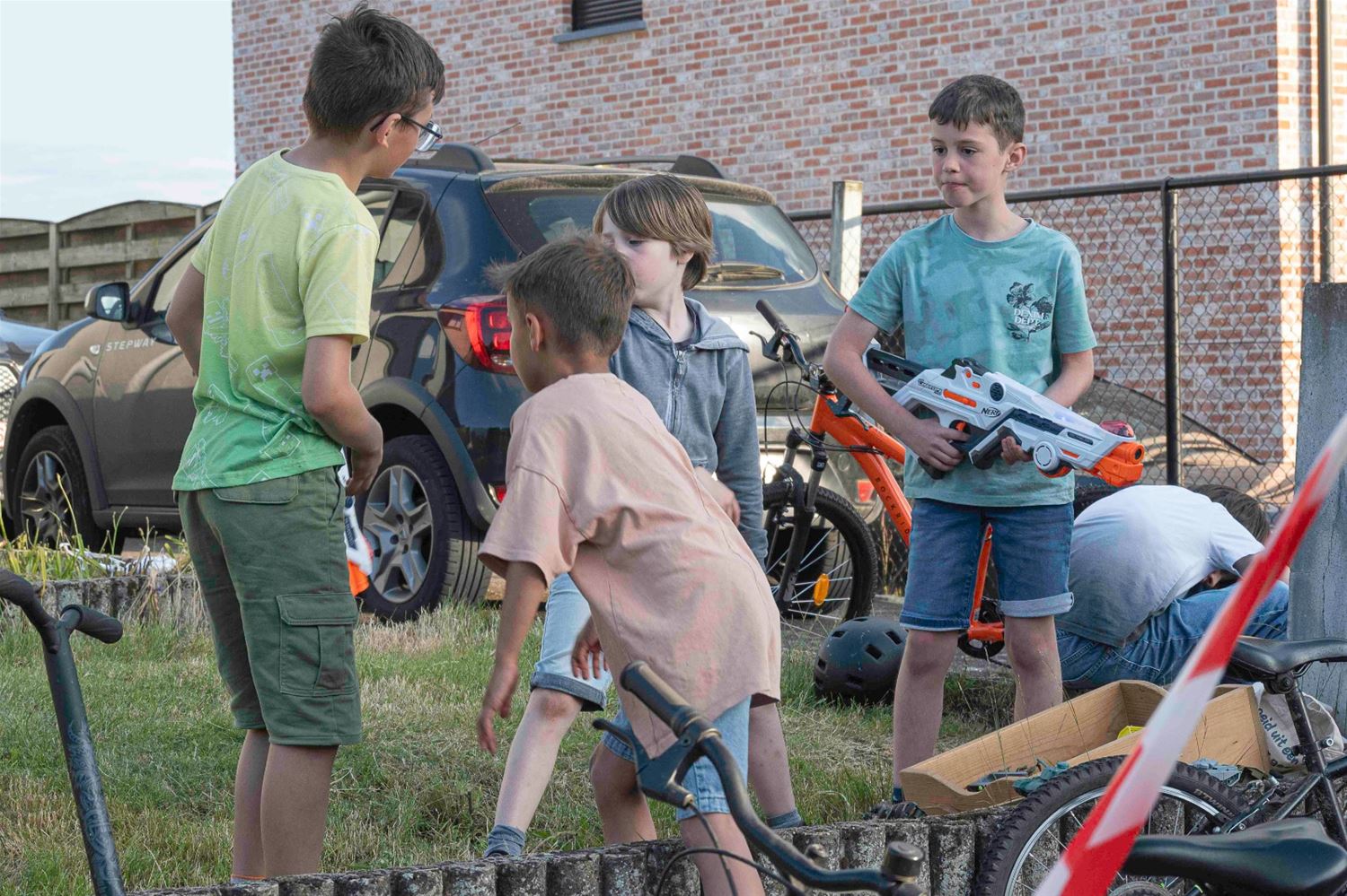 De buurtbewoners van Halhei hielden gisteren hun jaarlijkse straatfeest. Het weer hielp een handje om alle voorbereidende inspanningen te belonen met een gezellig gebeuren. En ook de kinderen amuseerden zich, wat wil je op een autovrije straat. (foto's Inge Vreys)81157