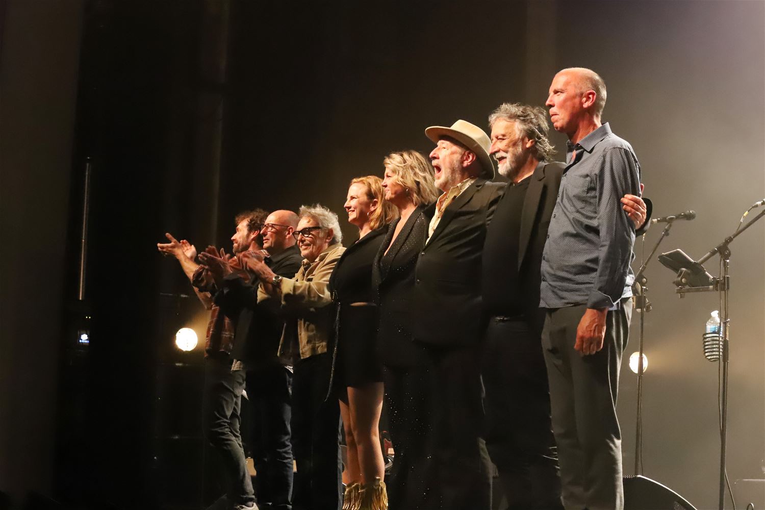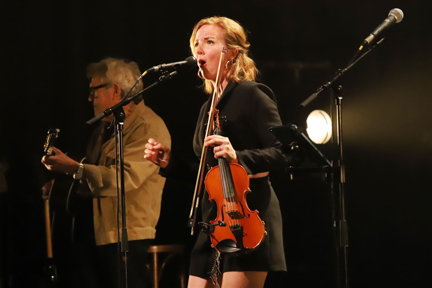 Als hij in 2010 de lichtjes van de Schelde niet definitief hier beneden had gelaten, zou Bobbejaan Schoepen dit jaar 100 zijn geworden. Een schare muzikanten – uit verschillende genres – toert daarom met een ode aan de cowboy van de Kempen. Zaterdagavond brachten ze zijn mooiste nummers voor een volle Muzeschouwburg. Otto-Jan Ham, Barbara Dex, Nele Paelinck en Jan De Smet werden uitstekend begeleid door De Goede Moordenaars. (foto’s Herman Eerdekens)85132