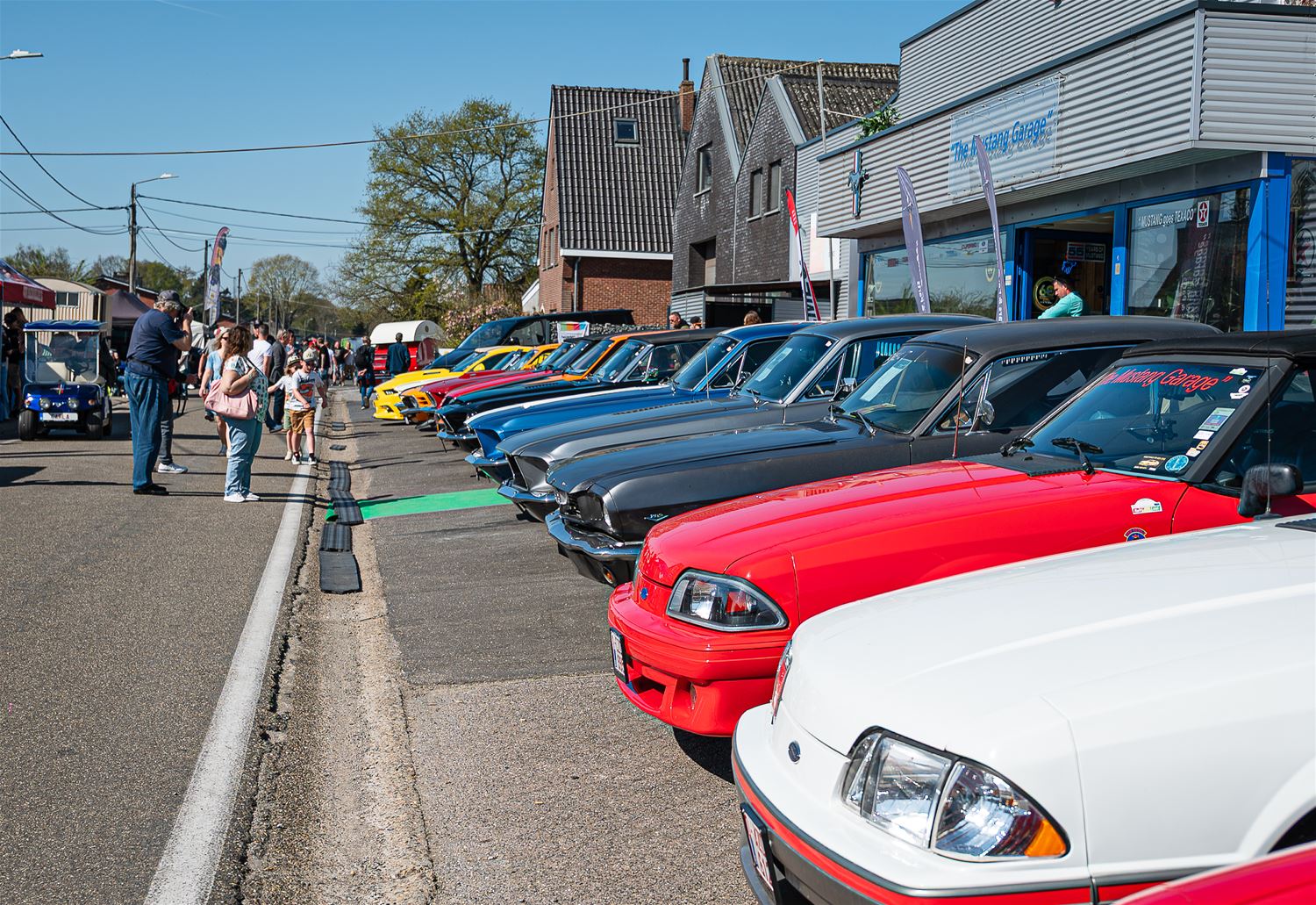 Een stralende lentedag, met zelfs recordtemperaturen voor de 12de april en dus konden Adelbert Engler en zijn team zich geen beter weer gedroomd hebben op de eerste dag van Mustang Fever 2025. Er zakte dan ook veel volk af naar de Schaapsweg en omliggende straten, om de Mustangs van alle jaartallen en in alle uitvoeringen te bewonderen. Maar ook om te genieten van de live-muziek, de terrassen en de minatuurcollectie die in The Mustang Garage staat tentoongesteld. Morgen is er nog zo’n dag vol Amerikaanse paardenkracht. (foto’s Roman Martyka)85006