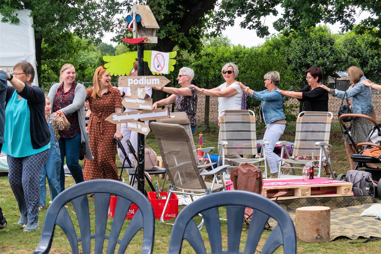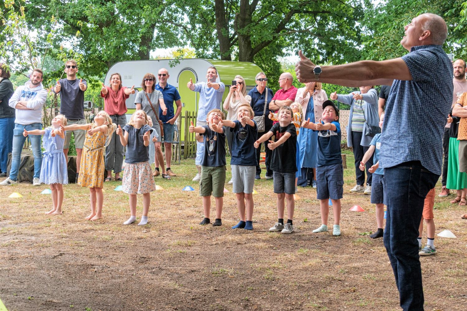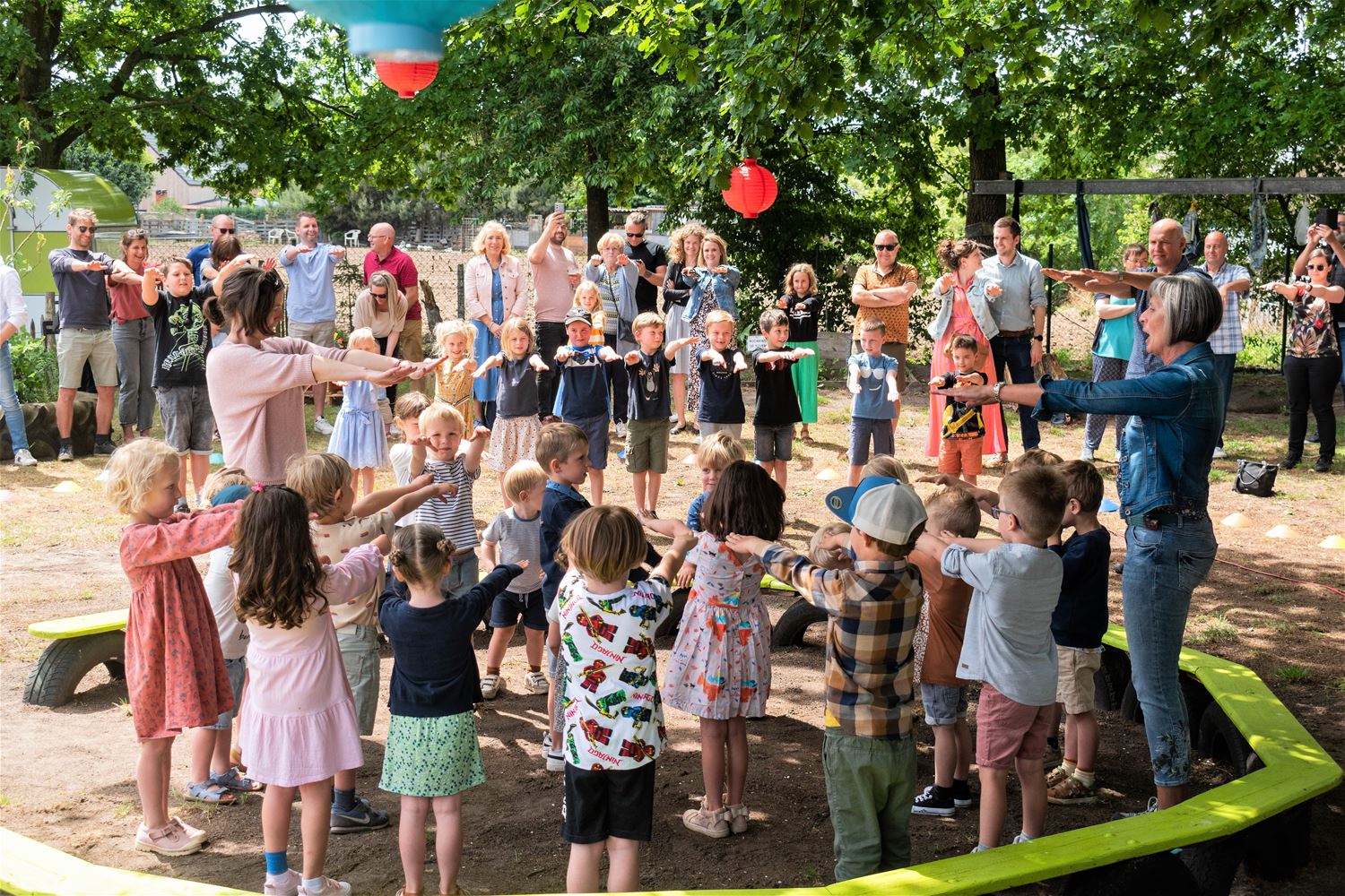 Wat doet het kleinste schooltje op een zomerse weekenddag? Een tuinfeest organiseren bijvoorbeeld. Dat was alleszins wat het wijkschooltje van De Toverfluit in Ubbersel vandaag deed. Ieder bracht zijn eigen stoel mee, er stonden palletten als tafels en zo werd een soort picknick opgezet. En toen juffrouw Esmeralda met de kleuters de polonaise inzette ... sloot iedereen gewoon aan.73137
