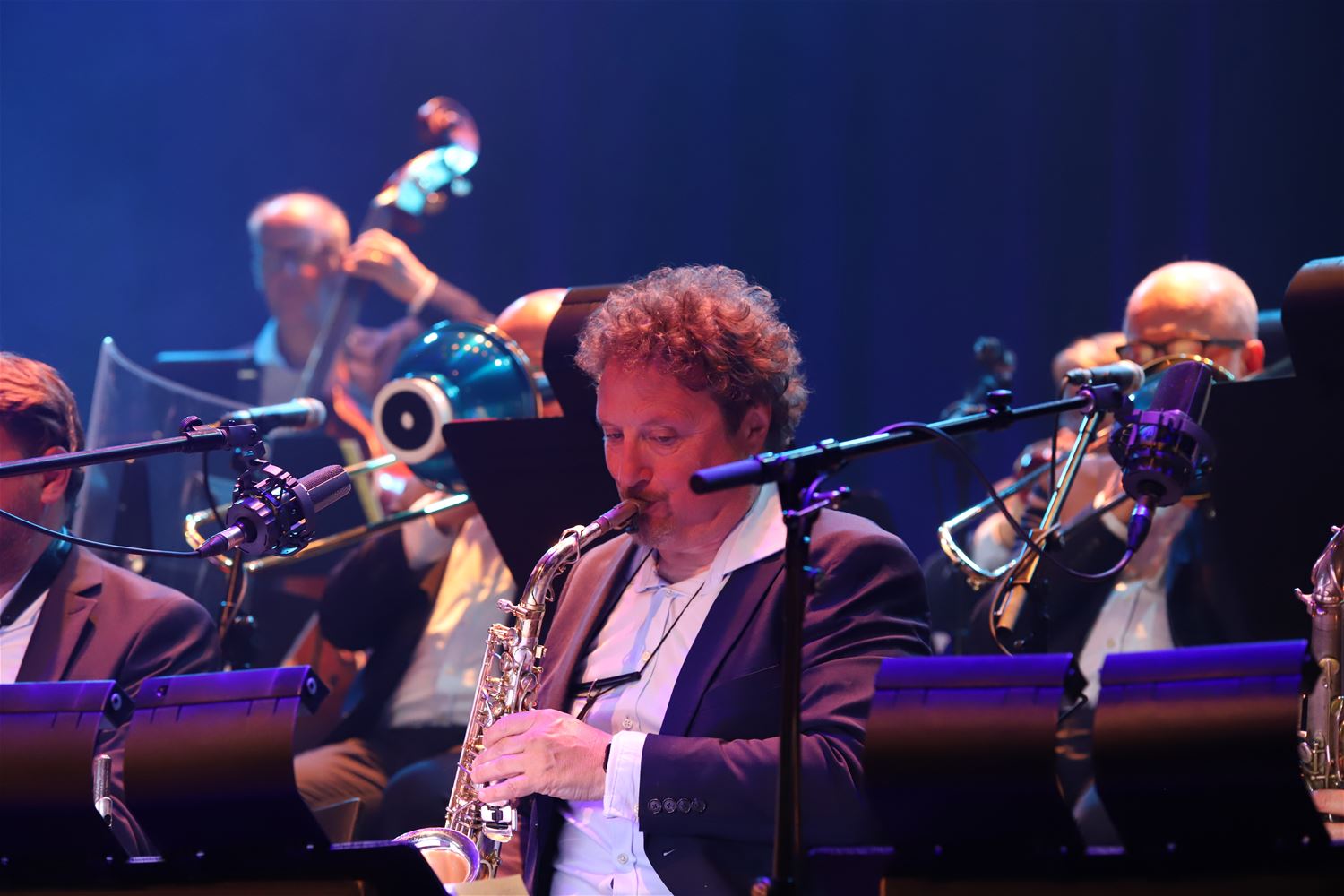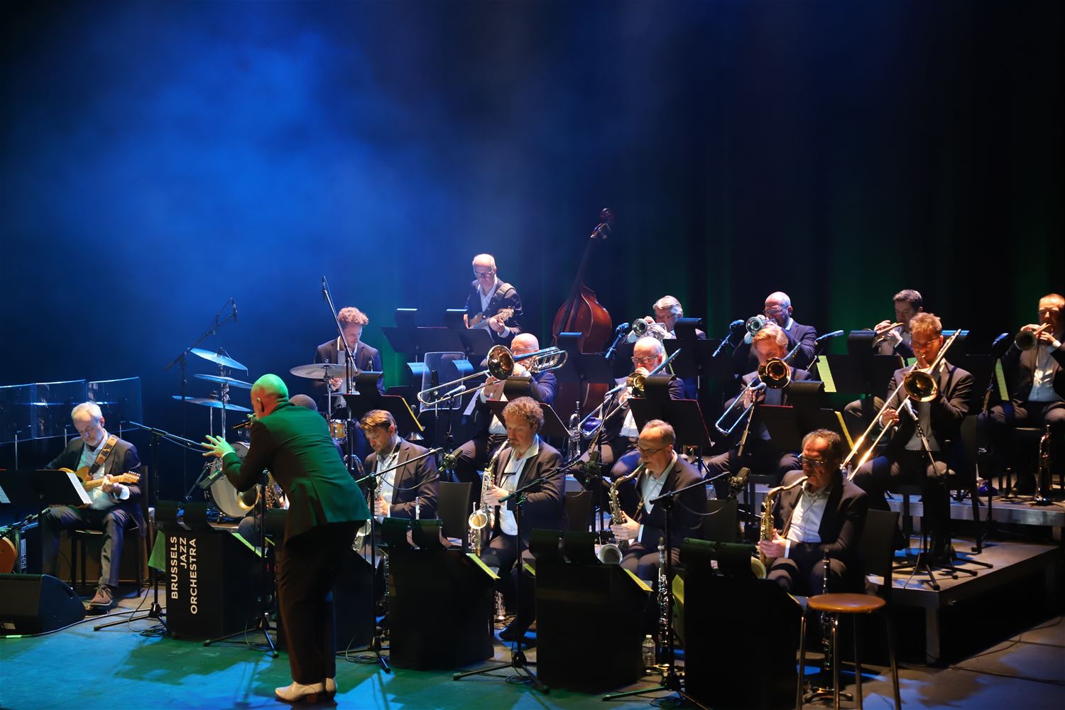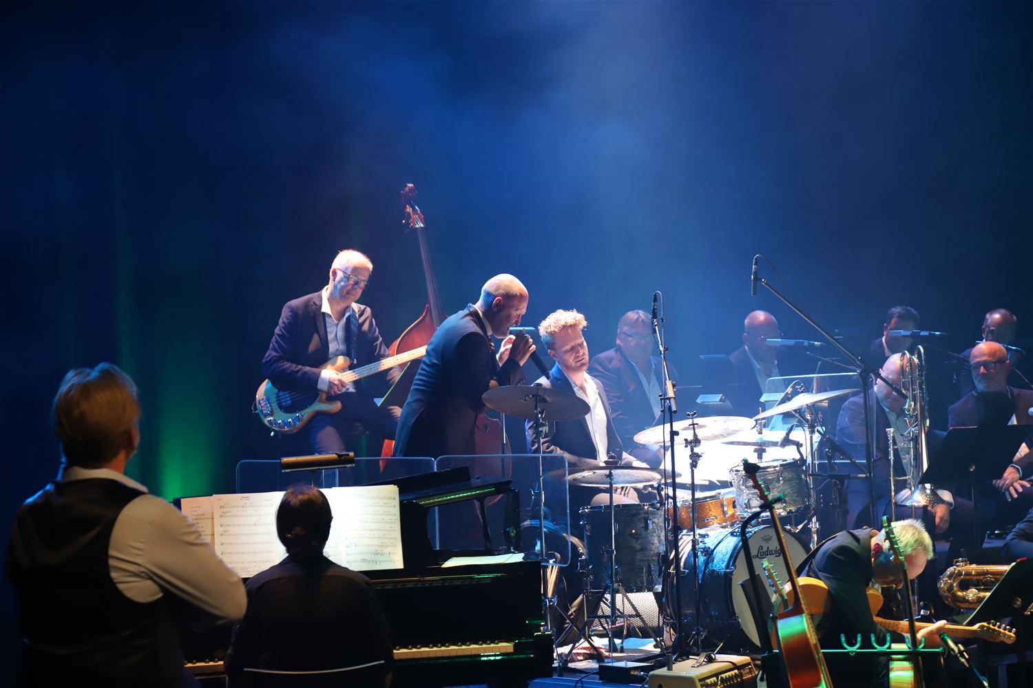 Een zeer bijzondere combinatie zaterdagavond in Muze. Daar stonden Raf en Mich Walschaerts samen met het Brussels Jazz Orchestra op het podium. De songs van Komil Foo krijgen daarbij een heel andere aankleding, de verhalen blijven natuurlijk wat ze zijn, zoals ook Kommil Foo altijd zichzelf blijft. (foto's Herman Eerdekens)