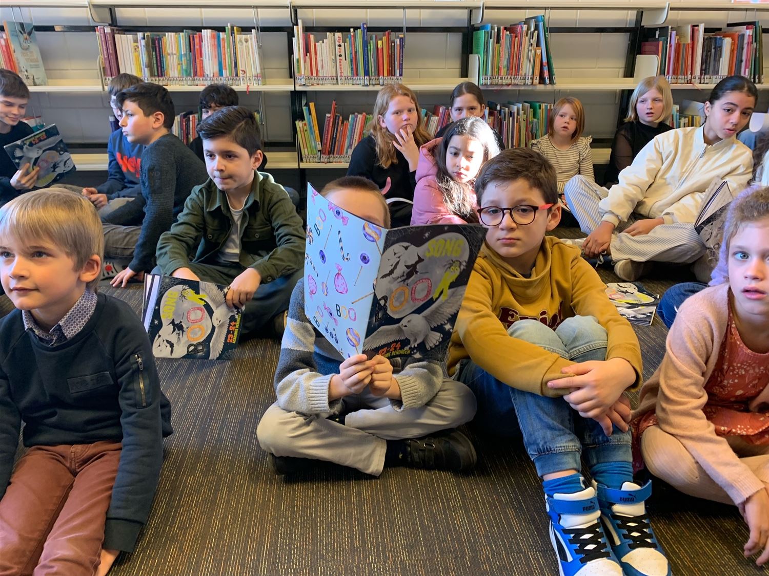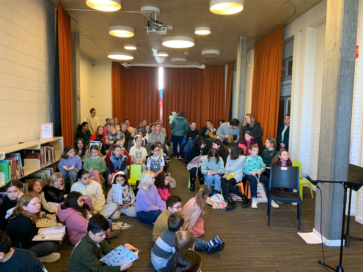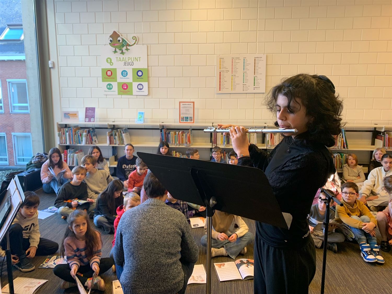 Behoorlijk wat belangstelling in de bib vanmorgen waar de muzieklab- en woordlabklassen van de academie een collage van liedjes en gedichten over 'Thuis' brachten, het centrale thema van de Poëzieweek. Er hing dan ook een leuke sfeer. En in absolute primeur brachten ze een voorproefje van hun musical Leyn en de mysterieuze mijn, een productie waaraan ze nog hard werken. (video en foto's Julien Maebe)79906