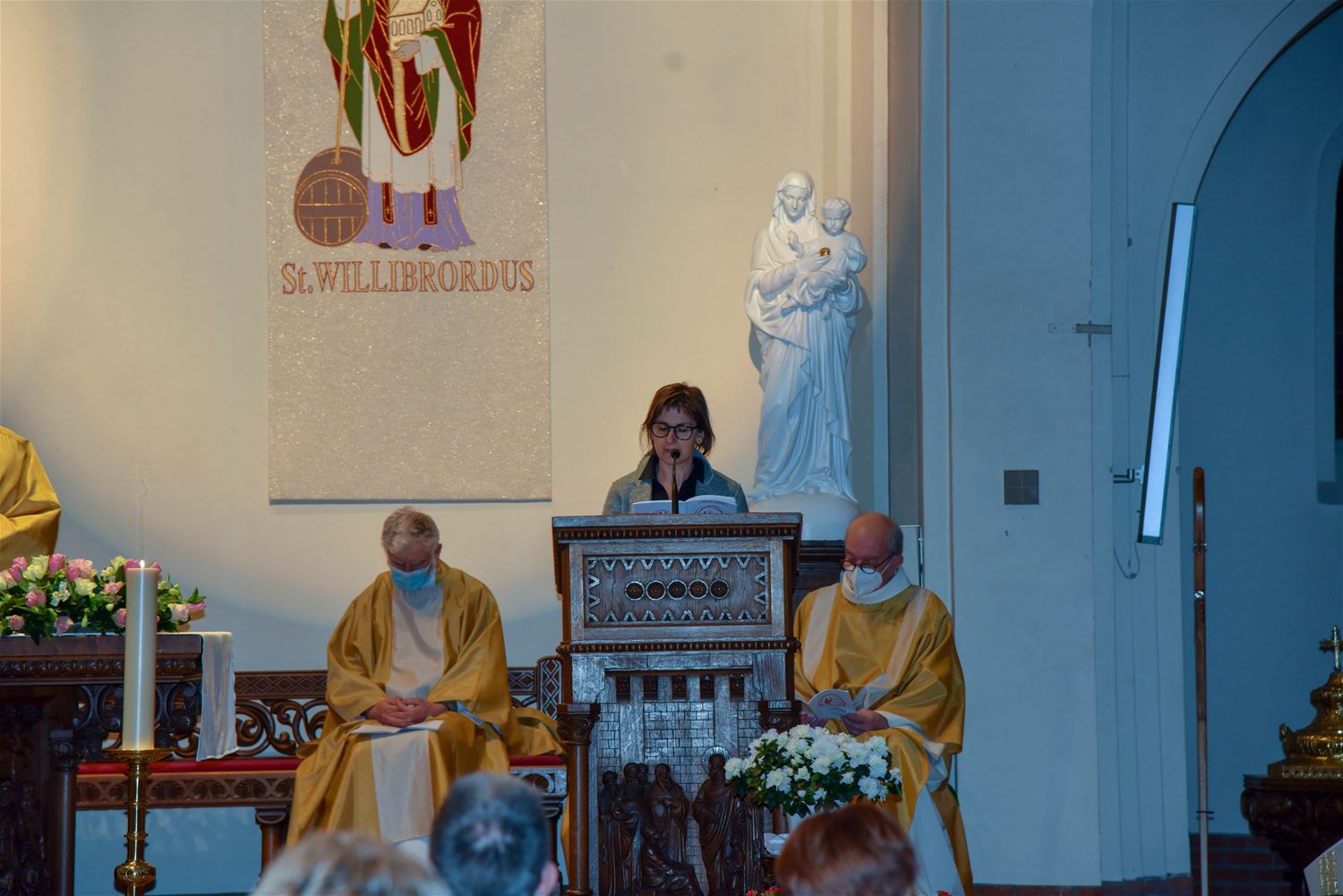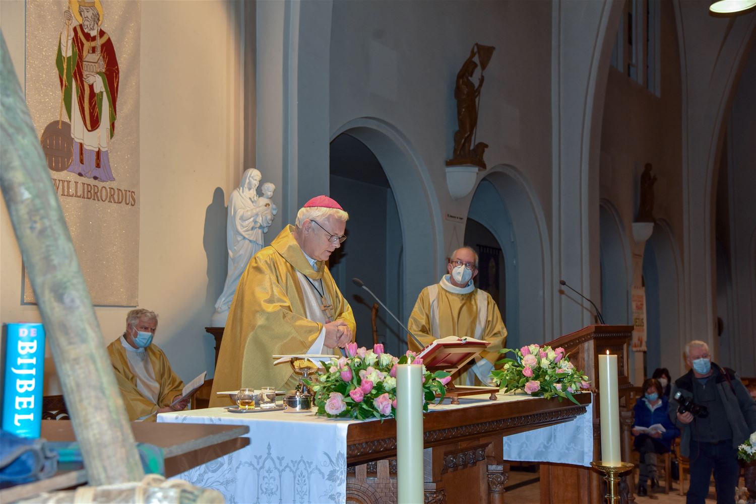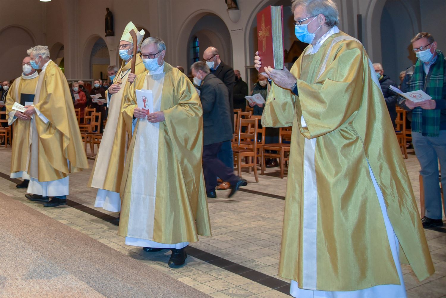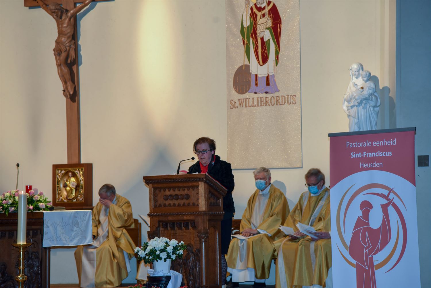 In de Sint-Willibrorduskerk had vanavond een bijzondere eucharistieviering plaats. Daarin werd de eenheid beklonken tussen de vier Heusdense parochies: Heusden, Eversel, Berkenbos en Lindeman. Ze gaan op de eerste plaats samenwerken op het vlak van liturgie, catechese en diaconie. Het bijzondere van deze stap werd benadrukt door het feit dat de viering werd voorafgegaan door bisschop Patrick Hoogmartens, samen met deken Thieu Plessers en de plaatselijke priesters. Samen met delegaties van de parochieraden of kerkfabrieken waren gelovigen uit de verschillende parochies en een delegatie van het gemeentebestuur aanwezig. De bisschop stond erop zoveel mogelijk aanwezigen persoonlijk te begroeten. (foto's David Amgad)72054