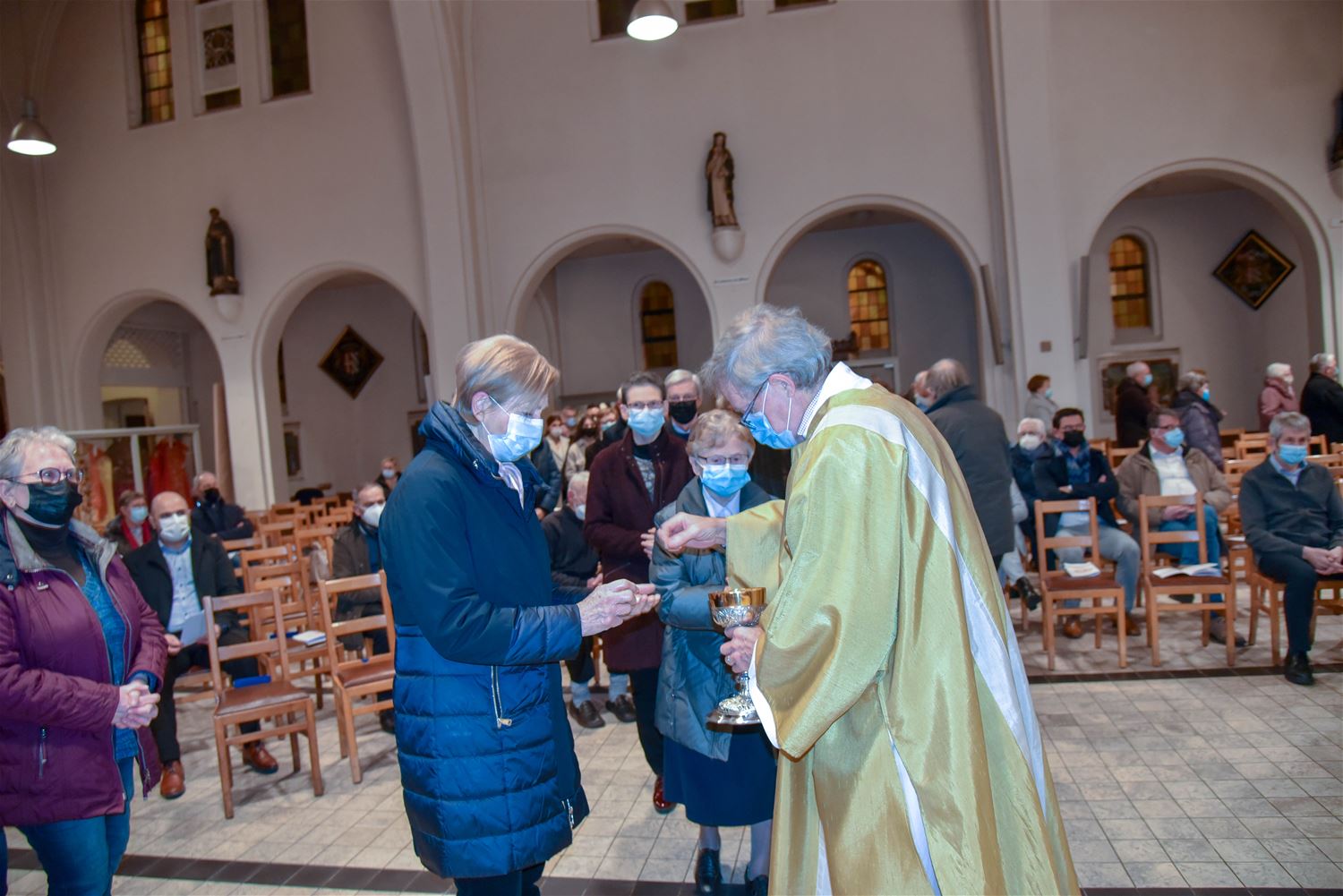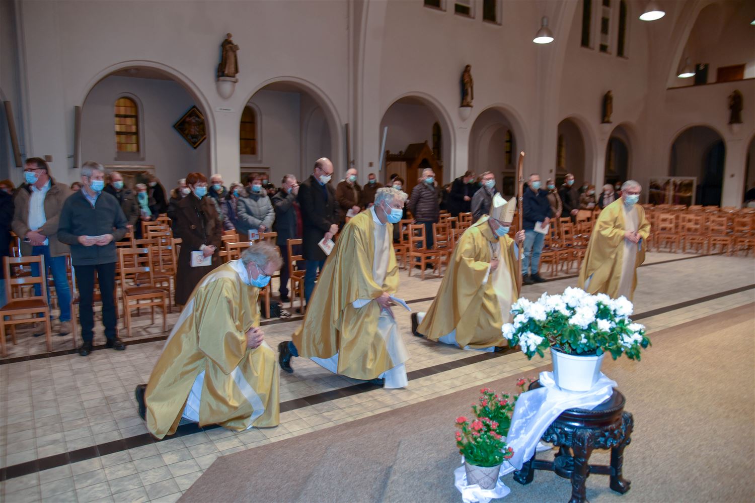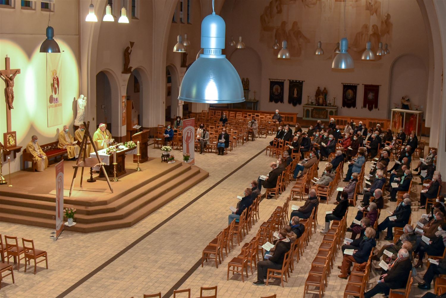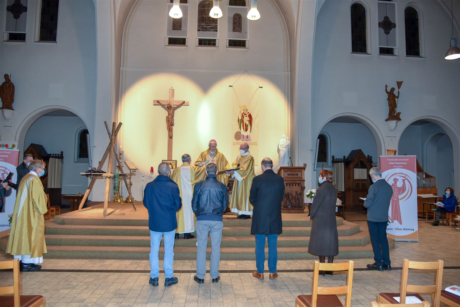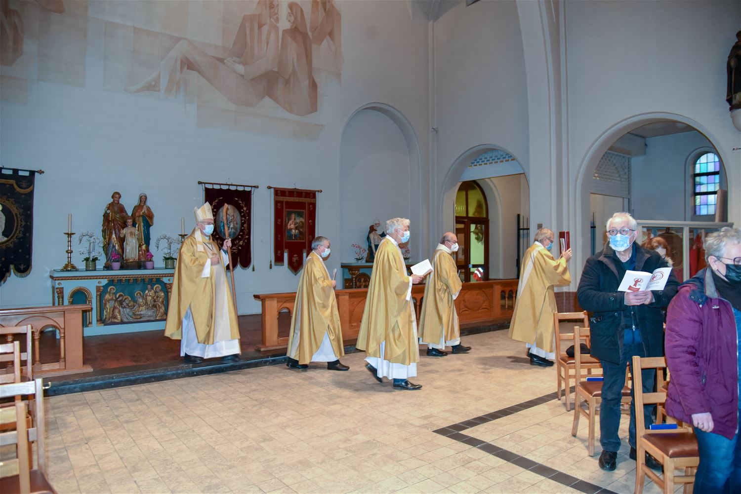 In de Sint-Willibrorduskerk had vanavond een bijzondere eucharistieviering plaats. Daarin werd de eenheid beklonken tussen de vier Heusdense parochies: Heusden, Eversel, Berkenbos en Lindeman. Ze gaan op de eerste plaats samenwerken op het vlak van liturgie, catechese en diaconie. Het bijzondere van deze stap werd benadrukt door het feit dat de viering werd voorafgegaan door bisschop Patrick Hoogmartens, samen met deken Thieu Plessers en de plaatselijke priesters. Samen met delegaties van de parochieraden of kerkfabrieken waren gelovigen uit de verschillende parochies en een delegatie van het gemeentebestuur aanwezig. De bisschop stond erop zoveel mogelijk aanwezigen persoonlijk te begroeten. (foto's David Amgad)72054