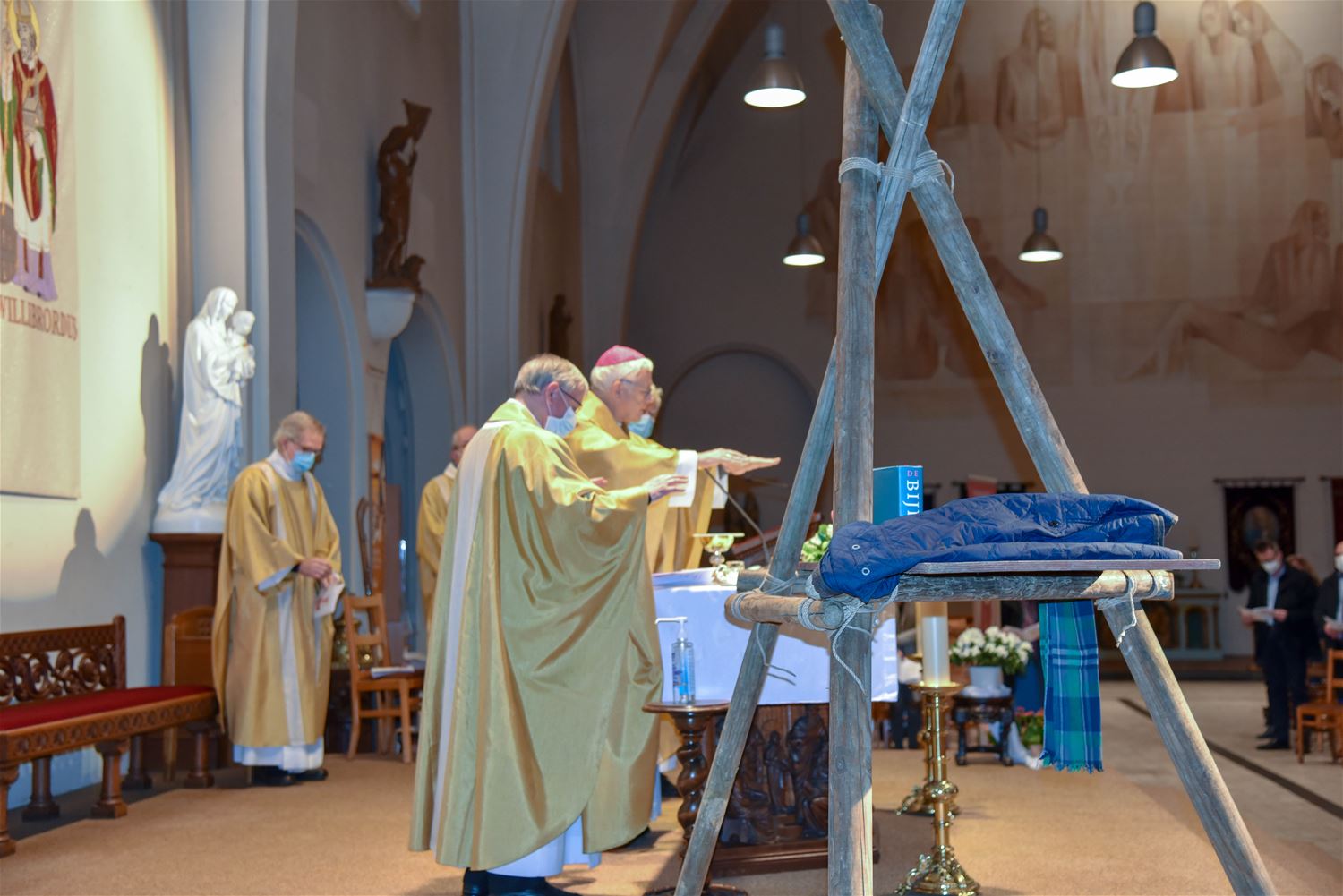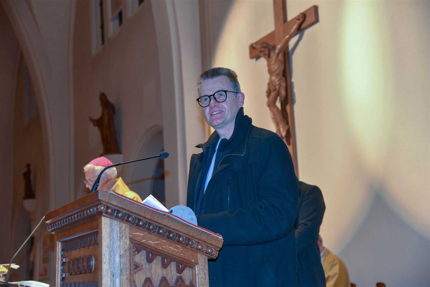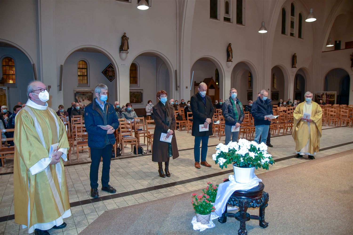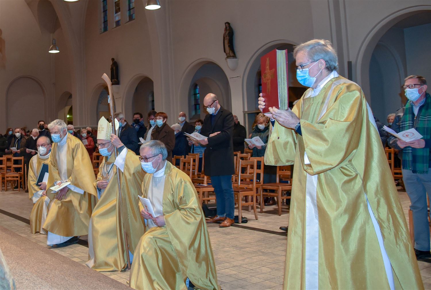 In de Sint-Willibrorduskerk had vanavond een bijzondere eucharistieviering plaats. Daarin werd de eenheid beklonken tussen de vier Heusdense parochies: Heusden, Eversel, Berkenbos en Lindeman. Ze gaan op de eerste plaats samenwerken op het vlak van liturgie, catechese en diaconie. Het bijzondere van deze stap werd benadrukt door het feit dat de viering werd voorafgegaan door bisschop Patrick Hoogmartens, samen met deken Thieu Plessers en de plaatselijke priesters. Samen met delegaties van de parochieraden of kerkfabrieken waren gelovigen uit de verschillende parochies en een delegatie van het gemeentebestuur aanwezig. De bisschop stond erop zoveel mogelijk aanwezigen persoonlijk te begroeten. (foto's David Amgad)72054