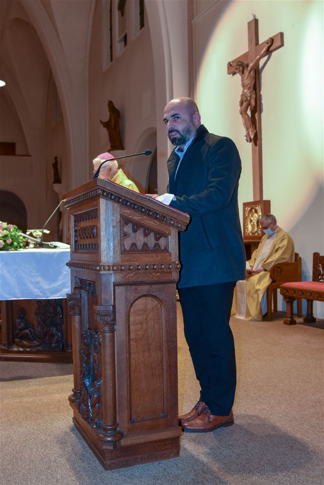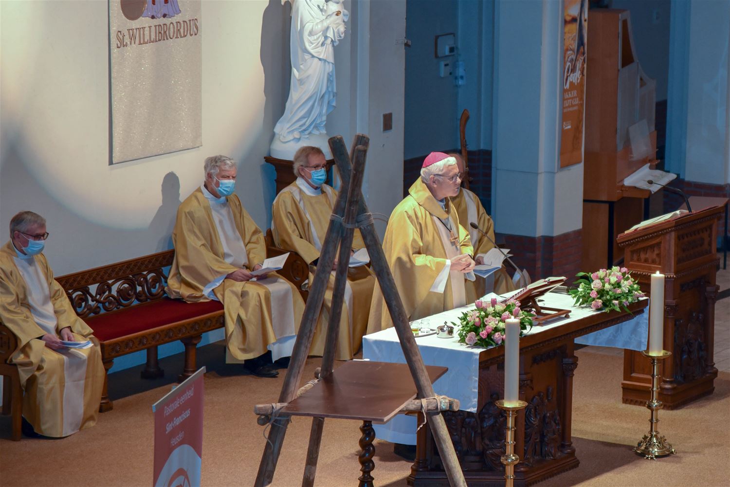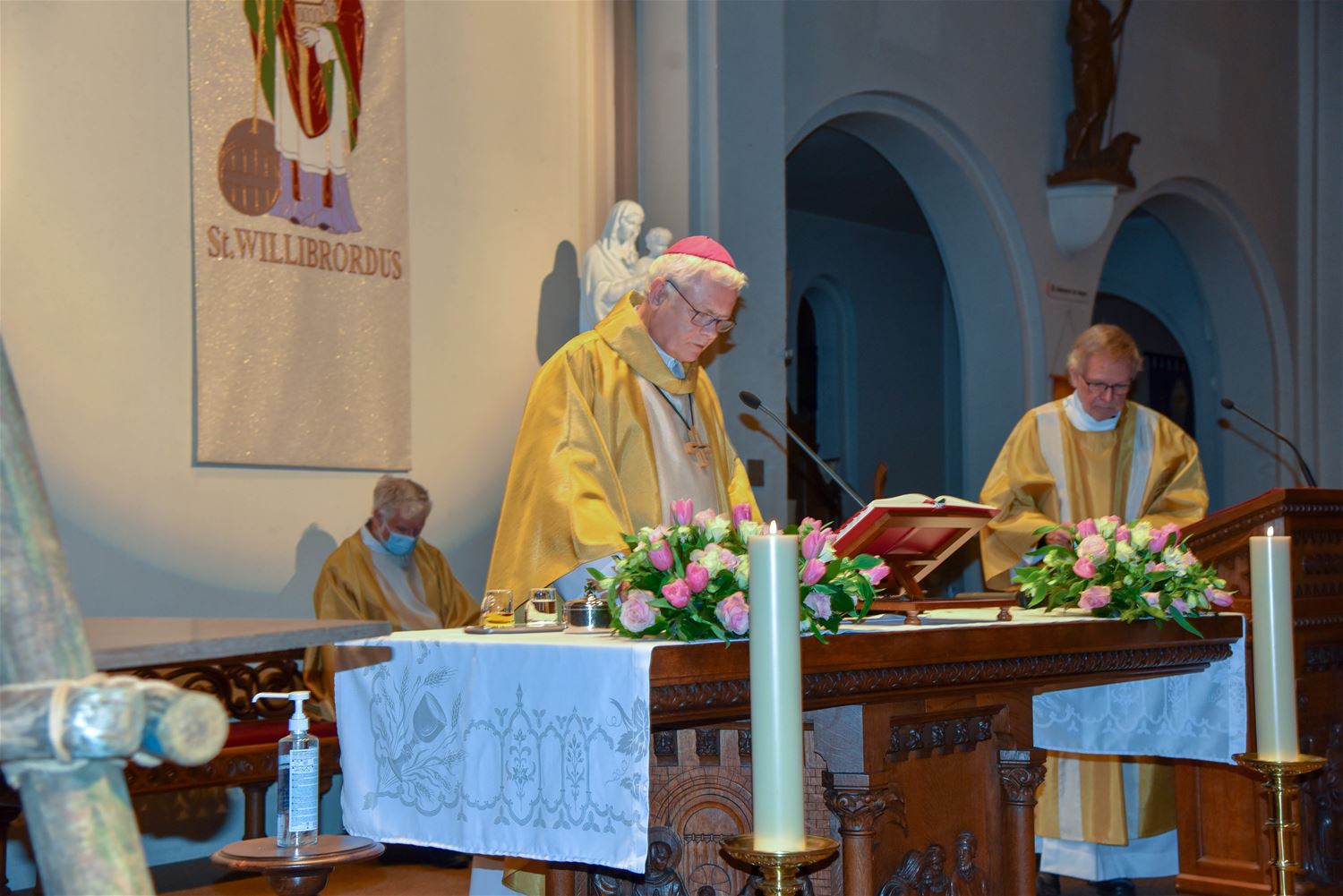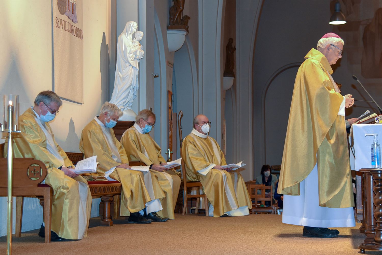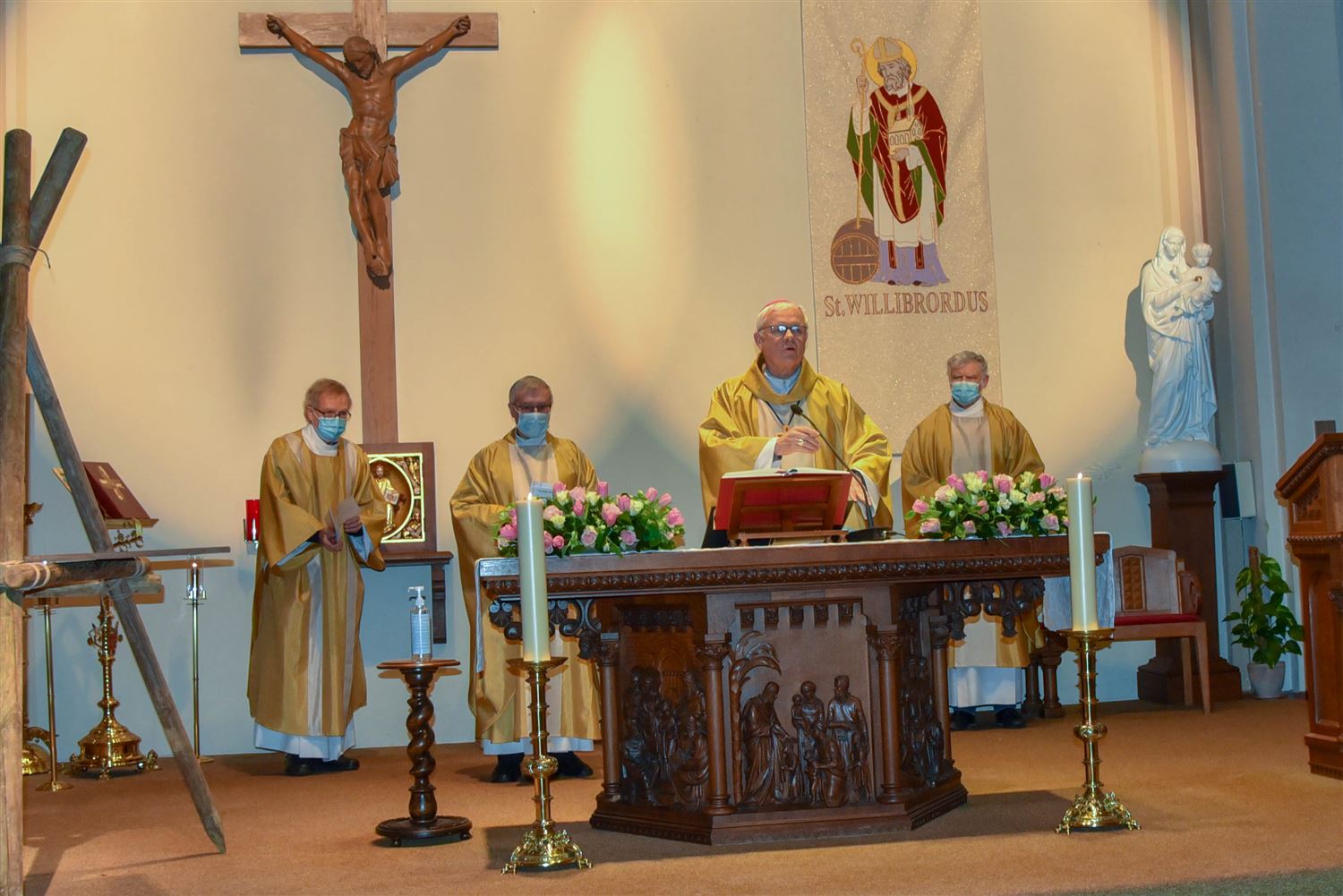 In de Sint-Willibrorduskerk had vanavond een bijzondere eucharistieviering plaats. Daarin werd de eenheid beklonken tussen de vier Heusdense parochies: Heusden, Eversel, Berkenbos en Lindeman. Ze gaan op de eerste plaats samenwerken op het vlak van liturgie, catechese en diaconie. Het bijzondere van deze stap werd benadrukt door het feit dat de viering werd voorafgegaan door bisschop Patrick Hoogmartens, samen met deken Thieu Plessers en de plaatselijke priesters. Samen met delegaties van de parochieraden of kerkfabrieken waren gelovigen uit de verschillende parochies en een delegatie van het gemeentebestuur aanwezig. De bisschop stond erop zoveel mogelijk aanwezigen persoonlijk te begroeten. (foto's David Amgad)72054