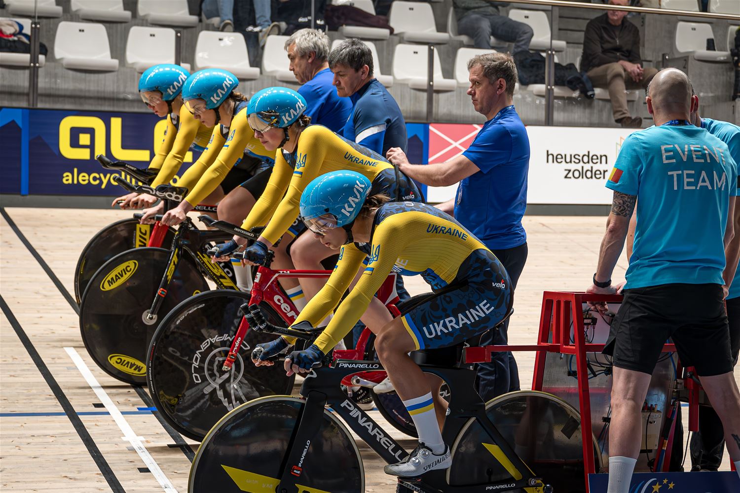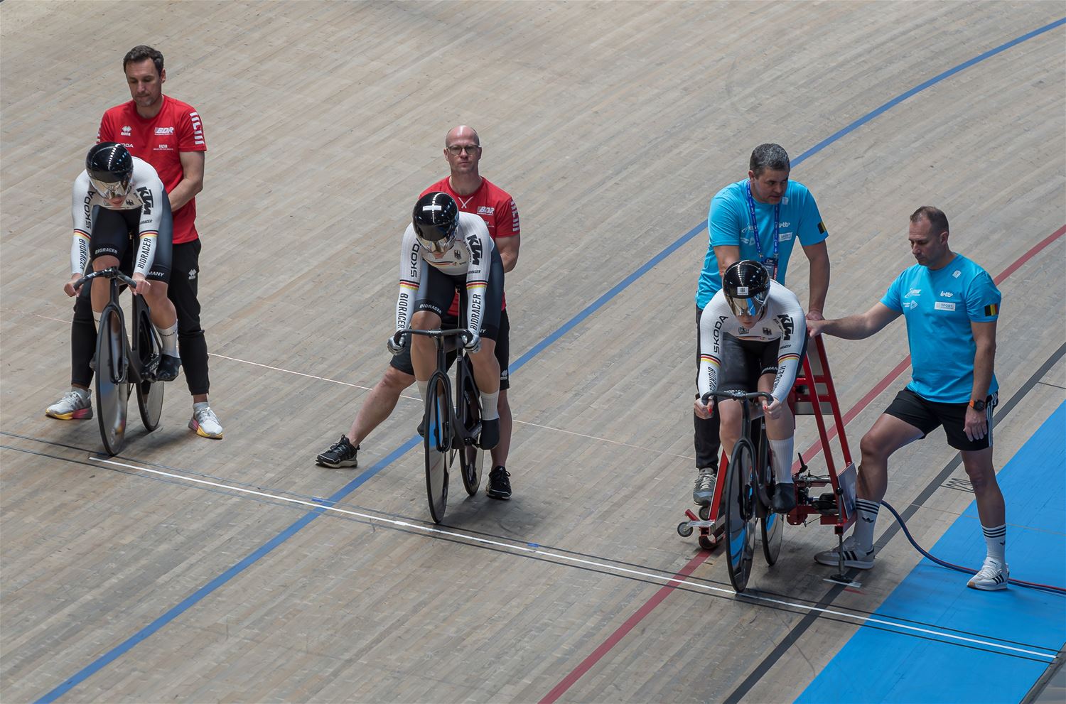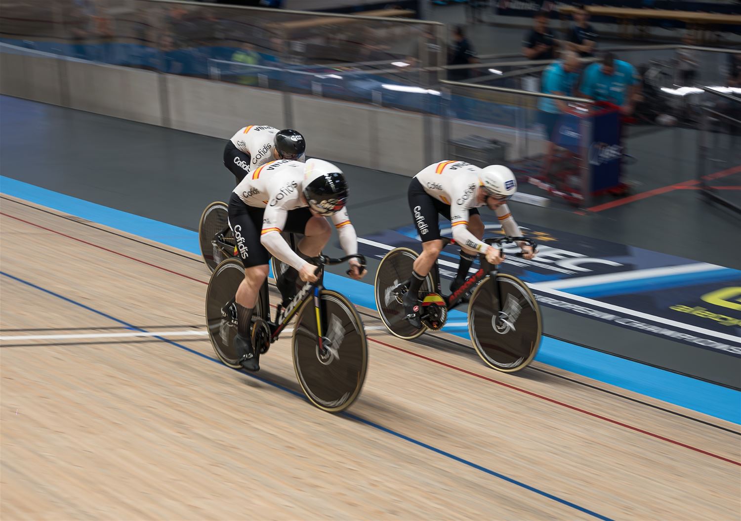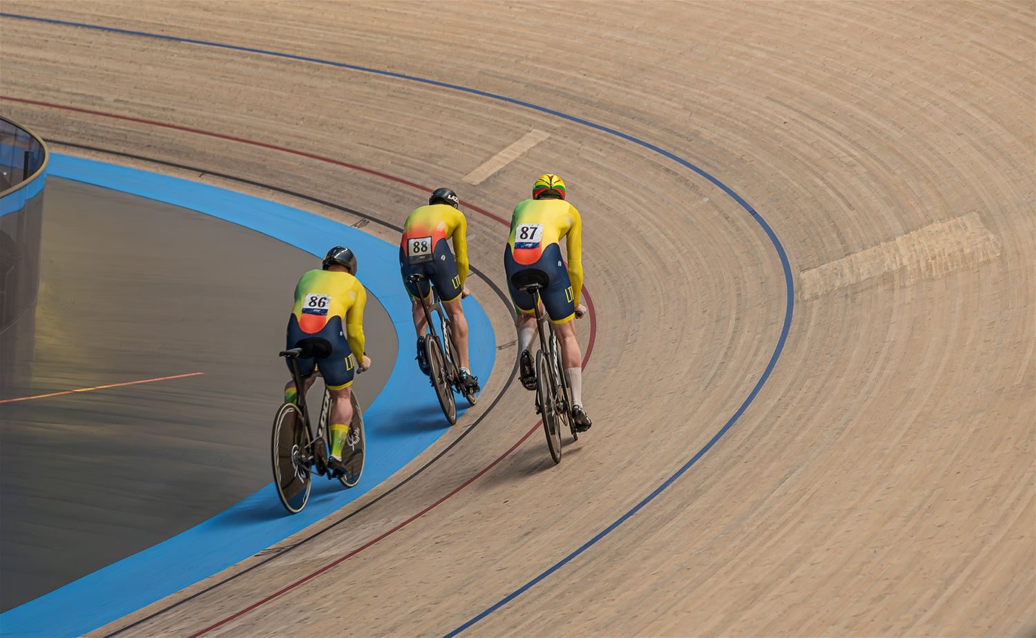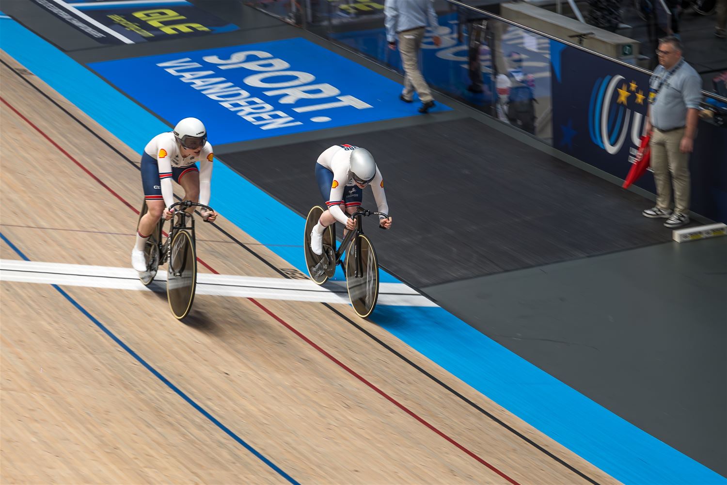 De namiddag werd dus grotendeels gedomineerd door de landenteams. Steeds weer indrukwekkend hoe in de teamsprint als in de ploegenachtervolging de landenteams haarscherp op elkaar zijn afgestemd en dat aan hoge snelheid. Eén van de Poolse dames ging vrij hard tegen het hout, maar ze kwam er zonder veel erg van af. (foto's Roman Martyka) - update Het Nederlandse team won vanavond goud in de teamsprint, bij de heren ging de titel naar de Franse ploeg.84509