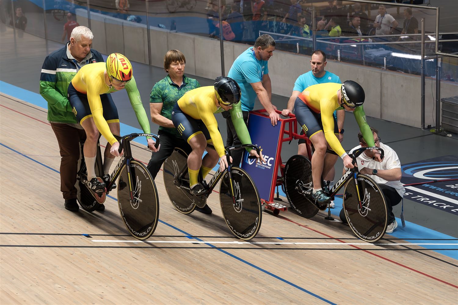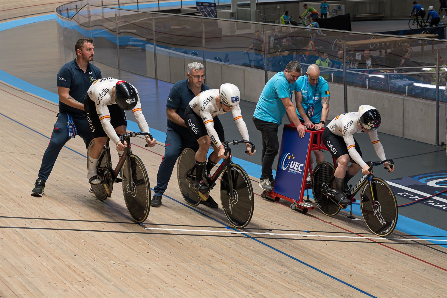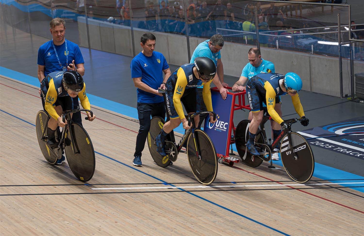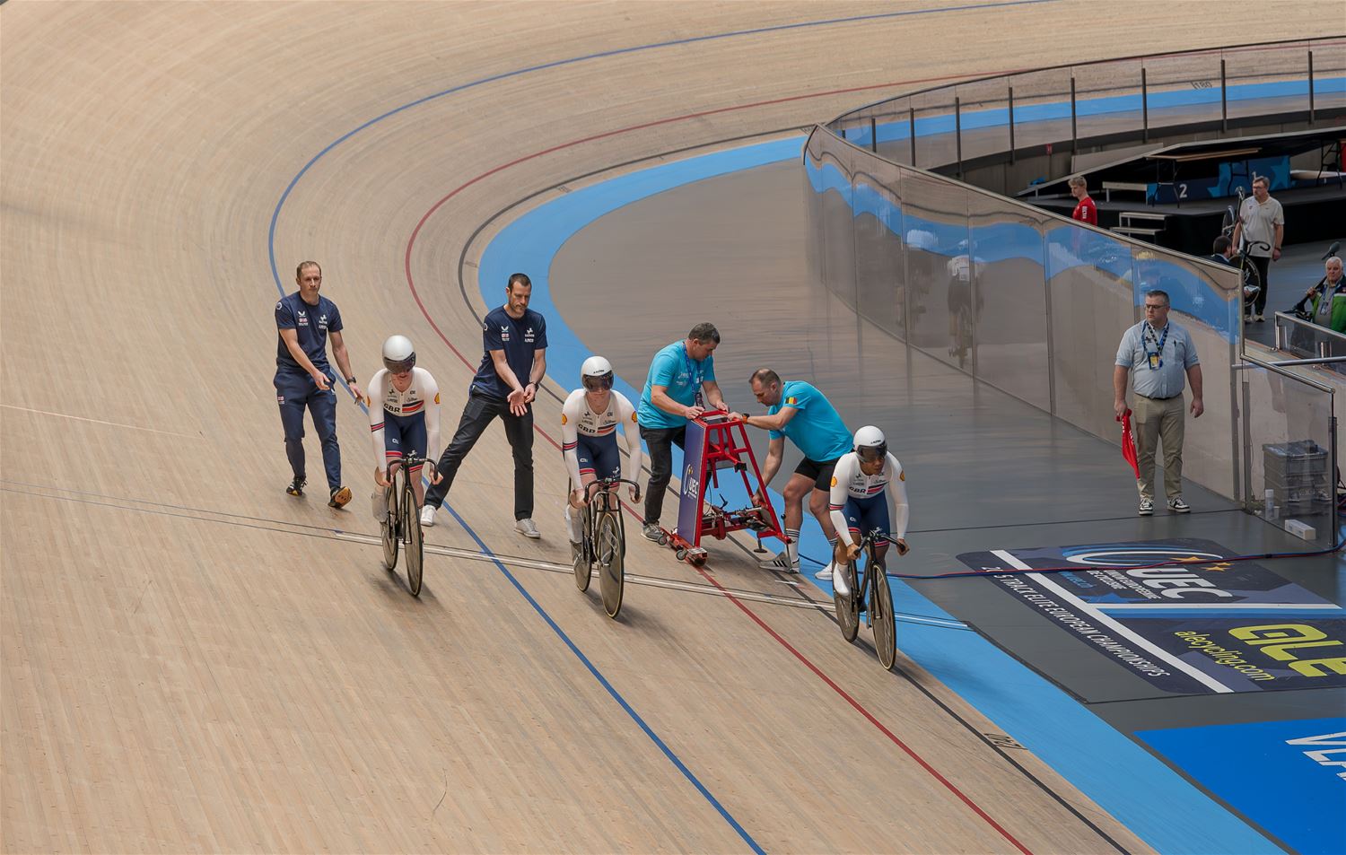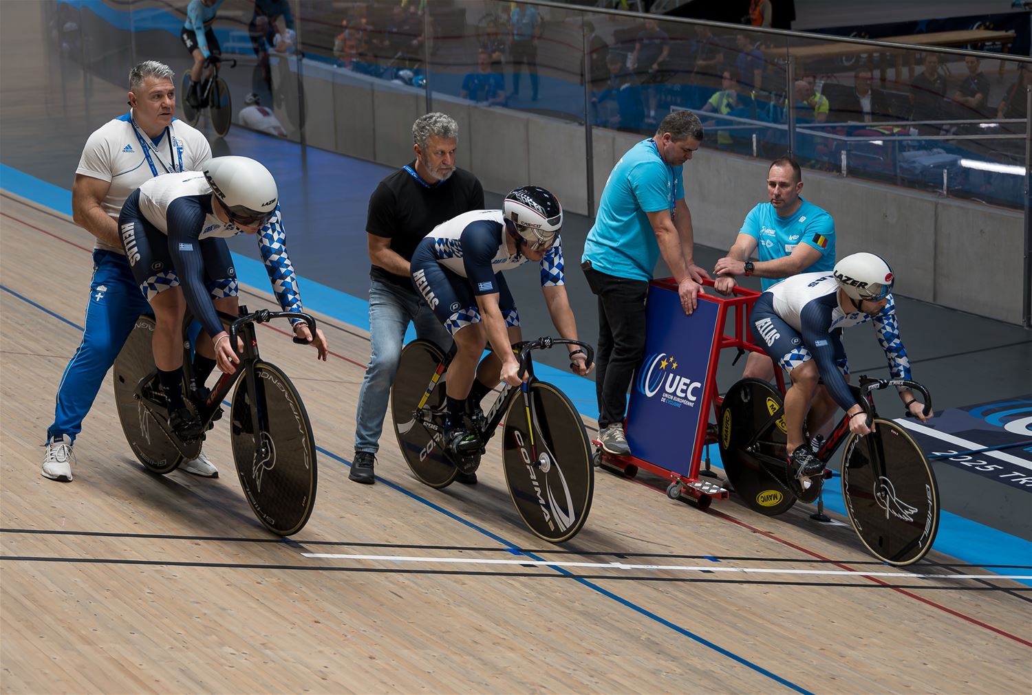 De namiddag werd dus grotendeels gedomineerd door de landenteams. Steeds weer indrukwekkend hoe in de teamsprint als in de ploegenachtervolging de landenteams haarscherp op elkaar zijn afgestemd en dat aan hoge snelheid. Eén van de Poolse dames ging vrij hard tegen het hout, maar ze kwam er zonder veel erg van af. (foto's Roman Martyka) - update Het Nederlandse team won vanavond goud in de teamsprint, bij de heren ging de titel naar de Franse ploeg.84509