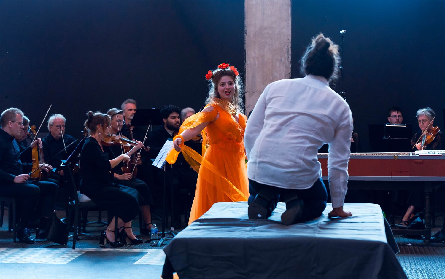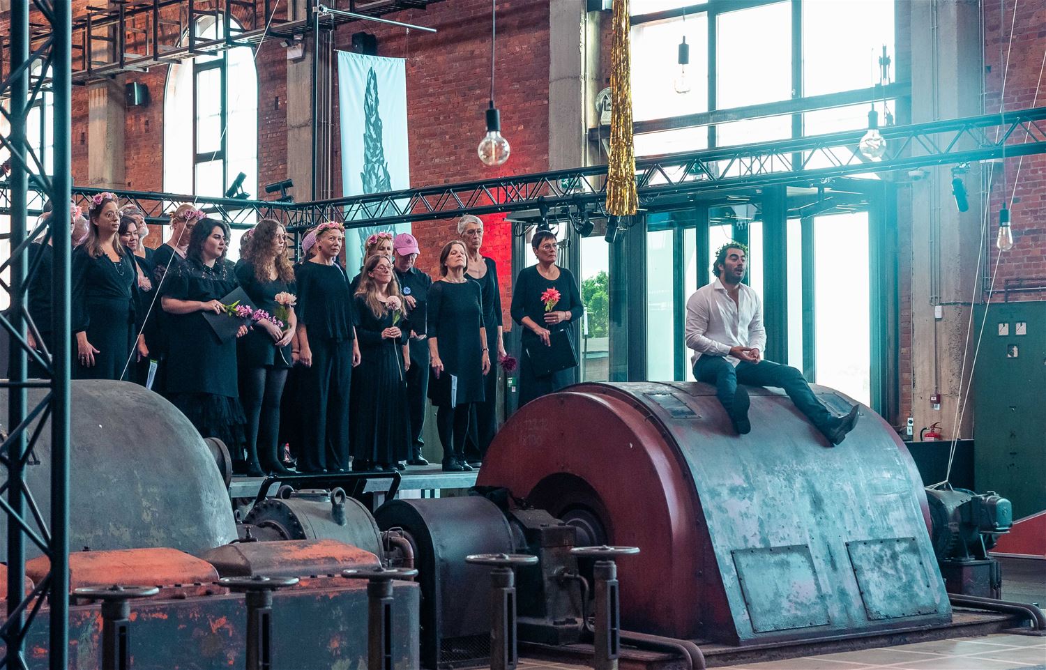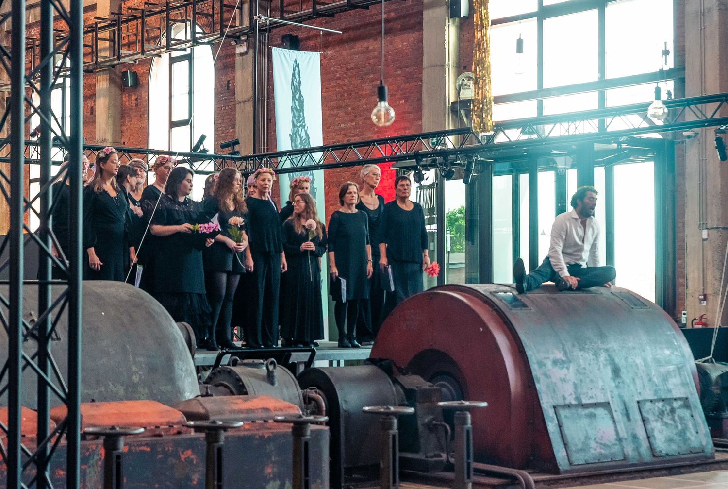 Onder grote belangstelling werd in de vooravond in ZLDR Luchtfabriek de opera ‘Orfeo & Euridice’ van Christoph Willibald Gluck uitgevoerd. Het was het resultaat van een week hard werken en repeteren onder leiding van Sandro Rossi. ZLDR Luchtfabriek vormde een ongewoon decor voor een opera, enkele machines werd zelfs mee geïntegreerd en doordat de voorstelling overdag plaatsvond, wierp het zonlicht een aparte gloed over het geheel. Het werd een uitvoering vol emotie, waarna de zangers/acteurs op een staande ovatie werden getrakteerd. (foto’s Ann Jordens)85937