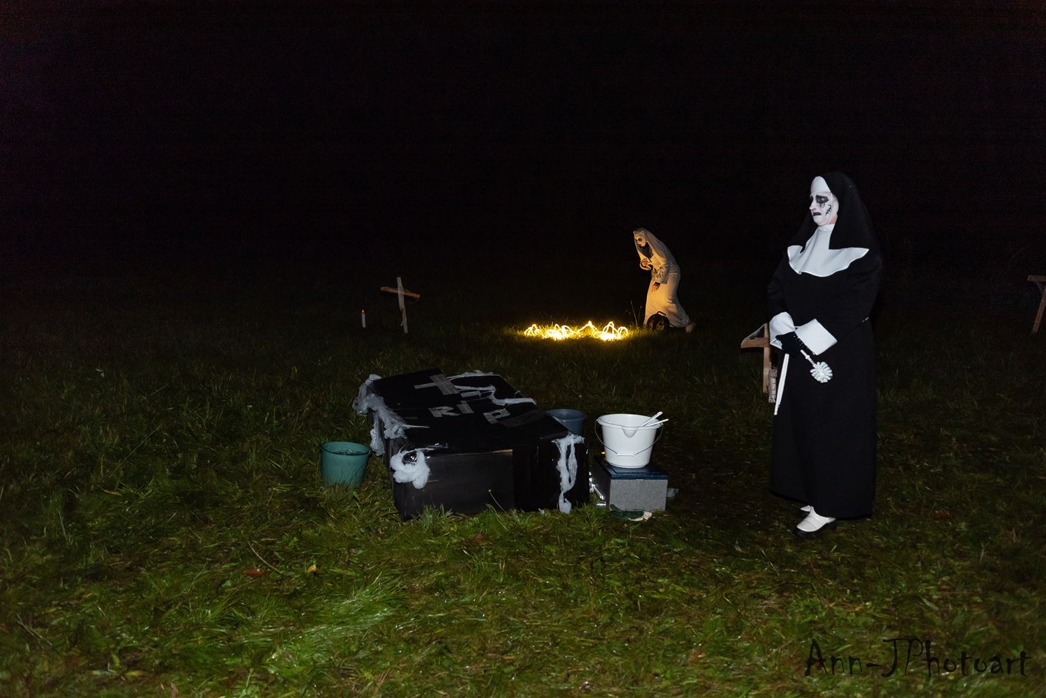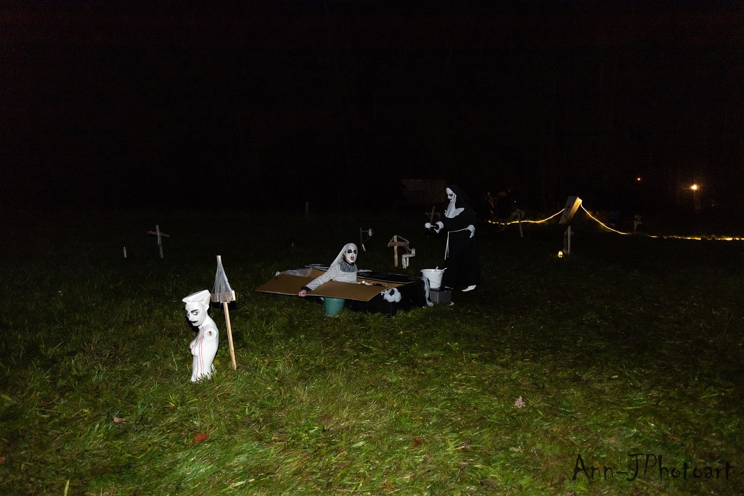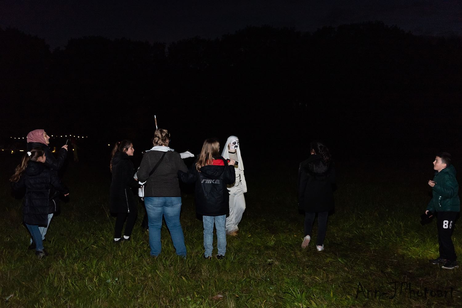 Vanavond was het opnieuw stevig griezelen voor de deelnemers aan de halloweentocht van De Schans en De Luchtballon. De volwassenen en wat oudere kinderen konden in het donker al wat meer incasseren en de leerkrachten en medewerkers hadden dan ook een tandje bijgestoken in hun griezelverhaal. 't Was in ieder geval bijzonder knap georganiseerd. (foto's Ann Jordens)71085