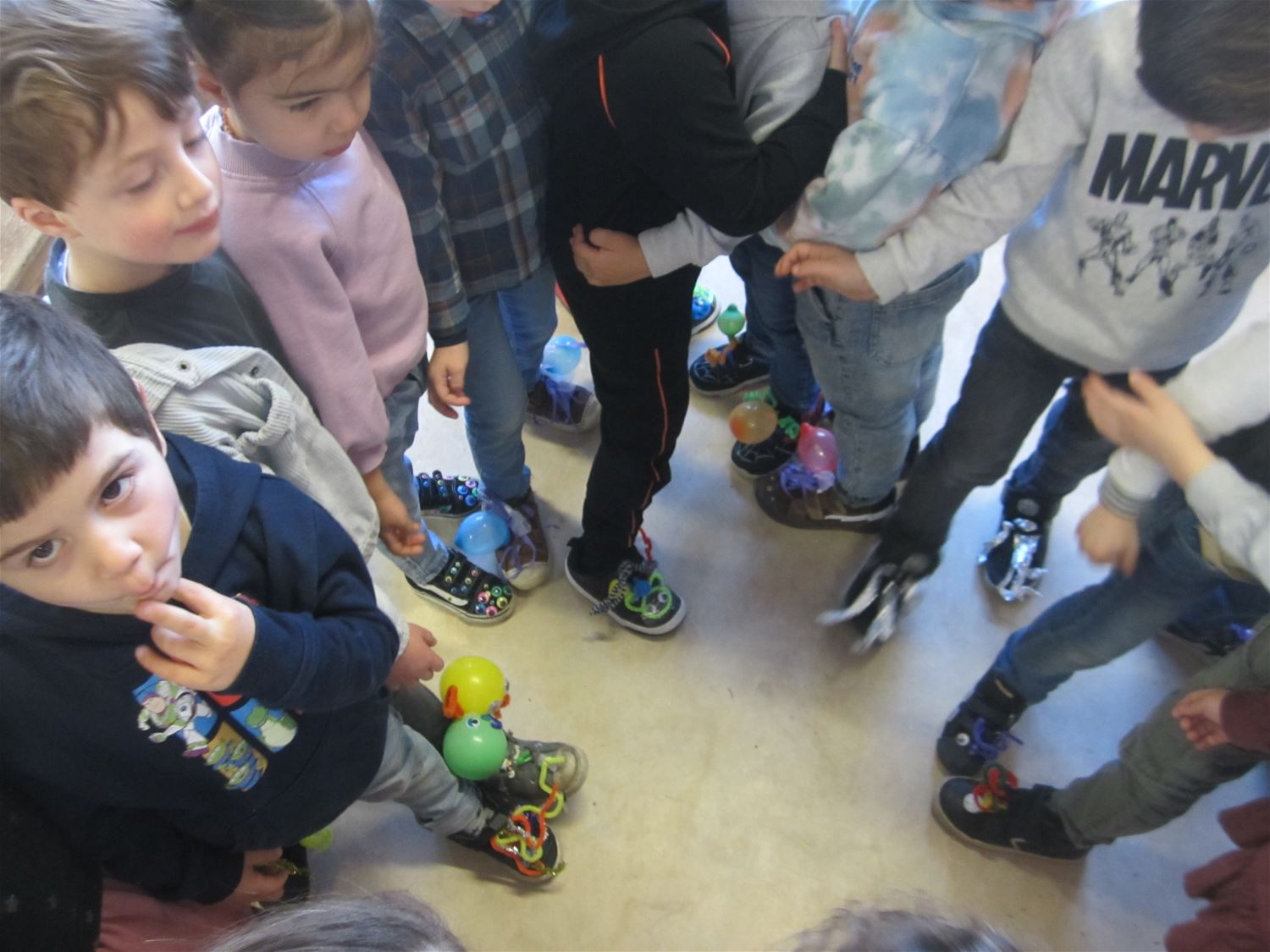 De scholen maken zich nog altijd op voor het carnavalsfeest en ook in Pagadder vinken ze elke dag weer een gekke activiteit af. Zo was het vandaag gekke schoenendag. De kleuters kwamen met de meest gekke en kleurrijke schoeisels naar school. Heel wat ouders hadden duidelijk een handje toegestoken om er iets moois van te maken. Er werd dan ook vooral naar beneden gekeken vandaag. 72285