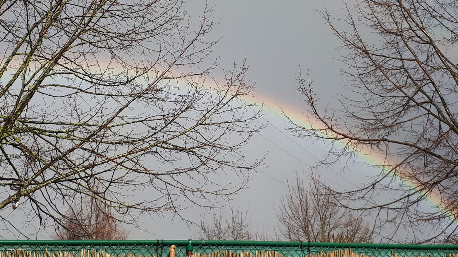 Het is vandaag een knettergek weer: motregen, stevige buien, zonneschijn, donderslagen, hagel, rukwinden .... kortom, alle ingrediënten van een menu met maartse buien. En daar moest dan natuurlijk ook een regenboog komen bij kijken. Zoals Koen Claes spotte vanuit de Oude Baan. En Karin Cerstelotte zag hem vanuit de Brugstraat (foto onder)77069