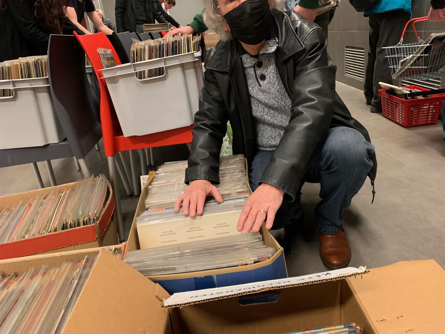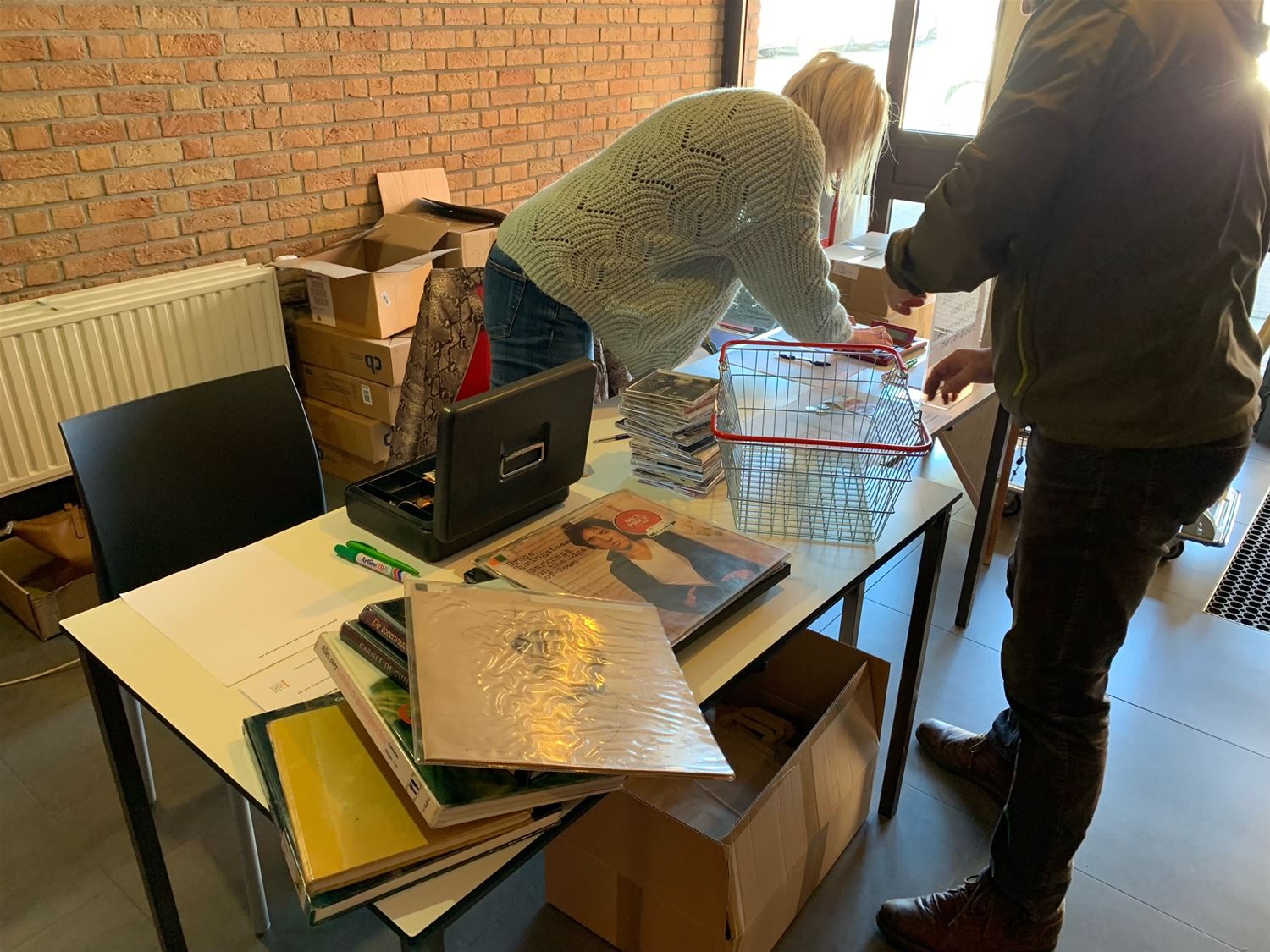 Vandaag is het de eerste dag van de boeken- en platenverkoop van de bibliotheek in 't Kuipershof. De eerste bezoekers vielen bijna achterover van het enorme aanbod waarmee de zaal zit volgestouwd. En er vallen koopjes te doen, een halve euro voor een boek en 5 euro voor een plaat .... 't is geen geld. Het gaat bovendien om een breed aanbod, ook inhoudelijk. Onze man ter plekke meende trouwens al enkele antiquairs en brocanteurs bespeurd te hebben. En ook de 'gewone' bezoekers zeulden hele ladingen naar buiten. Ook morgen en zondag kun je er nog terecht. (foto's Julien Maebe)72491