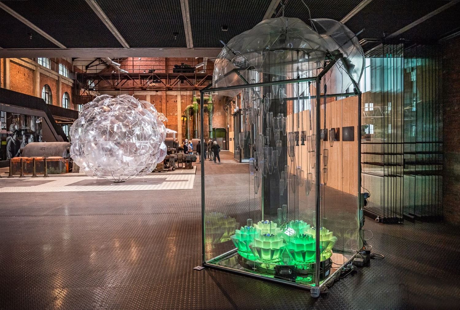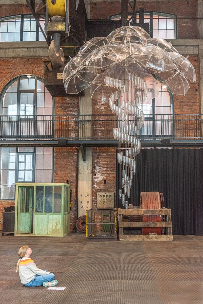 De tentoonstelling 'Social Distance / Rethinking Society’ van Mark Swysen in ZLDR Luchtfabriek gaat haar slotweekend in. Via de website van Muze kun je nog gratis 'bubbeltickets' reserveren. Mark Swysen vertrok vanuit de coronasituatie en haalde daarbij voorwerpen als paraplu's en pet-flessen uit hun gewone context om ze tot nieuwe verrassende constructies te transformeren. Licht, geluid en beweging maken de ervaring nog krachtiger. Nog te kijk tot en met zondag. (foto's Ann Jordens)