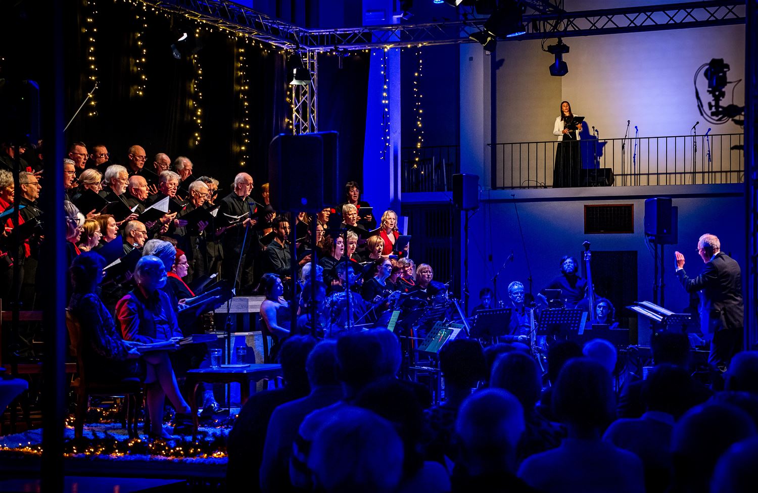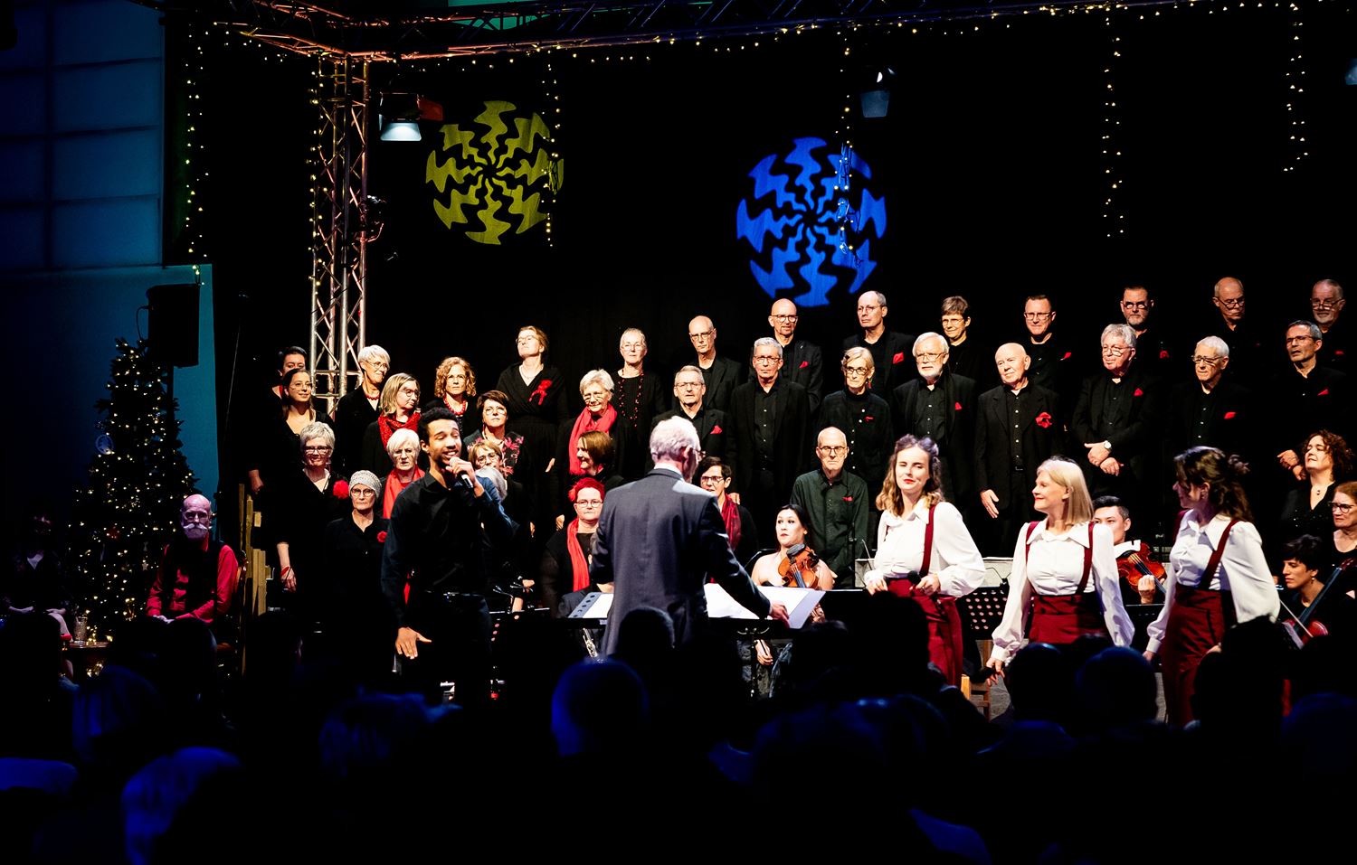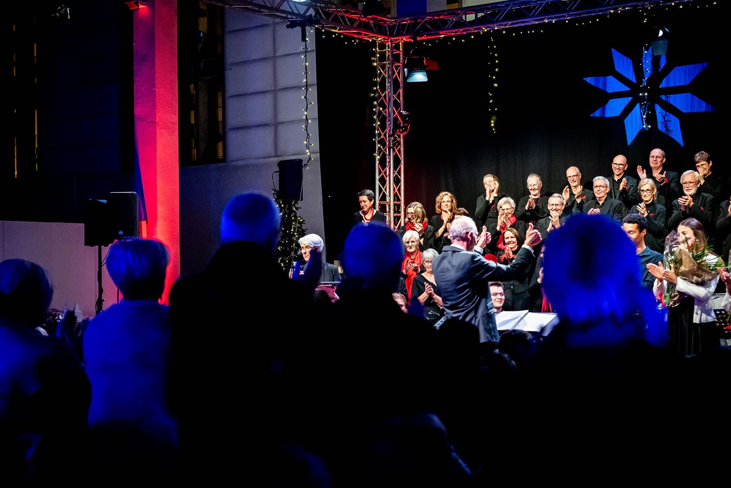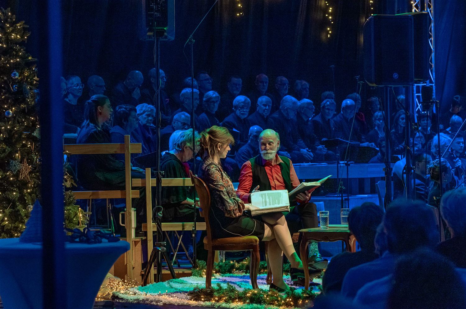 Het koor Exsultate gaf vanavond in de kerk van Boekt een prachtig kerstconcert. Een oud Vlaams kerstverhaal dat verteld werd als rode draad, met een elfkoppig orkest, solisten en uiteraard de zangers en zangeressen van Exsultate zelf. Dirigent Bruno Sprengers heeft zich daarbij weer tot duizendpoot ontpopt want naast zijn gewone rol nam hij ook geluid, verlichting, decor en logistiek voor zijn rekening. Morgen om 17 uur is er nog een tweede concert in dezelfde Heilig-Hartkerk. (foto's Ann Jordens)84091