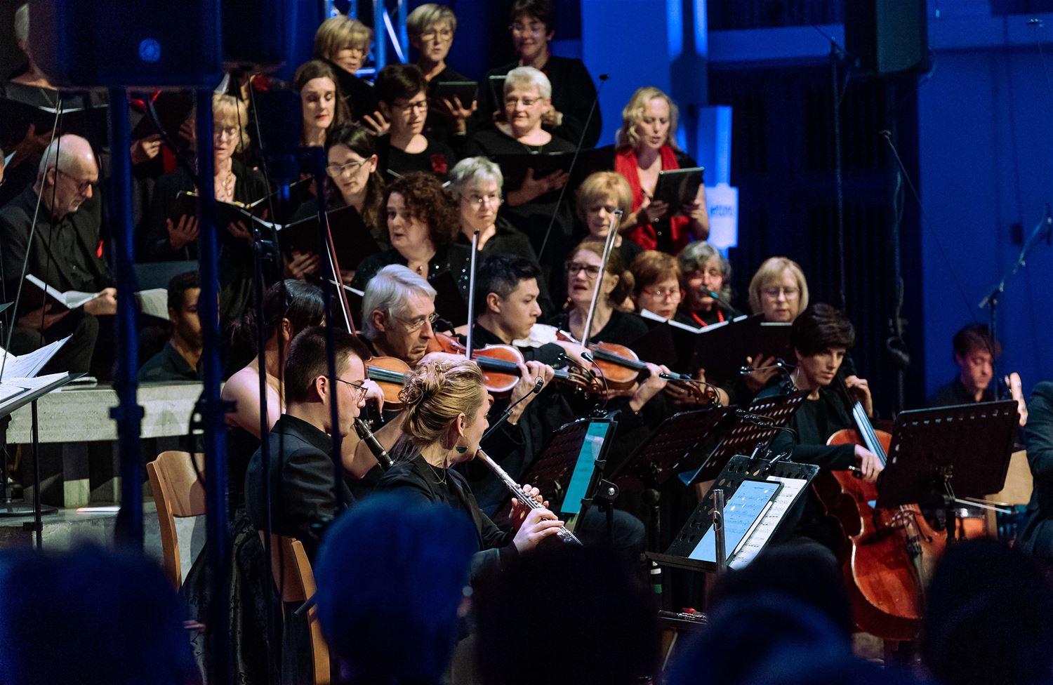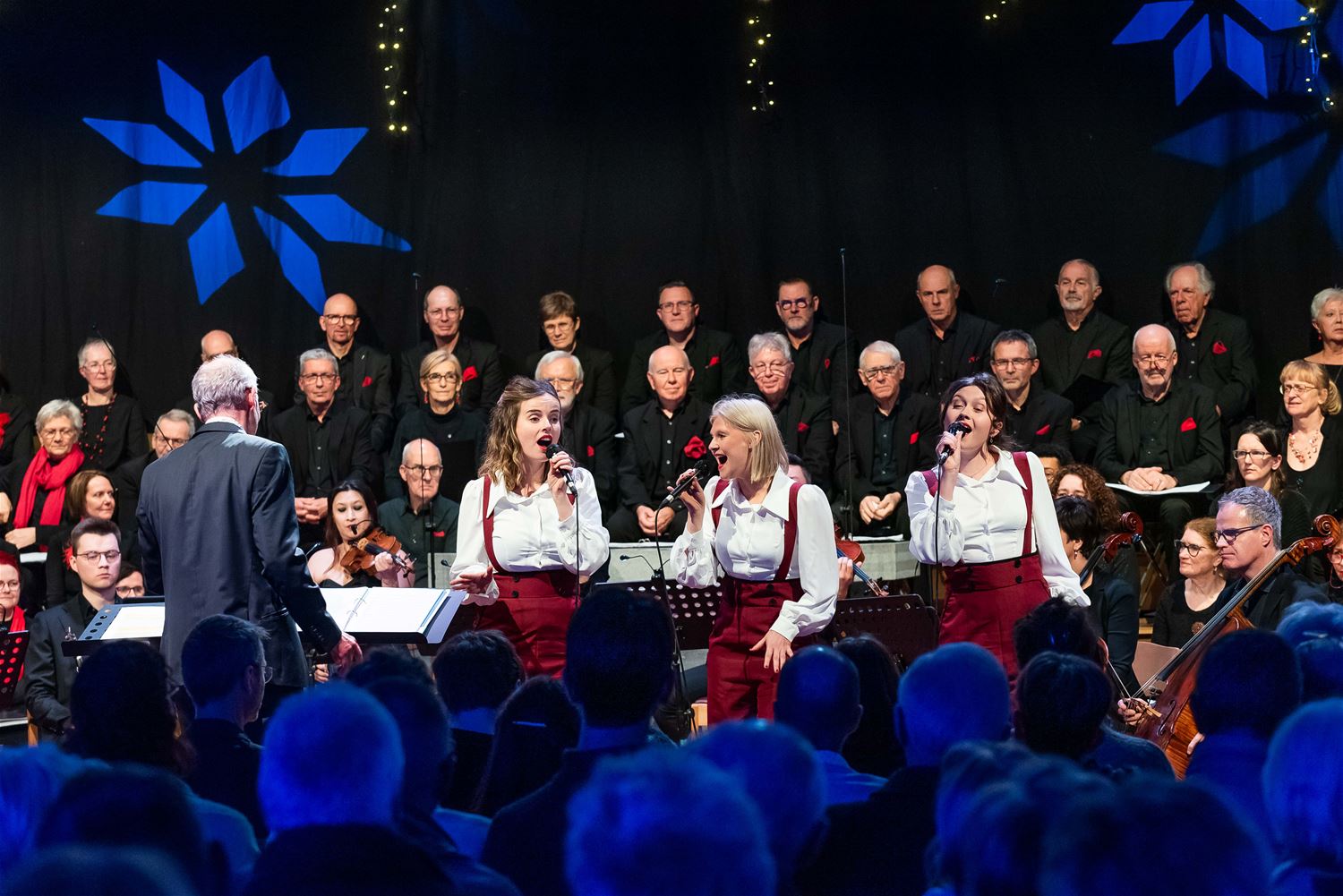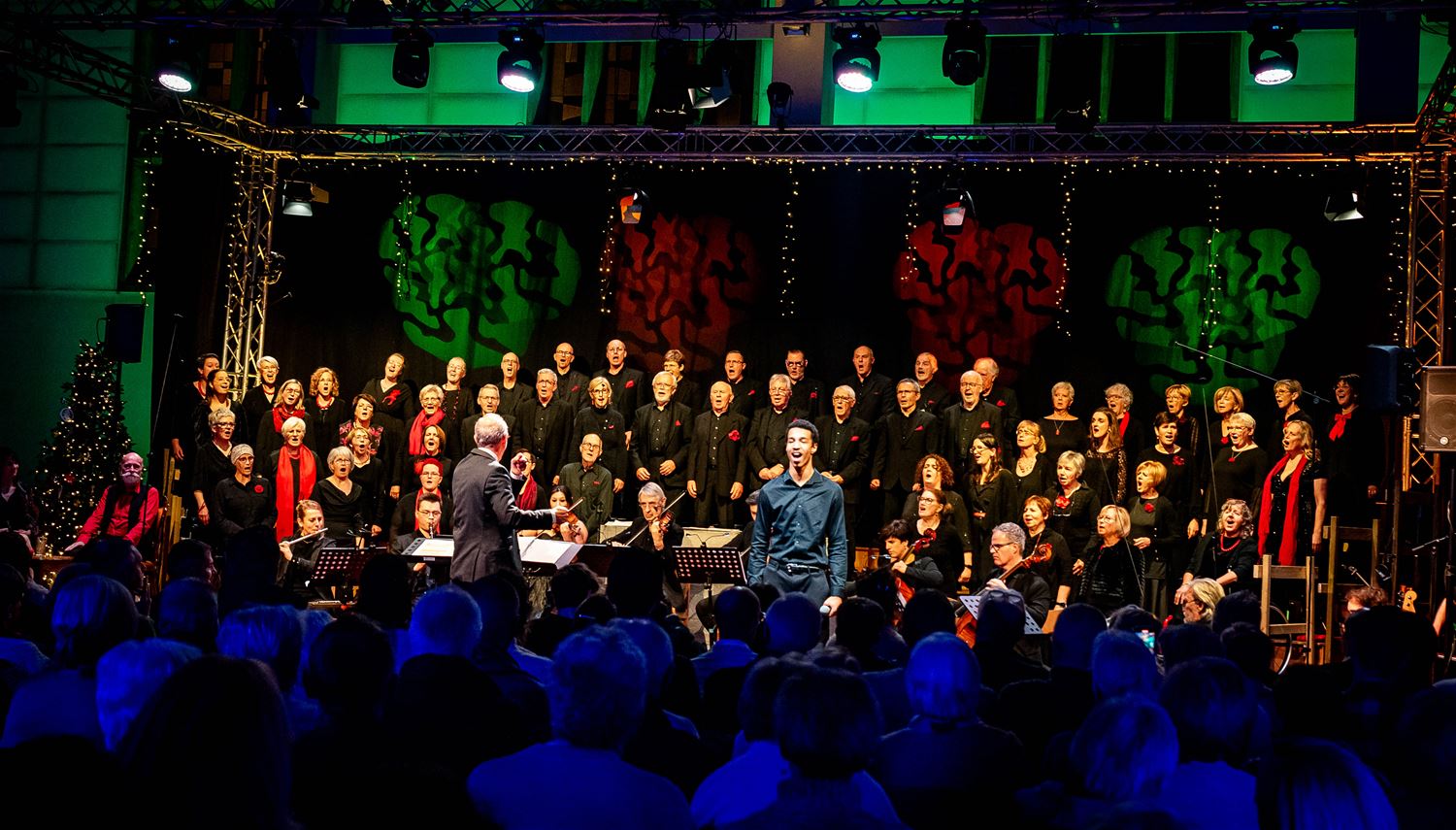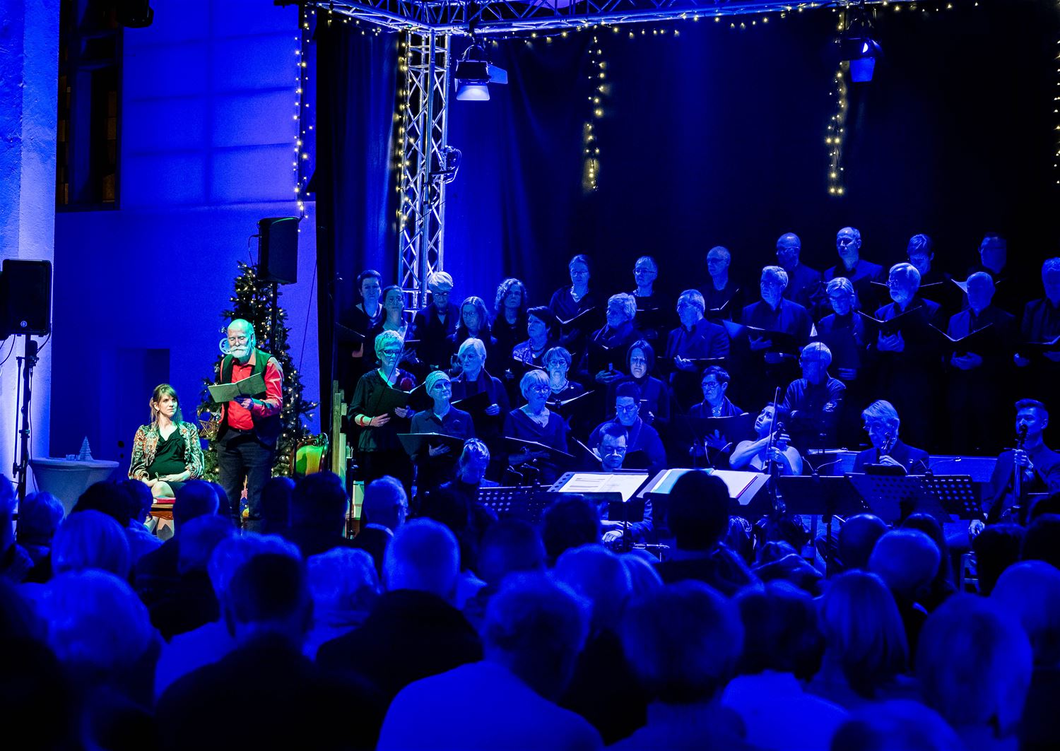 Het koor Exsultate gaf vanavond in de kerk van Boekt een prachtig kerstconcert. Een oud Vlaams kerstverhaal dat verteld werd als rode draad, met een elfkoppig orkest, solisten en uiteraard de zangers en zangeressen van Exsultate zelf. Dirigent Bruno Sprengers heeft zich daarbij weer tot duizendpoot ontpopt want naast zijn gewone rol nam hij ook geluid, verlichting, decor en logistiek voor zijn rekening. Morgen om 17 uur is er nog een tweede concert in dezelfde Heilig-Hartkerk. (foto's Ann Jordens)84091