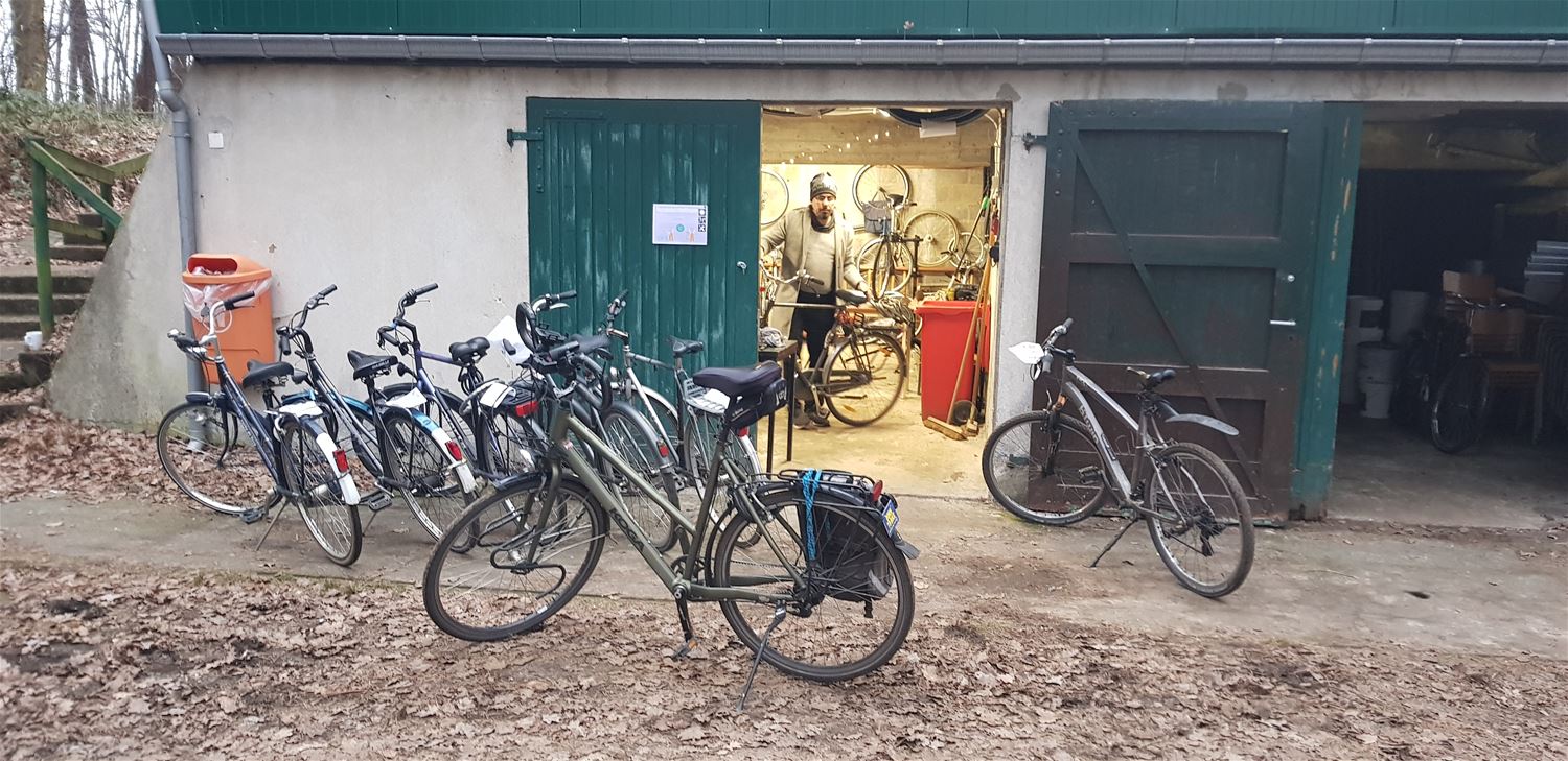 Het fietsatelier in het Rode Kruisopvangcentrum De Bark is ondertussen drie jaar actief. De KWB’s van Heusden-Zolder zorgden voor een vijftigtal fietsen. De Fietsersbond stond mee in voor de organisatie en fietseducatie. Fred, John en Walid zijn drie vrijwilligers die via vzw Gave Veste in contact kwamen met het centrum en nu elke zaterdagnamiddag langskomen om fietsen te herstellen. Op die manier beschikken de bewoners over fietsen om zich zelfstandig én duurzaam te verplaatsen. (foto's Paul Coolen)79848