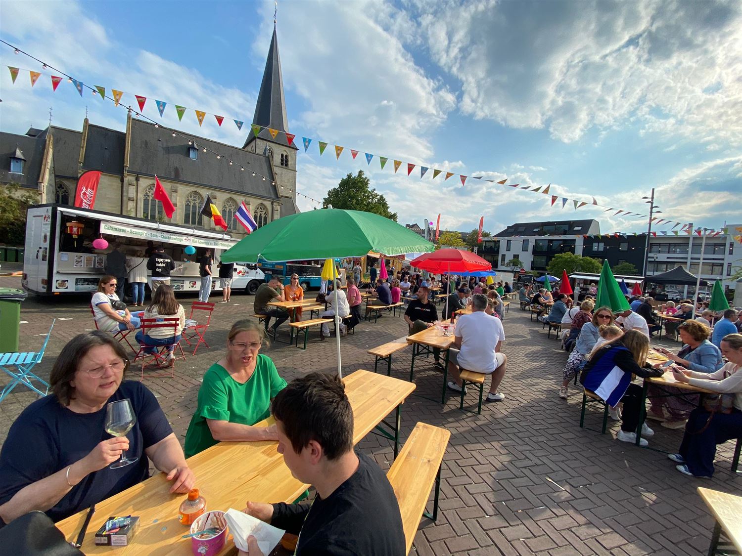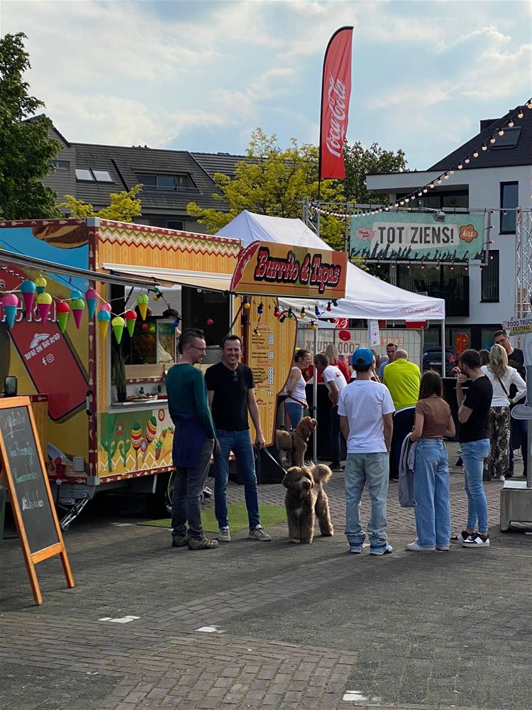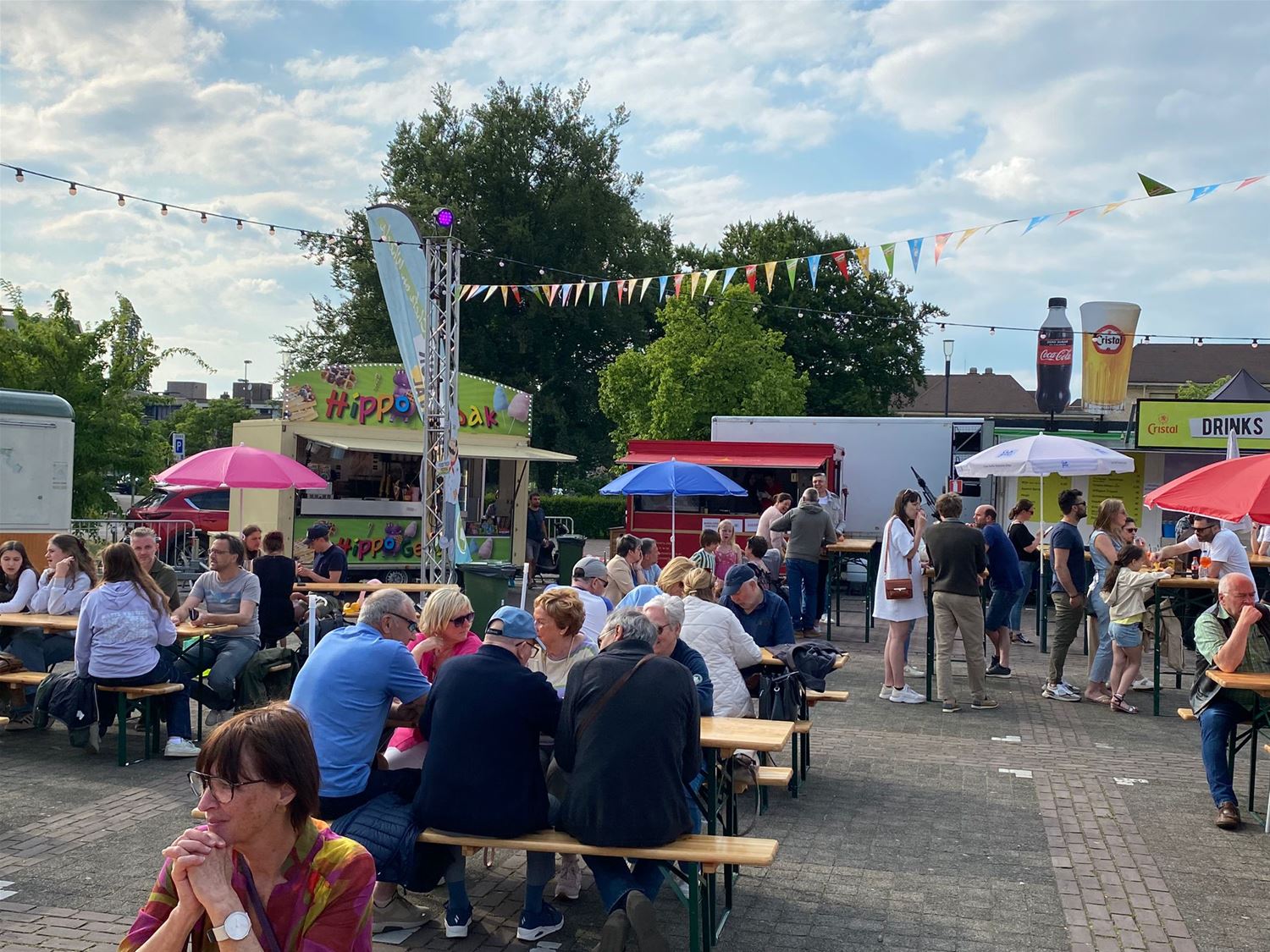 Het Foodtruckfestival op het Heldenplein heeft zijn start niet gemist. Er staat dan ook een stralende zon en samen met de live-muziek en animatie zorgt dat voor de ideale sfeer. In de loop van de namiddag dienden zich al heel wat lekkerbekken aan en in de vooravond was het aanschuiven aan verschillende foodtrucks. Maar geen nood, er is genoeg aanbod, zowel in aantal als variatie en het foodtruckfestival blijft nog heel de avond geopend. Morgen - met nog warmer weer in het vooruitzicht - gaan de Chefs on Wheels zelfs al om 12 uur van start. (foto's Danny Tielens)77561