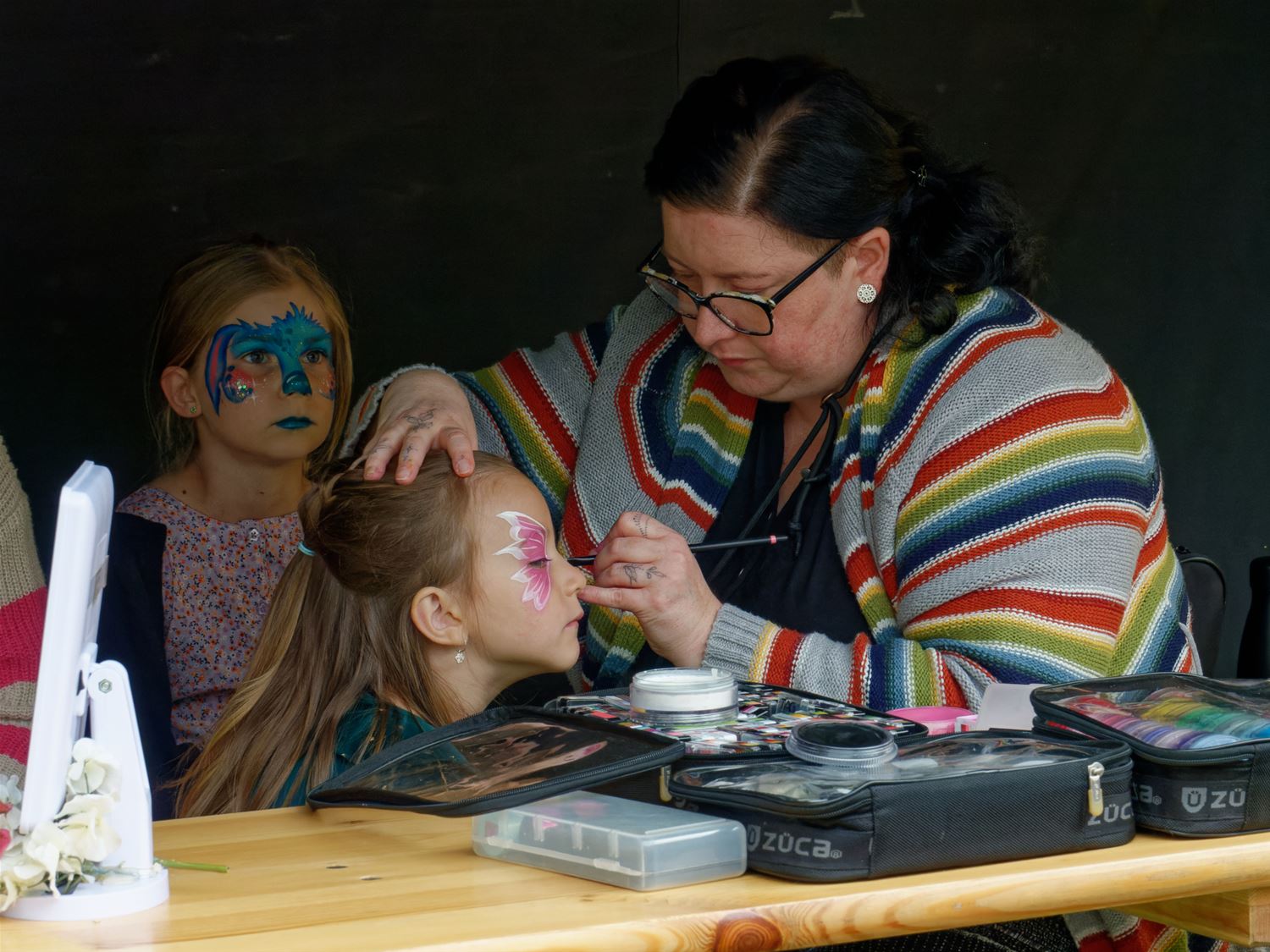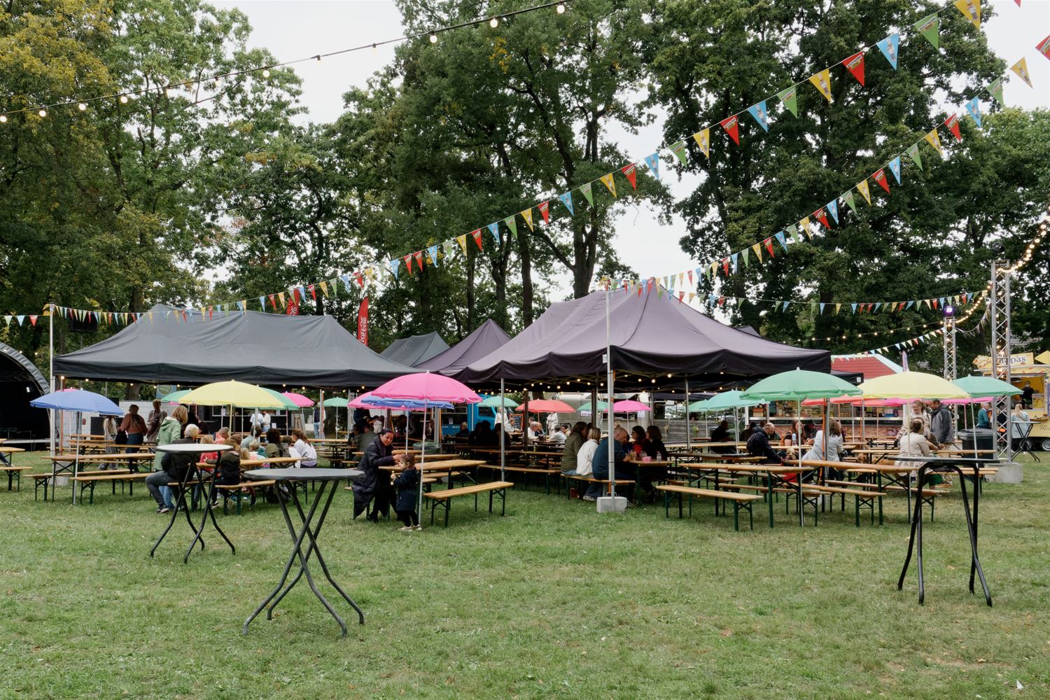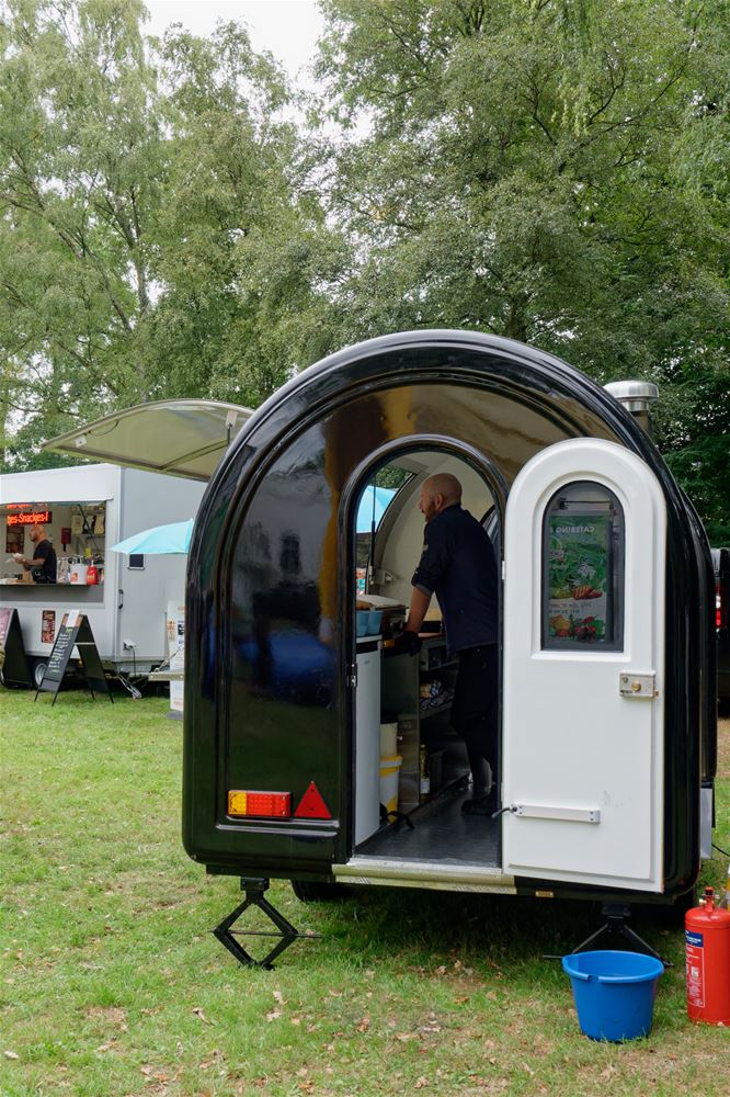 Gisteren kon het foodtruckfestival Chefs on Wheels op Domein Bovy nog genieten van warm weer, vandaag was het al heel wat wisselvalliger. Kort na de middag was het kalm en kwam het festival langzaam op gang. Later op de middag kwam er wel meer volk afgezakt, hadden de food- en drinkstandjes wel werk om handen, terwijl ook de kinderschmink populair bleek. Toen bovendien de band Andersom zijn klanken door de boxen begon te blazen, kwam de sfeer er helemaal in en werd ook de kortstondige regen vergeten. Al zijn er de voorbije jaren ongetwijfeld betere edities geweest. Je kunt er nog terecht tot 21 uur vanavond. (foto’s Robrecht Froyman)86400