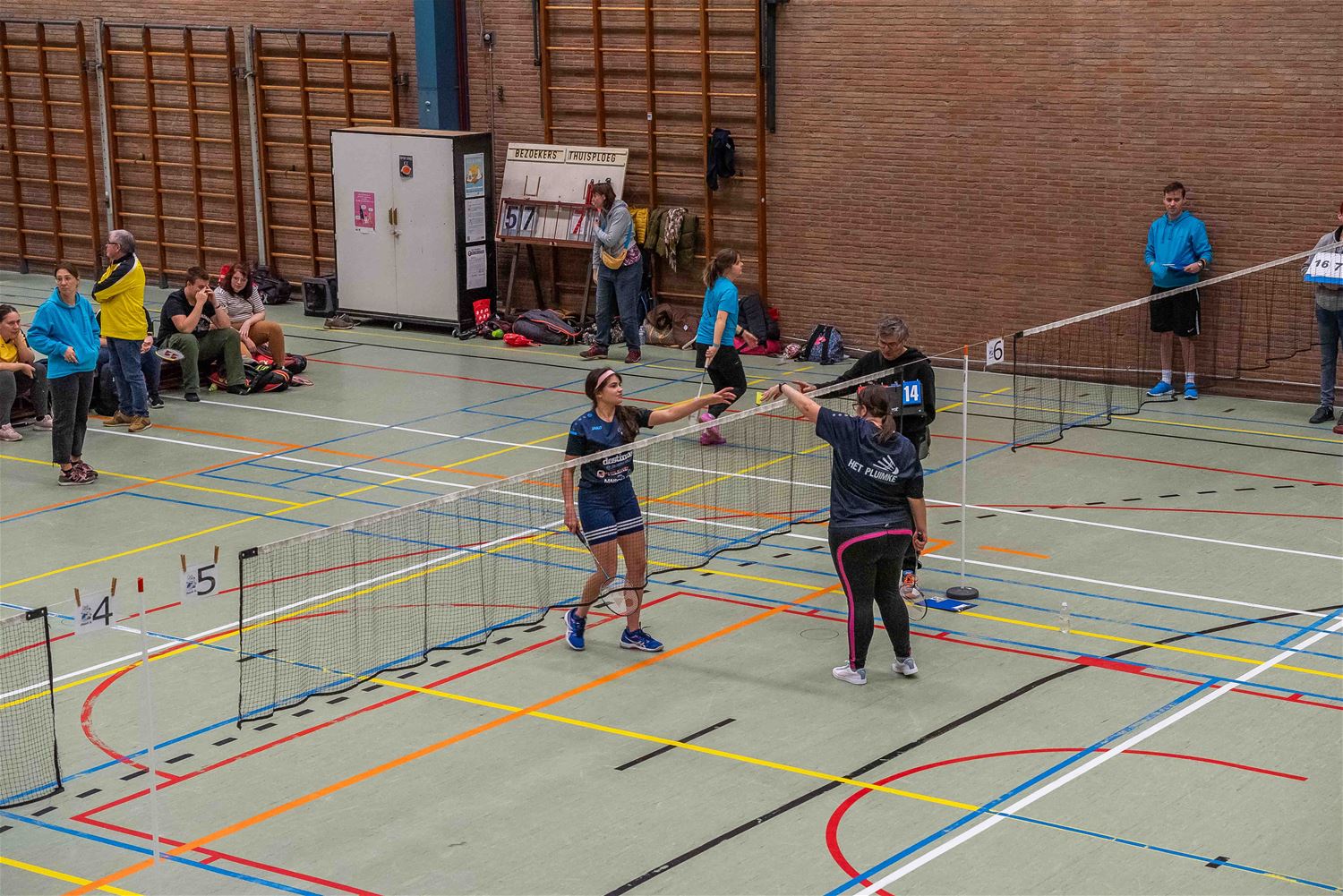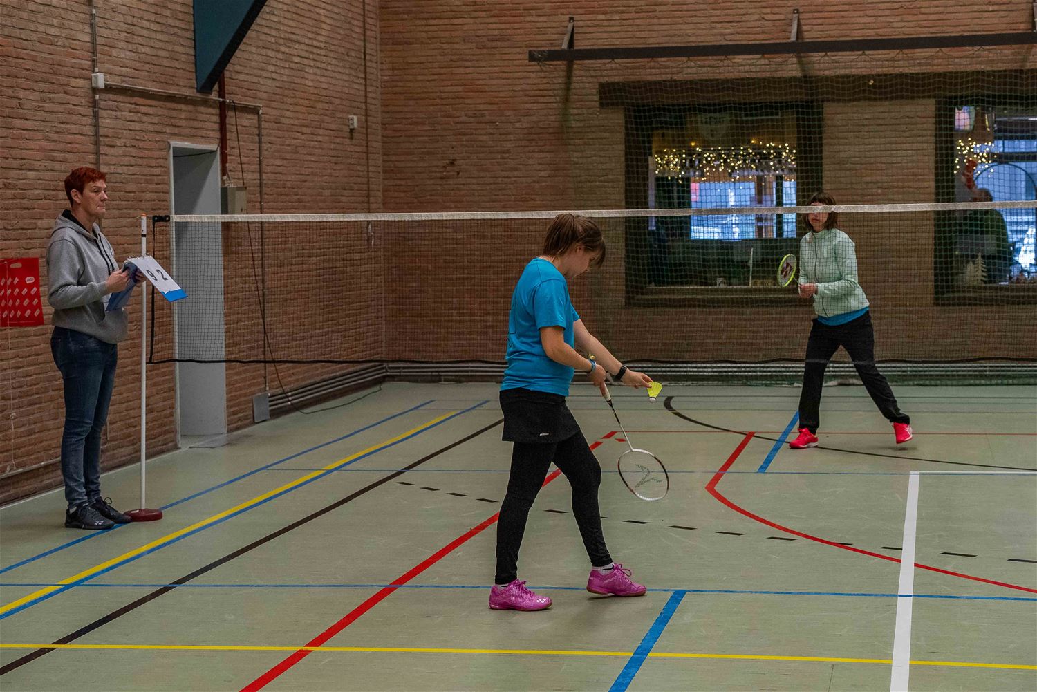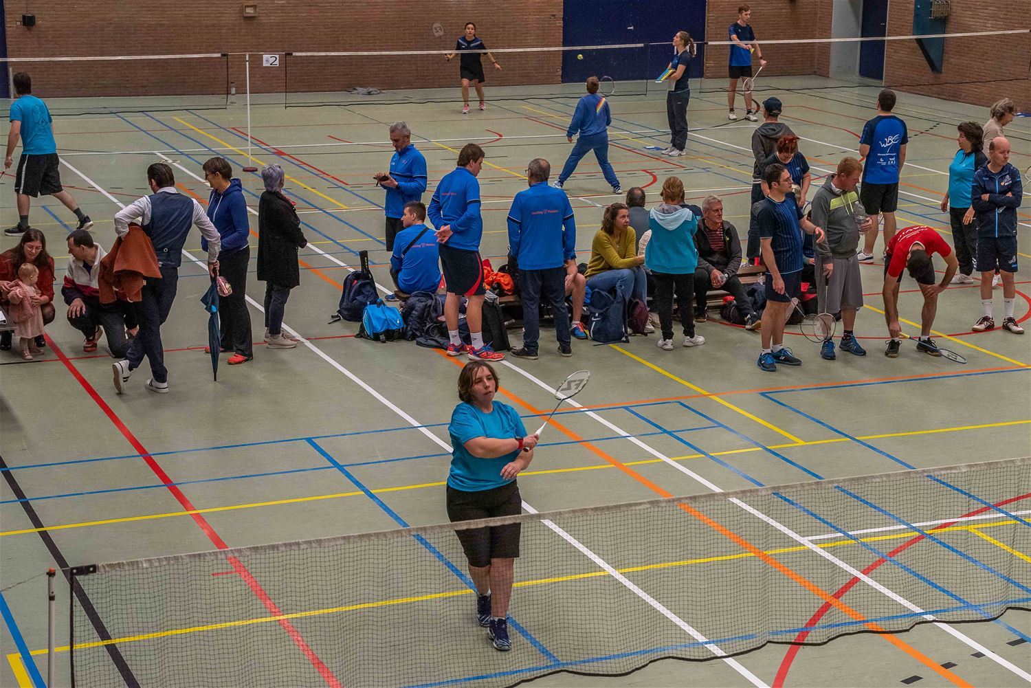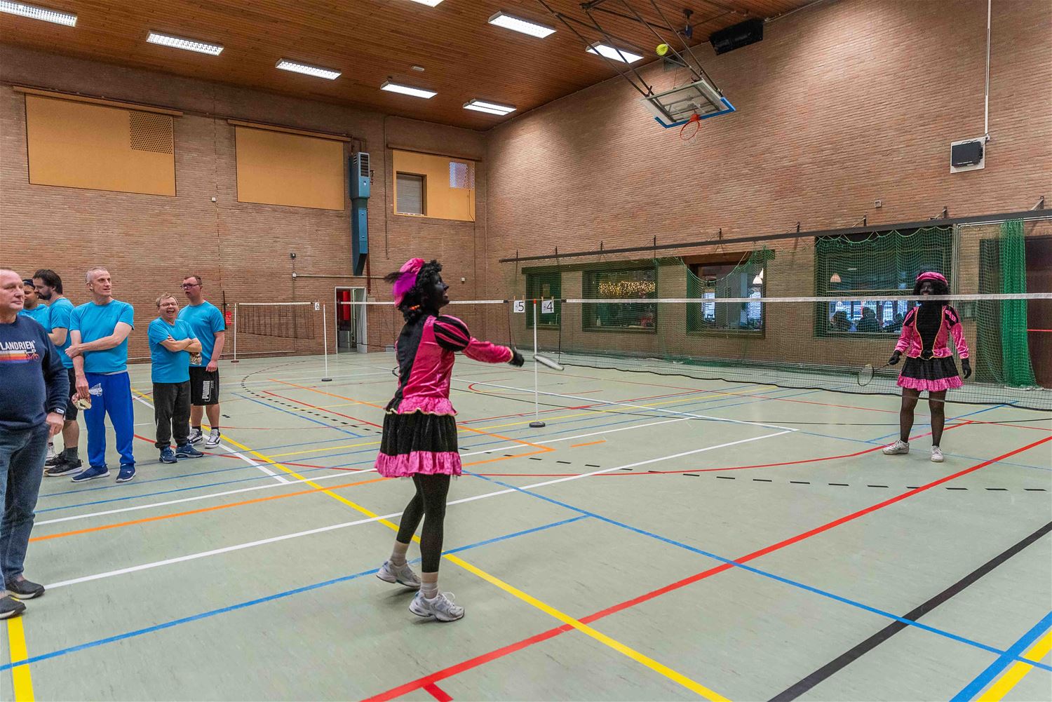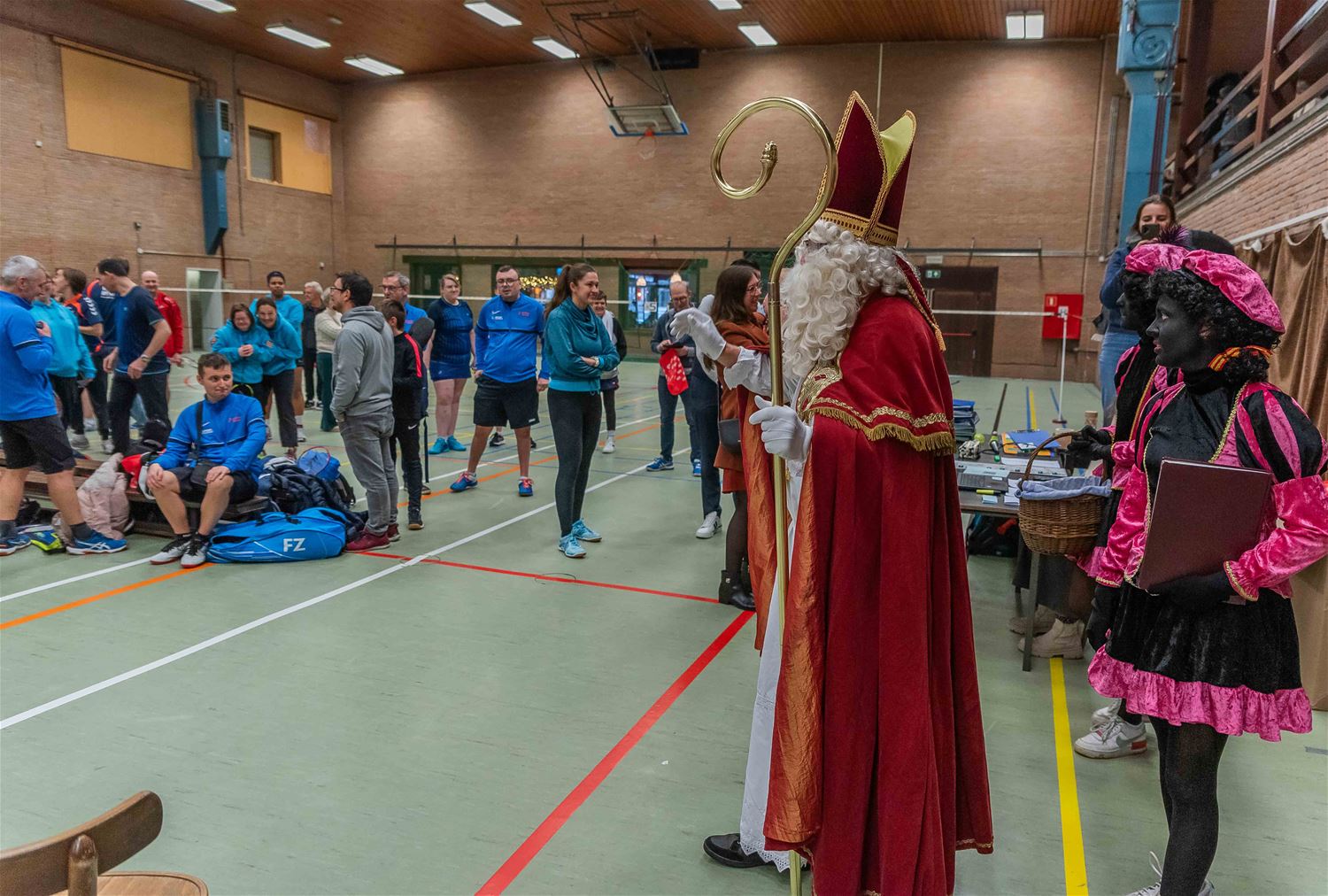 Badmintonclub Smash organiseerde vandaag haar traditionele G-badmintontornooi. In de voormiddag kwamen de spelers met een mentale beperking aan bod. Die gaven het uiterste van zichzelf maar tussendoor werd ook heel wat plezier gemaakt. Bovendien kreeg het gezelschap het bezoek van Sinterklaas en zijn zwarte pieten (of mieten?). Ook de assistenten van de goedheilige man demonstreerden dat ze kunnen badminton spelen. Smash heeft zelf heel wat G-badmintonners, onze fotografe haalde ze samen voor de groepsfoto. (foto's Ann Jordens)79182
