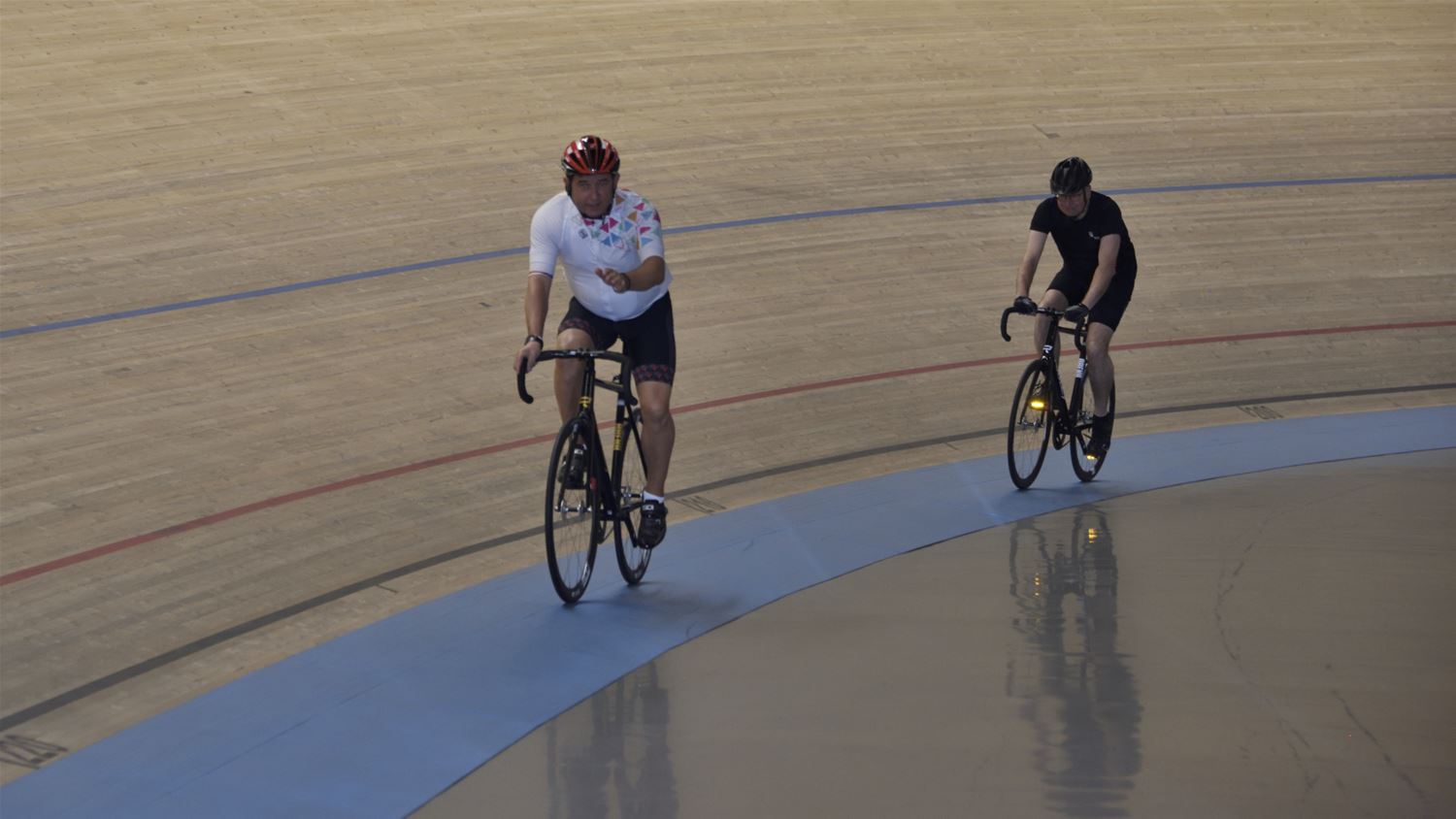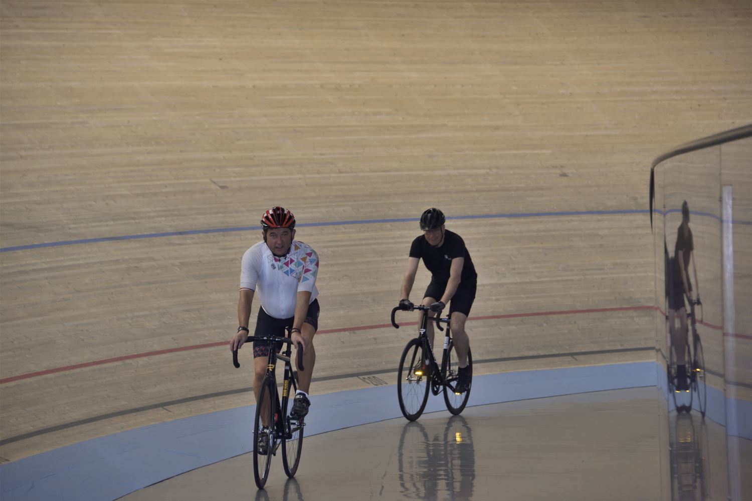Voor de gasten uit partnerstad Brilon stond er deze namiddag een verrassing op het programma. Ze werden uitgenodigd om een aantal rondjes op de piste van de Velodroom te rijden. Daarbij werden ze deskundig begeleid door Marc Wauters en ook burgemeester Mario Borremans die ondertussen al veel rondes op zijn teller heeft staan. Voor de Duitse gasten was het alleszins een spannende en sportieve ervaring. (foto’s Roger Convents)87150