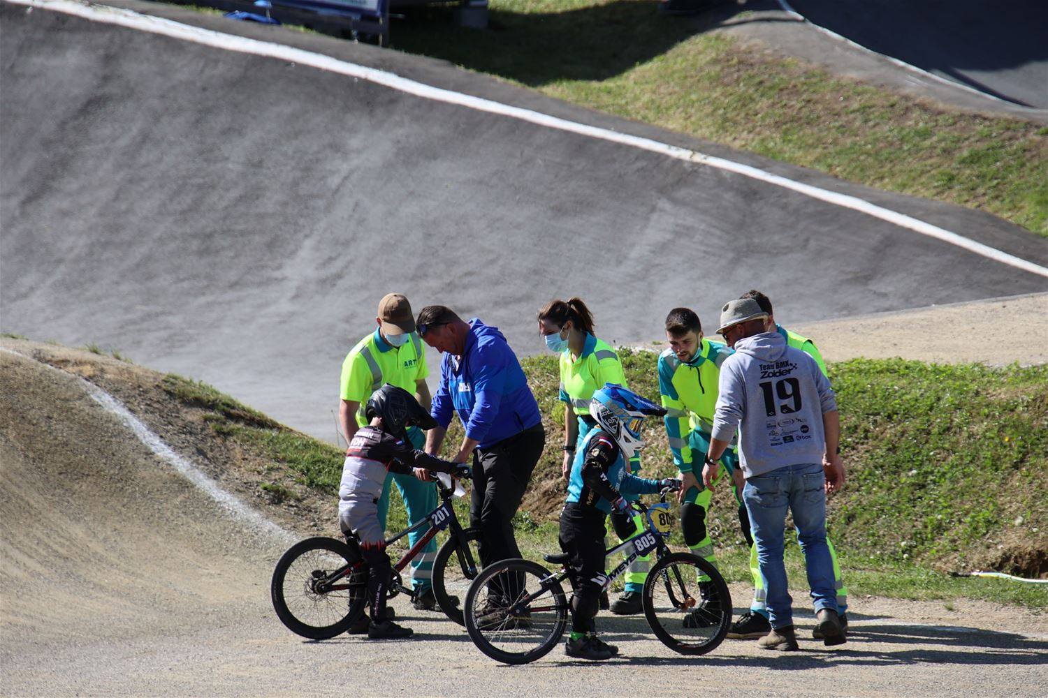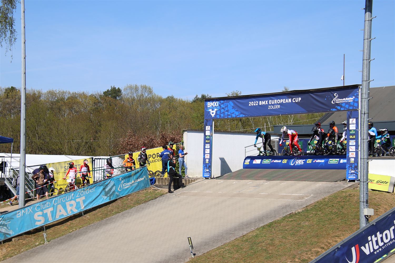 Bij grote organisaties hebben ze op de BMX-track op het circuit al eens vaker te kampen gehad met slechte weersomstandigheden. Maar dat was dus vandaag zeker niet het geval op de eerste dag van de Europa Cup, de zon was meestal van de partij en tegelijk was het ook niet te warm. De rijders maken er zoals steeds weer een knap kijkstuk van, waarbij vooral in de jongerencategorieën helaas een aantal rijders onzacht tegen de grond gingen. Tegelijk was het ook leuk rondhangen achter de schermen waar je een mix van alle mogelijke talen hoorde spreken. 72782