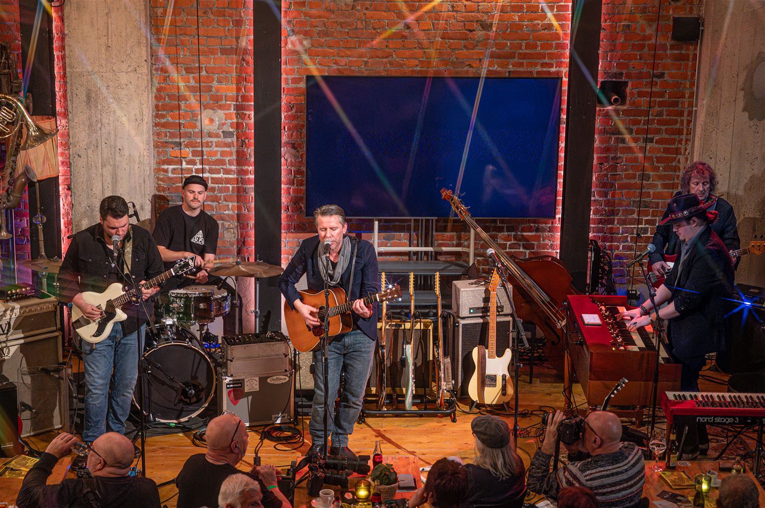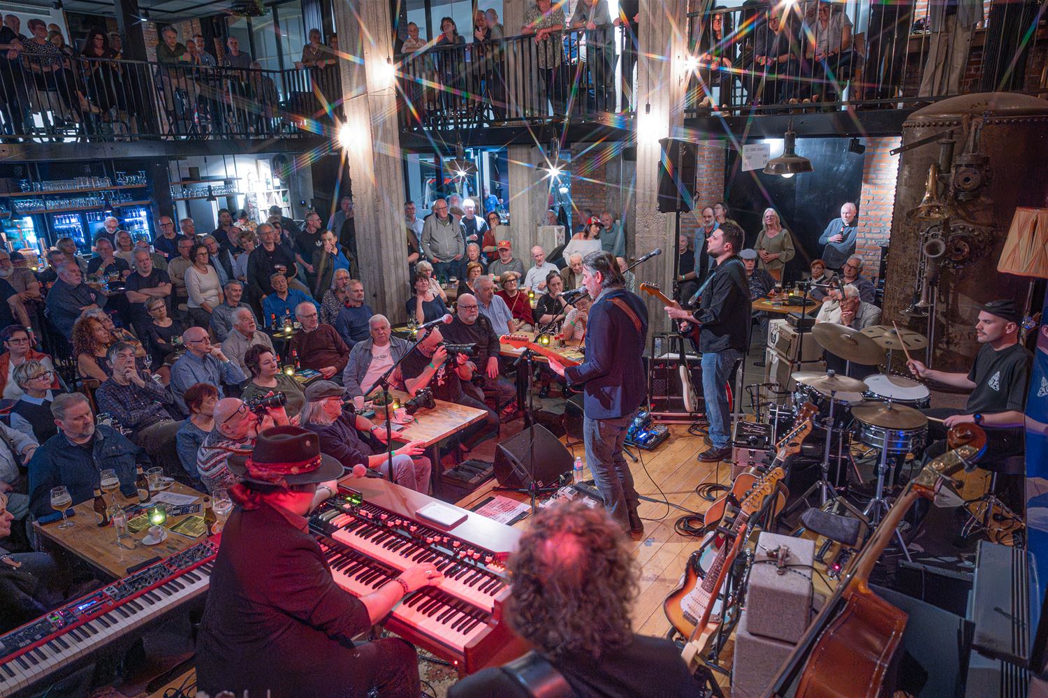 Guy Verlinde wordt 50 jaar en vierde dat in het MuzeCafé met een concert. Het werd een avond vol blues, roots en americana. Hij kon rekenen op de steun van zijn uitstekende muzikanten. Het concert dreef vooral op de guitar-power, sommige nummers werden zelfs met 4 gitaren gespeeld. Het dreef de sfeer ten top. (foto’s Roman Martyka)88229