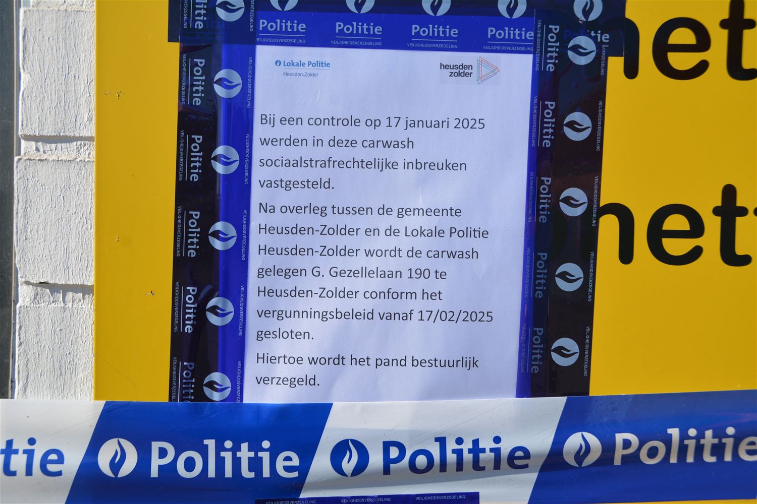 Er is opnieuw een handcarwash verzegeld in Heusden-Zolder, deze keer die aan Suska-Berg. Bij een controle een maand geleden zijn er “sociaalstrafrechtelijke’ inbreuken vastgesteld. Daarop is na overleg tussen gemeente en politie besloten om vanaf vandaag te zaak te sluiten en te verzegelen met politielint. In juni vorig jaar werd ook de handcarwash in de OL-Vrouwstraat verzegeld omdat die niet in orde was met zijn uitbatingsvergunning. Die is uiteindelijk niet meer opengegaan. UPDATE Burgemeester Mario Borremans bevestigt ondertussen dat de beslissing genomen is op basis van een rapport van de arbeidsauditeur. De sluiting is definitief. De handcarwash kan pas opnieuw openen als er een nieuwe uitbatingsvergunning is aangevraagd en afgeleverd. 84561