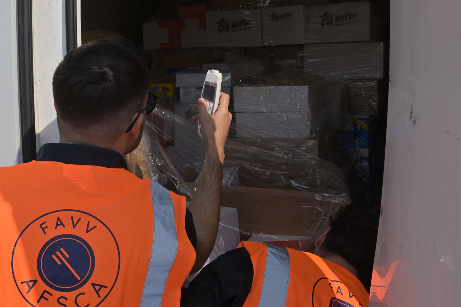 Gisteren volgde een tweede controleactie, ditmaal in samenwerking met het Federaal Agentschap voor de Veiligheid van de Voedselketen (FAVV), en dit op plaatsen in Beringen en Heusden-Zolder. Twintig voertuigen die instonden voor het vervoer van voedingsmiddelen werden geïnspecteerd. Dertien daarvan voldeden volledig aan de regelgeving. Bij twee voertuigen werd een gunstig resultaat genoteerd, zij het met opmerkingen. Vijf voertuigen bleken echter niet in orde. In drie gevallen leidde dit tot een proces-verbaal en de onmiddellijke vernietiging van de vervoerde producten, wegens overtredingen op vlak van temperatuurbeheersing en gebrek aan traceerbaarheid. Eén voertuig werd zelfs verzegeld. De chauffeur moest naar een erkend bedrijf rijden waar de lading onbruikbaar werd gemaakt. Het voertuig voldeed niet aan de wettelijke eisen voor voedseltransport en de exploitant beschikte slechts over een basisregistratie, terwijl een toelating verplicht was.