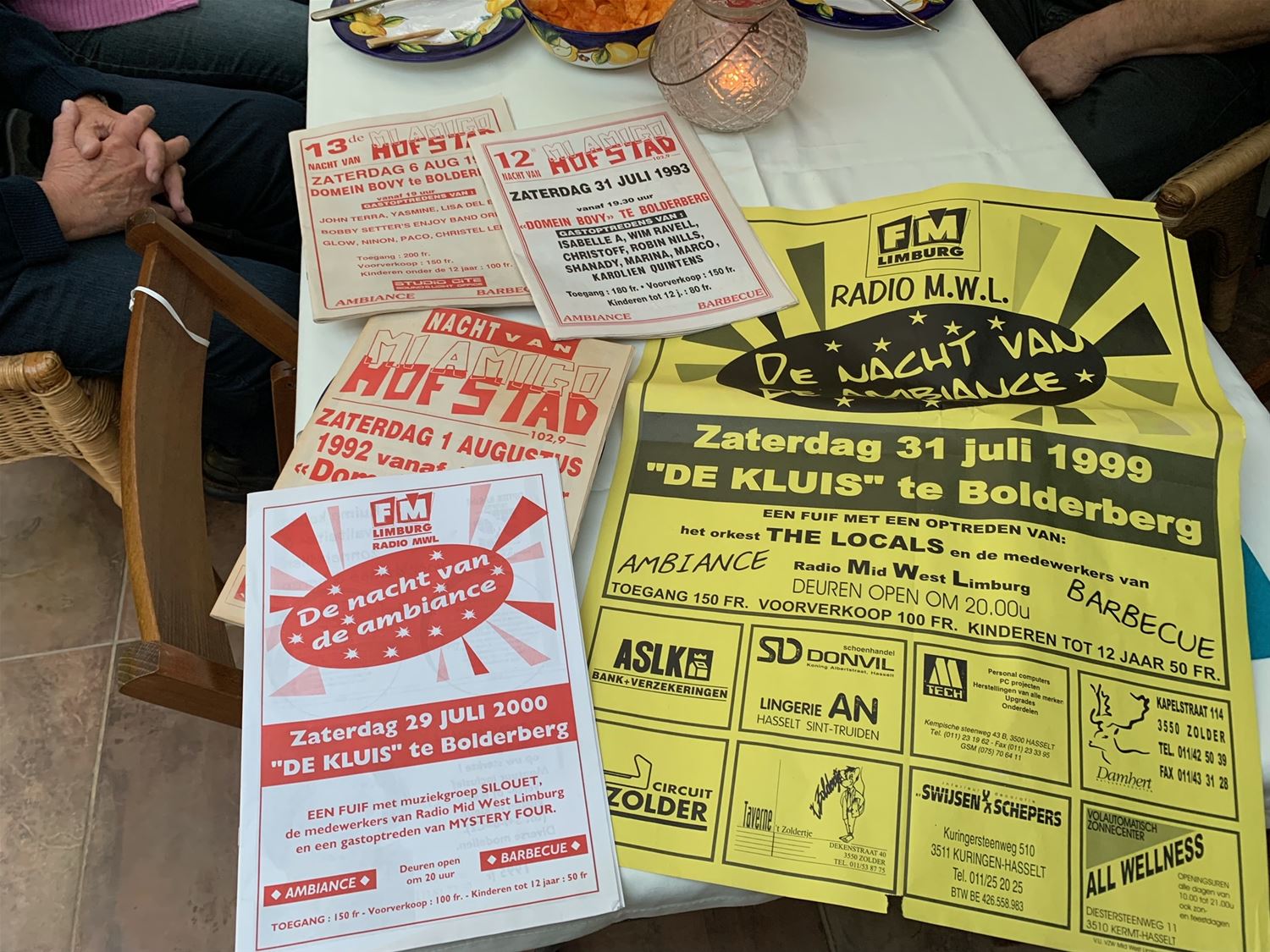 Vanavond organiseerde Jan Remen in Heusden een reünie van dj's en medewerkers van Radio Mi Amigo Hofstad. Die lokale zender - een fusie van twee bestaande stations - was in de jaren '80 en '90 erg populair in de regio. De studio was gevestigd in de pittoreske omgeving van De Kluis in Bolderberg. Velen denken met nostalgie terug aan de programma's maar zeker ook aan de showavonden en vedettenparades waar destijds heel wat grote namen uit de Vlaamse showbizz optraden. Die bijzondere momenten werden vanavond opgediept met affiches en programmaboekjes van weleer. Het radiostation is ondertussen al lang uit de ether, maar de herinneringen blijven. (foto's Julien Maebe)78216