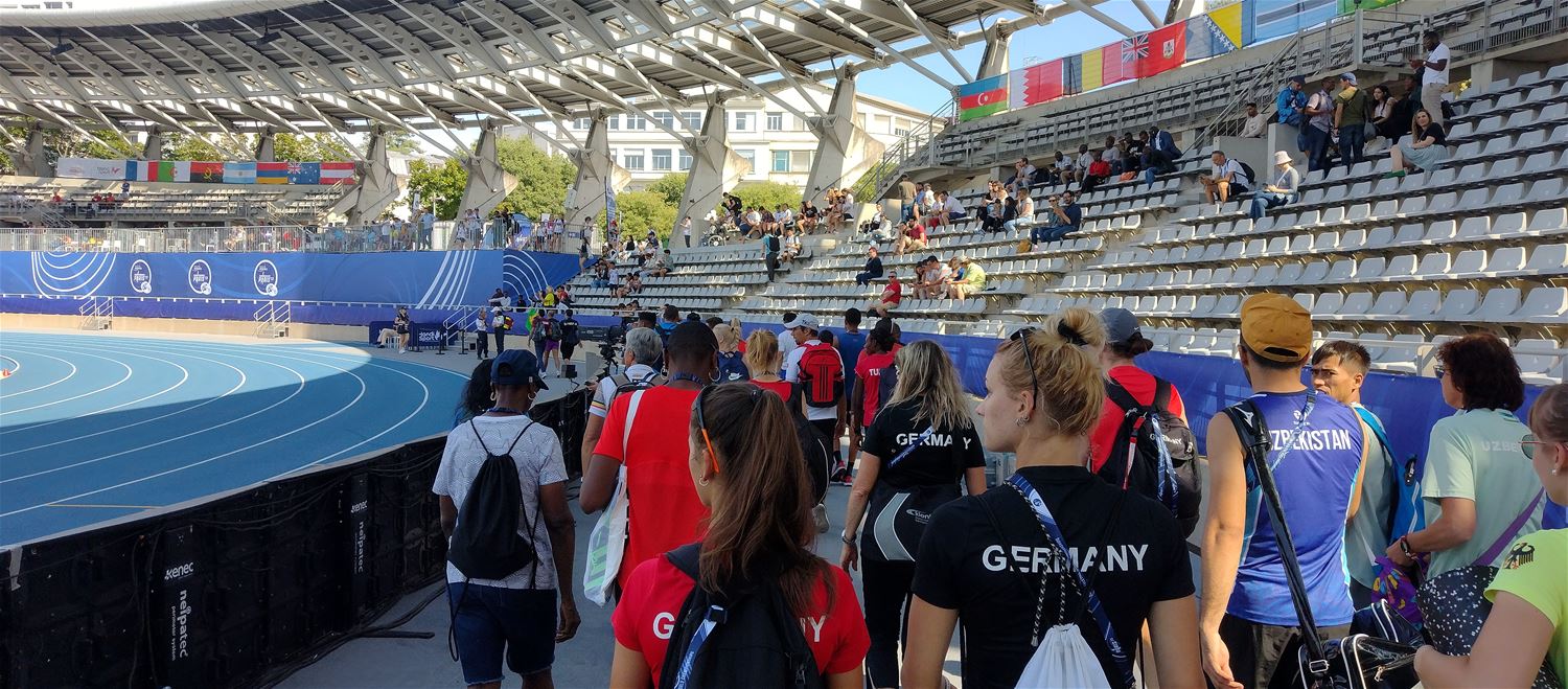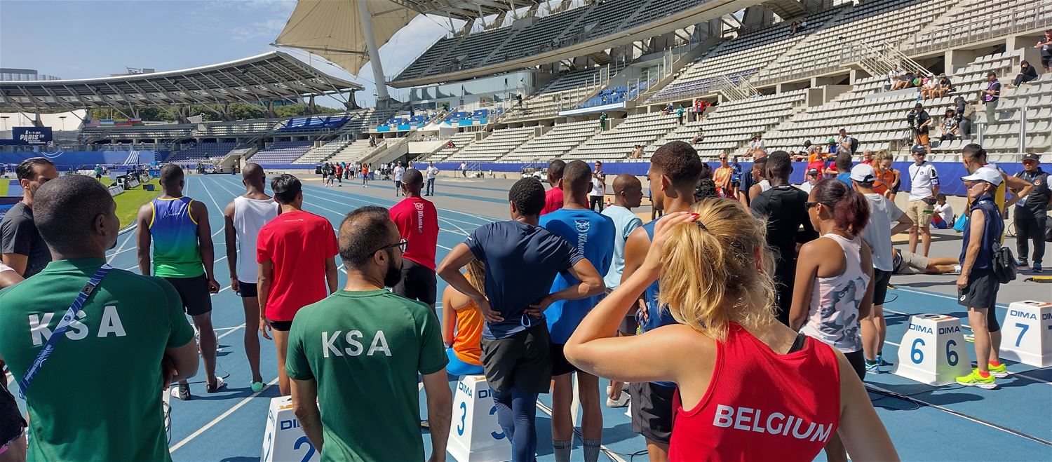 Kiara Maene en haar collega's werken een druk programma af op de World Para Athletics Championships in Parijs. Gisteren in de voormiddag stond de starterspractice op het programma. "Daarbij is het de bedoeling dat iedereen de kans kreeg om de start te oefenen. Omdat iedereen vanuit zijn beperking de start moet kunnen oefenen in die omstandigheden. Zeker voor atleten zoals Kiara die voor de eerste keer deelnemen is dat belangrijk. De stress zal zeker voor hen hoog zijn", analyseert trainer Marc Hermans. Eerst was er de individuele opwarming op de opwarmingspiste waarna ze naar de officiële piste werden begeleid. Na verschillende starts werkten ze de training verder af op de opwarmingspiste, want de tijd was beperkt tot 1 uur voor alle lopers. 's Avonds stond de openingsceremonie op het programma waarvan de atleten ten volle hebben genoten.77999