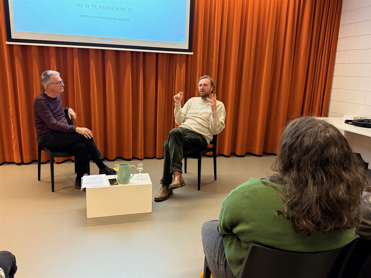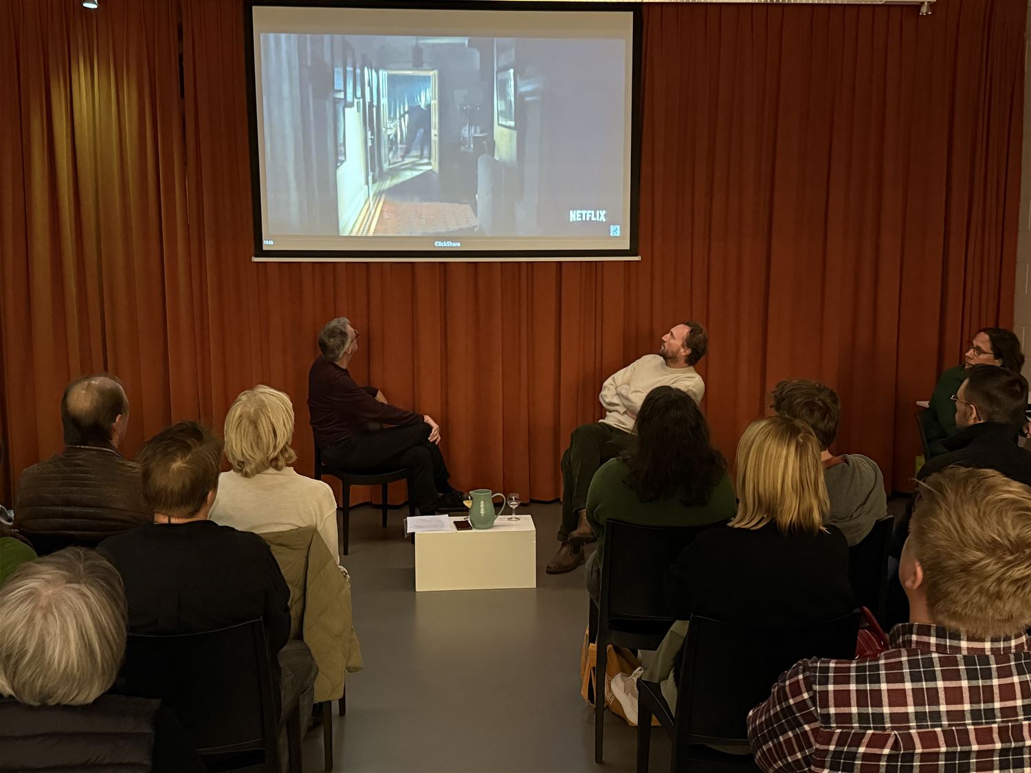 Vanavond was regisseur Tim Mielants te gast bij De Kijkclub in de bibliotheek. Een groep filmgeïnteresseerden bespreekt vier keer per jaar een film die ze vooraf hebben bekeken. Deze keer was dat De Patrick, de bekroonde film van Tim Mielants met in de hoofdrol Kevin Janssens. Hij krijgt na de dood van zijn vader de leiding van de naturistencamping van de familie, maar een verloren hamer begint dan een belangrijke rol te spelen Johan Simons ging vanavond in gesprek met de regisseur die een boeiend verhaal te vertellen heeft, waarbij uiteraard ook de andere aanwezigen hun vragen mochten afvuren. En mocht u het zich afvragen, in tegenstelling met de film heeft iedereen zijn kleren aangehouden. (foto’s Julien Maebe)86695
