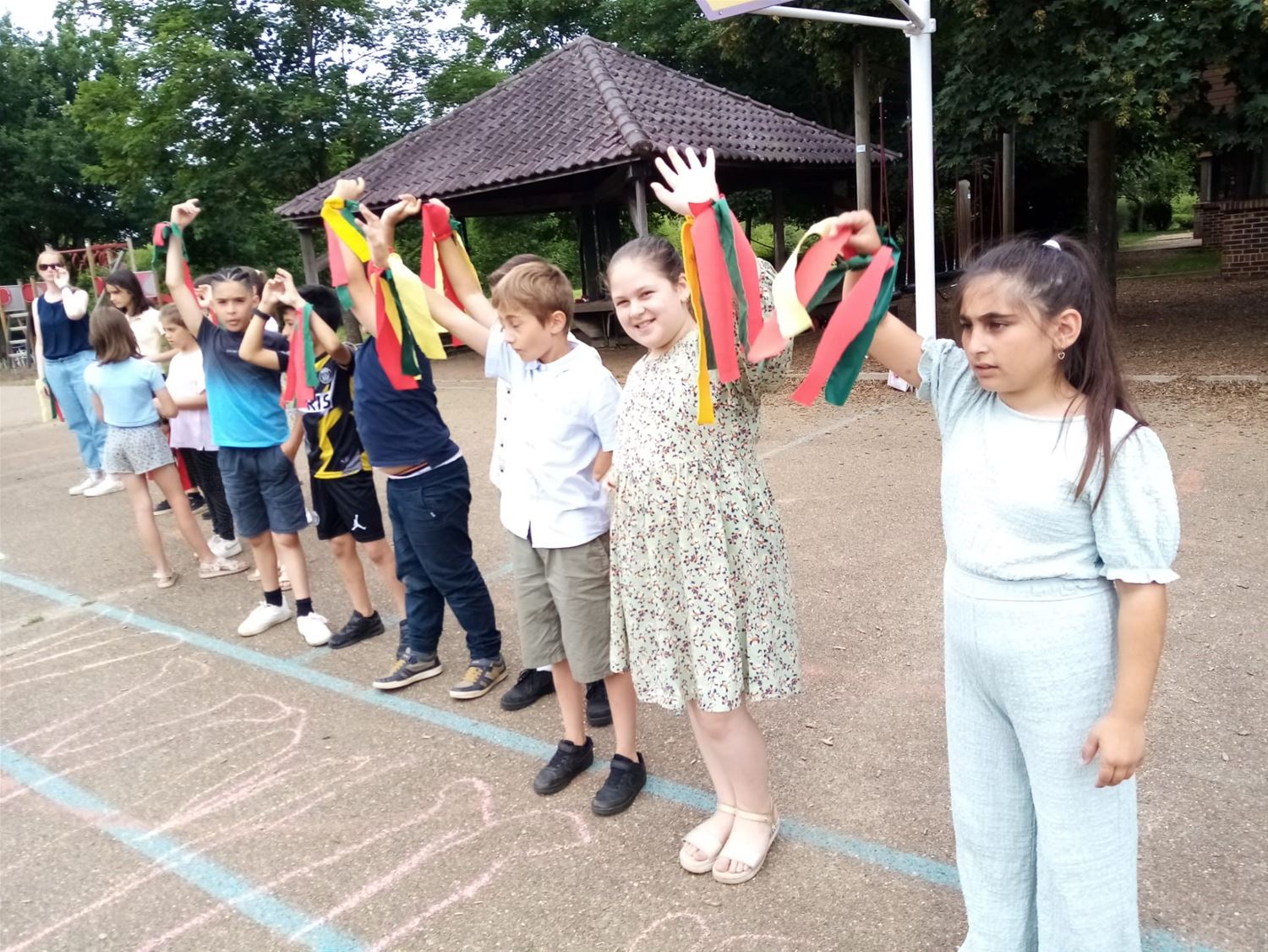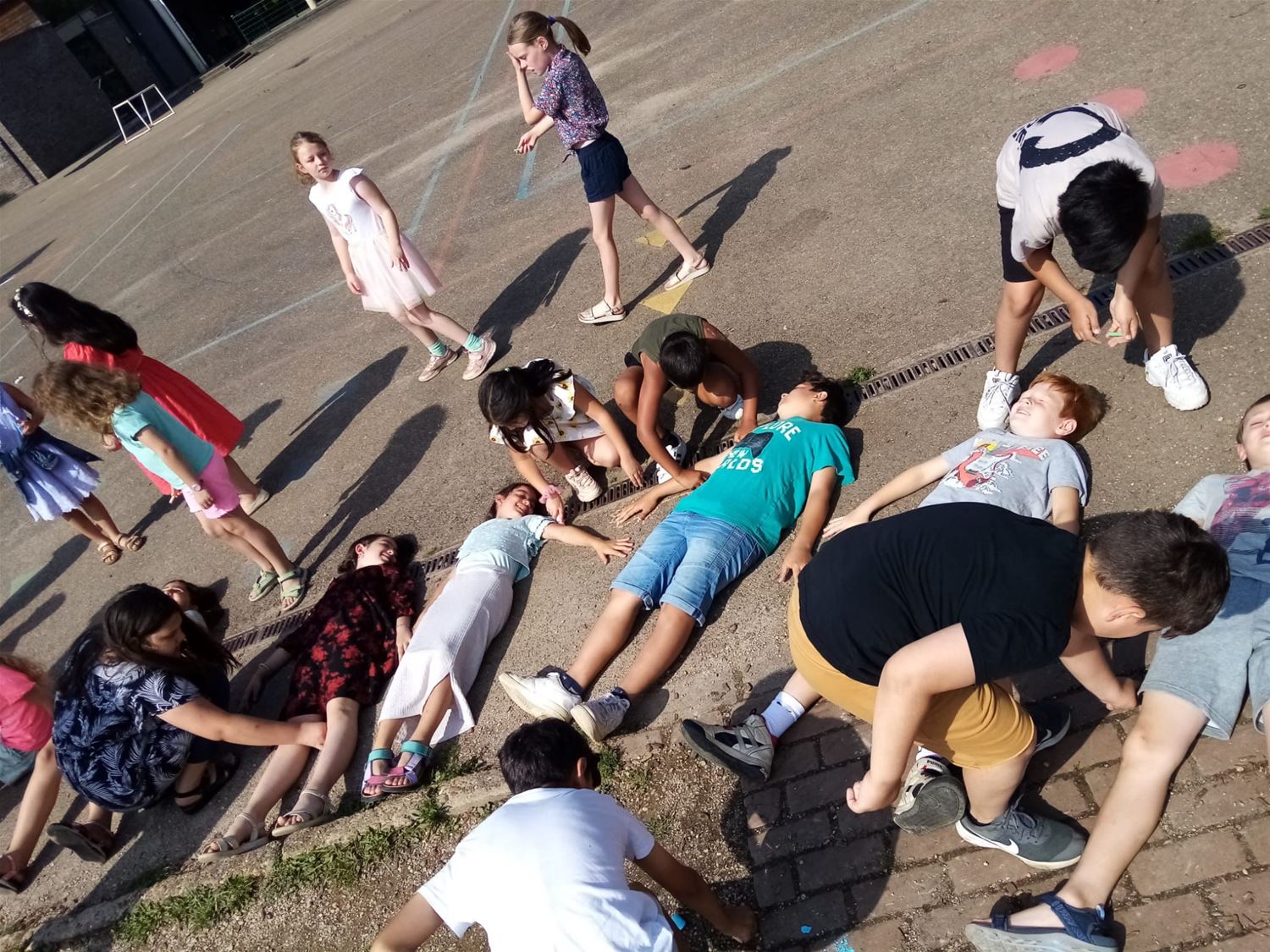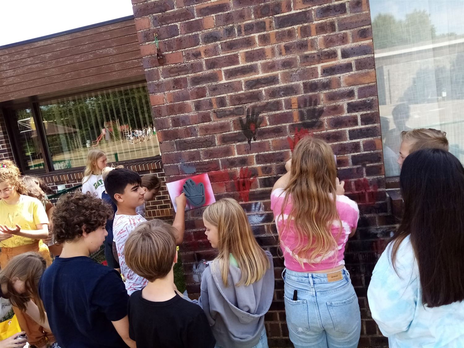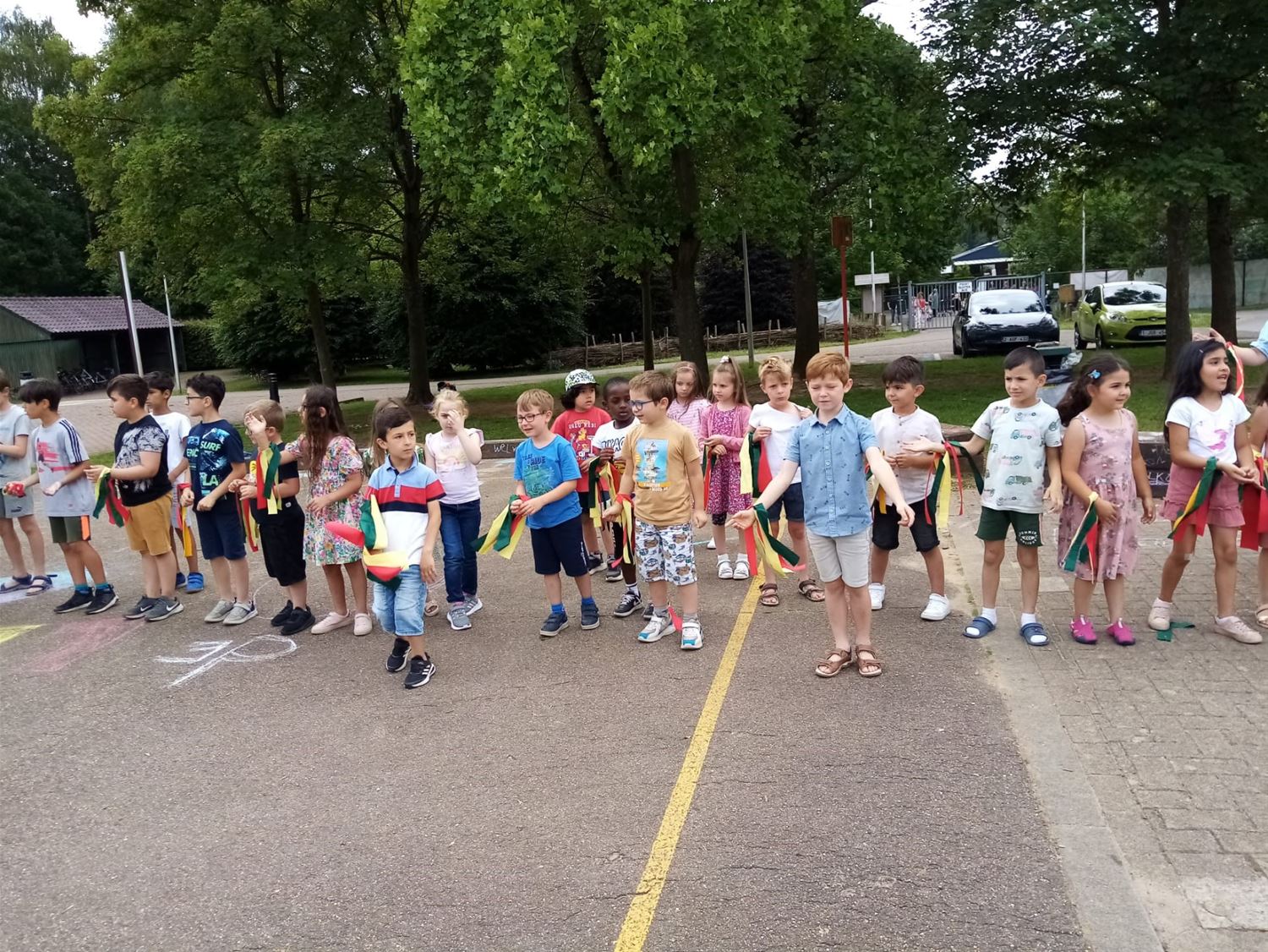 De laatste schooldag is altijd een bijzondere dag waar vreugde en heimwee dicht bij elkaar liggen. Maar in de gemeentelijke basisschool Beekbeemden was het een ronduit historische dag. Samen met alle kinderen en personeelsleden werd afscheid genomen van de oude school. Maar dat ging niet zonder slag of stoot, de kinderen kregen als uitdaging een zoektocht naar de sleutels van de nieuwe school, die zouden gestolen zijn. Met een heleboel opdrachten zoals een muur van herinneringen en graffiti en een polonaise door heel het schoolgebouw, vonden ze de sleutel terug. Aan het eind zongen ze samen het 'Leerplaneetlied', want in september start het nieuwe schooljaar in de Leerplaneet, een gloednieuw ultramodern gebouw aan de Ringlaan. En in Beekbeemden, daar blijven alleen nog maar herinneringen ronddwalen. (foto's Heidi Vanluyd)74516