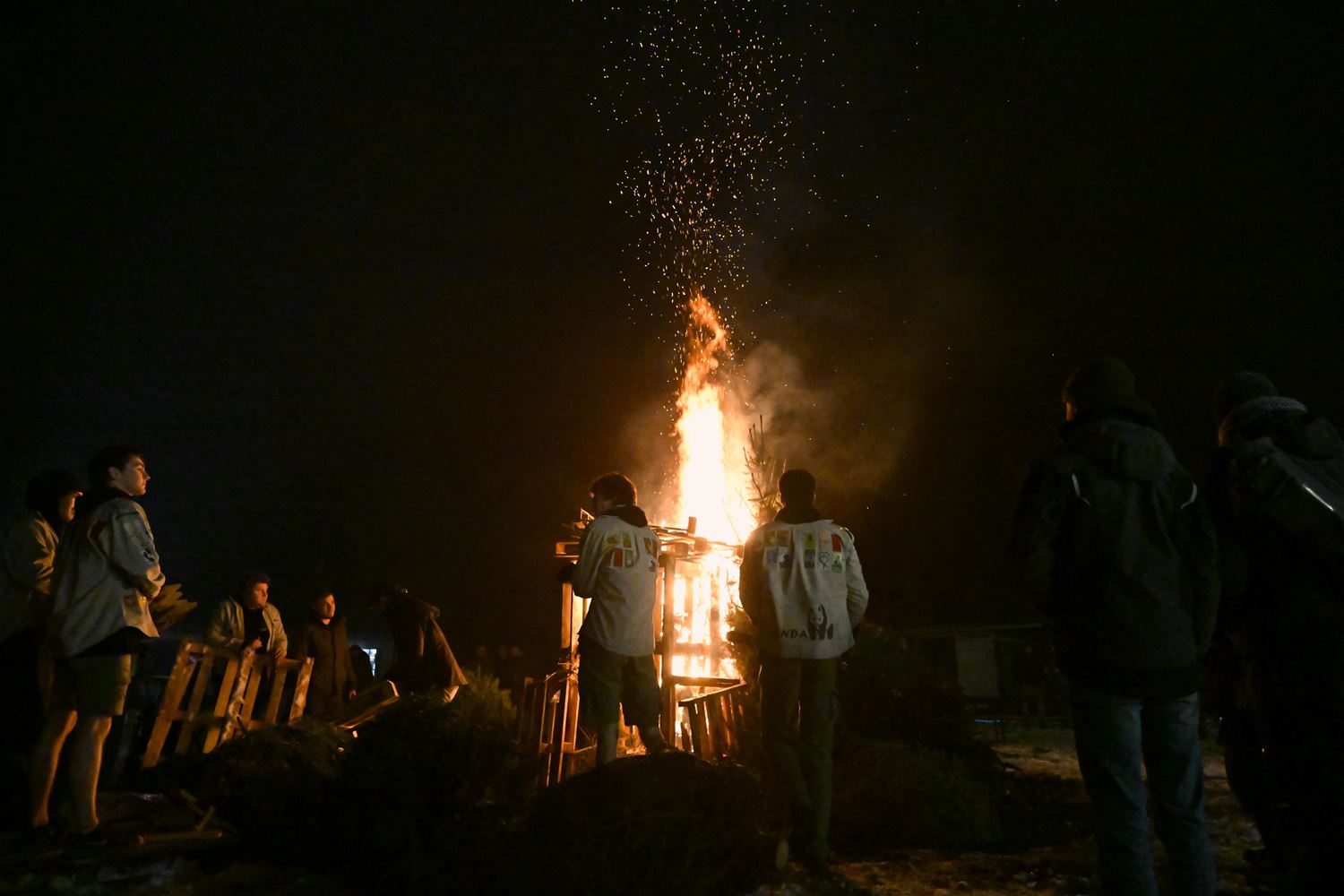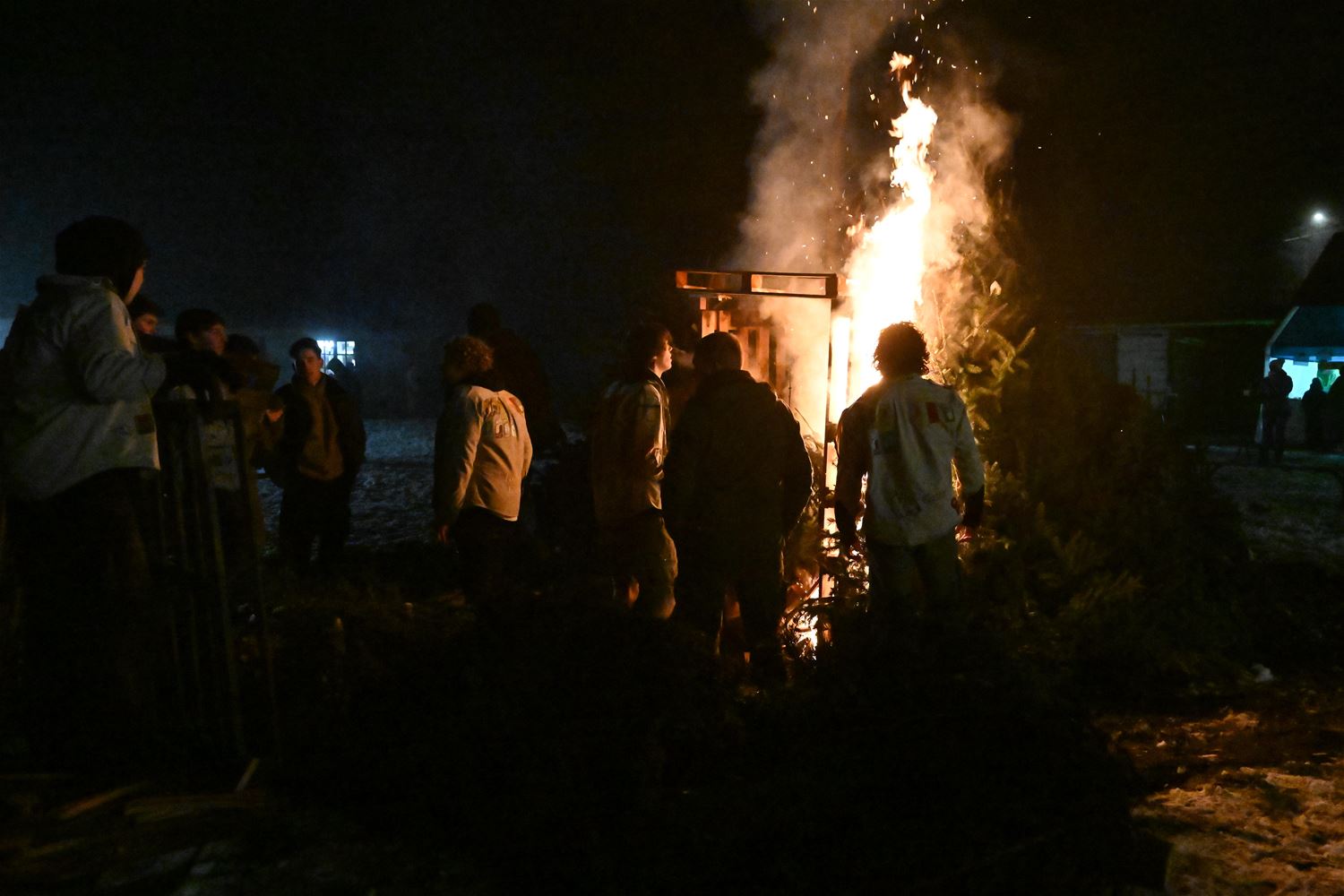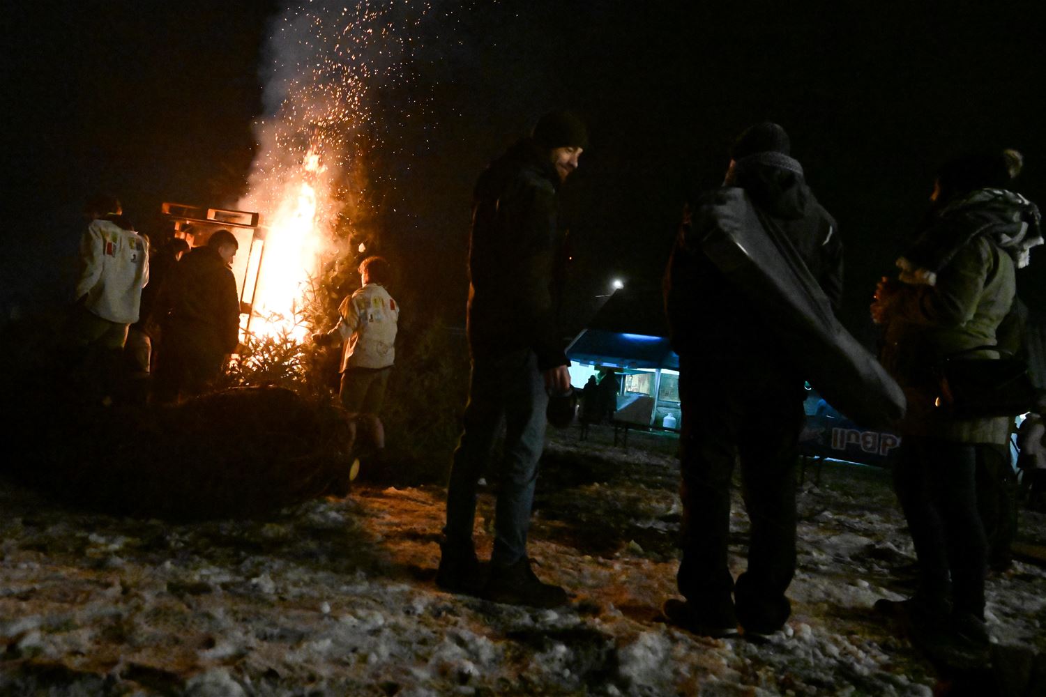 De Scouts & Gidsen De Perenboom hielden vanavond hun traditionele kerstboomverbranding. De koude en de nattigheid speelden hen wat parten. Het publiek kwam langzaam toegesijpeld maar in de loop van de avond was er voldoende volk om er een gezellig gebeuren van te maken. Ook het vuur aanmaken bleek in de huidige omstandigheden geen sinecure, maar voor scouts is geen uitdaging nu eenmaal te moeilijk. Zo laaiden na een tijdje de vlammen hoog op en konden iedereen zich aan het vuur opwarmen, net als aan de soep, de gluhwein, de hotdogs en andere lekkernijen. (foto's Heidi Daniëls)84193