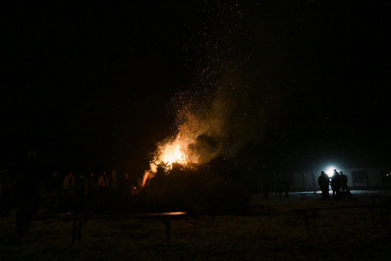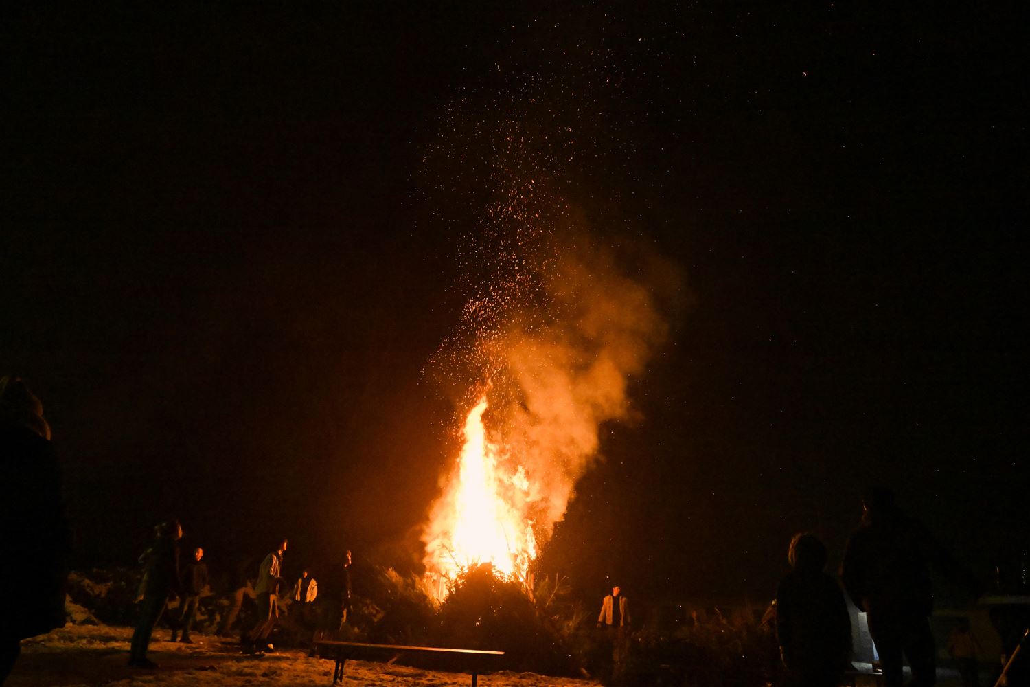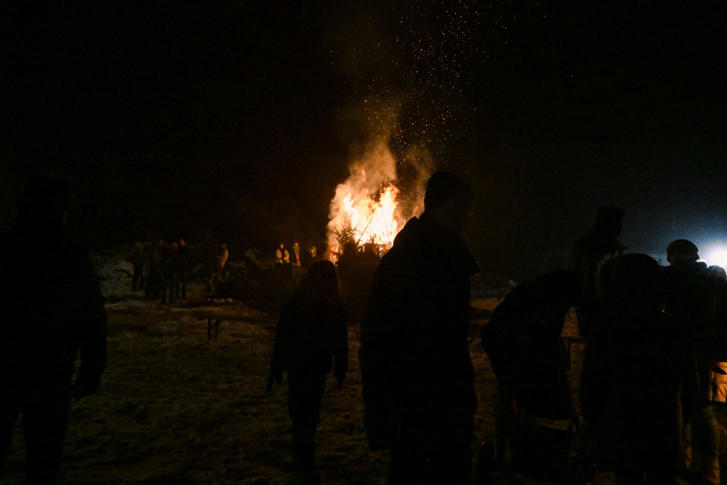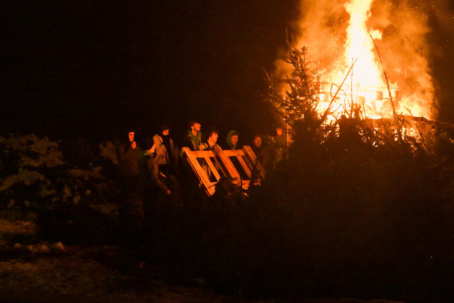 De Scouts & Gidsen De Perenboom hielden vanavond hun traditionele kerstboomverbranding. De koude en de nattigheid speelden hen wat parten. Het publiek kwam langzaam toegesijpeld maar in de loop van de avond was er voldoende volk om er een gezellig gebeuren van te maken. Ook het vuur aanmaken bleek in de huidige omstandigheden geen sinecure, maar voor scouts is geen uitdaging nu eenmaal te moeilijk. Zo laaiden na een tijdje de vlammen hoog op en konden iedereen zich aan het vuur opwarmen, net als aan de soep, de gluhwein, de hotdogs en andere lekkernijen. (foto's Heidi Daniëls)84193