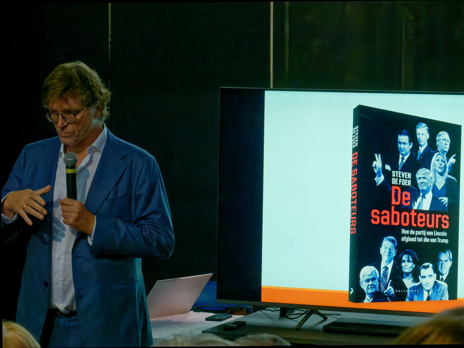 Deze namiddag luisterden leden van Neos Heusden-Zolder aandachtig naar Amerika-specialist en gepassioneerd verteller Steven De Foer. Met voorbeelden toonde hij aan hoe de Republikeinse Partij de kiemen voor de huidige transformatie al 90 jaar in zich draagt. Dat is ook de leidraad van zijn boek ‘De saboteurs’. Hij legde uit hoe president Trump via allerlei ingrepen probeert alle macht (uitvoerende, bestuurlijke én rechterlijke) naar zich toe te trekken en zo een potentieel gevaar vormt voor de democratie. De vraag rijst ook of hij met een grondwetswijziging nog een derde ambtstermijn kan afdwingen. En dat het thema geen ver van ons bed show is, bleek uit de discussie die nadien nog bij een stuk vlaai en koffie werd voortgezet. (foto’s Robrecht Froyman)86694