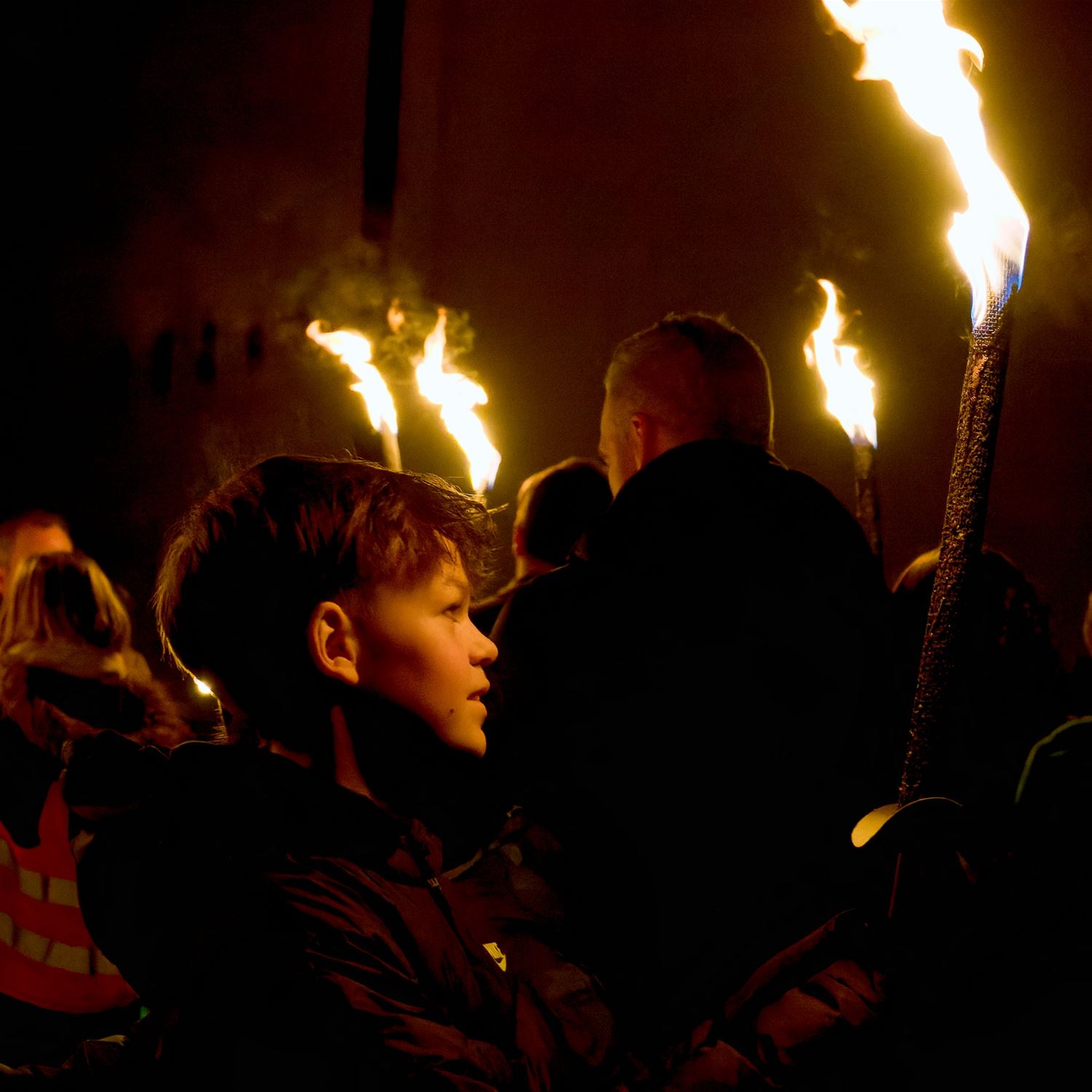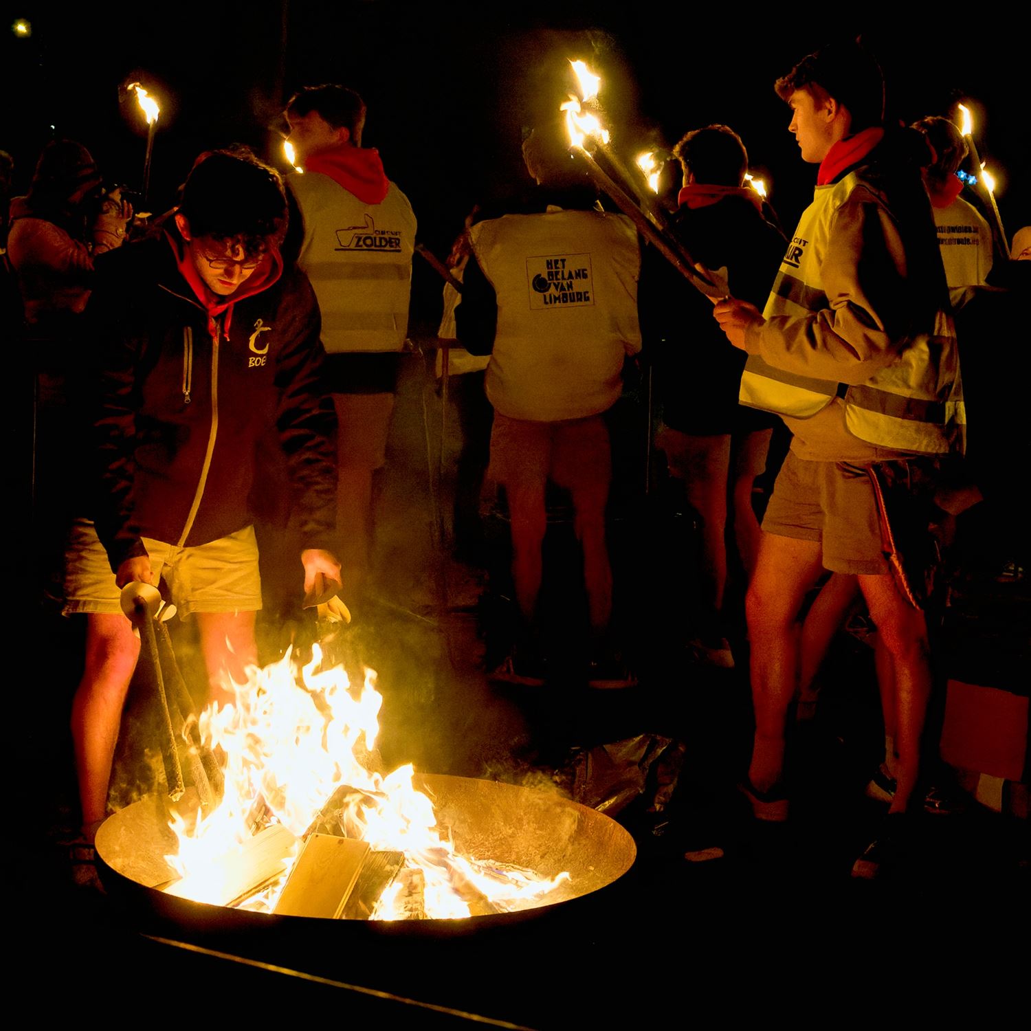 Honderden jongeren met fakkels door Boekt