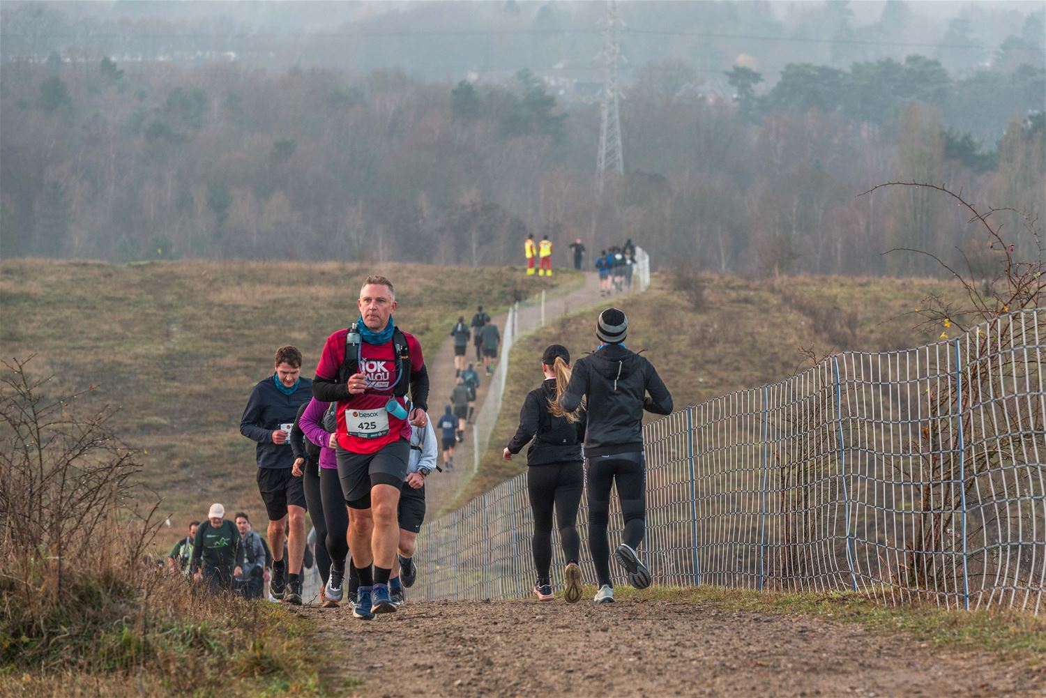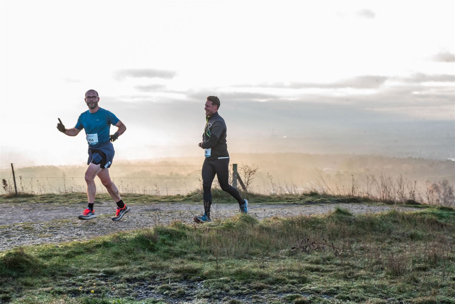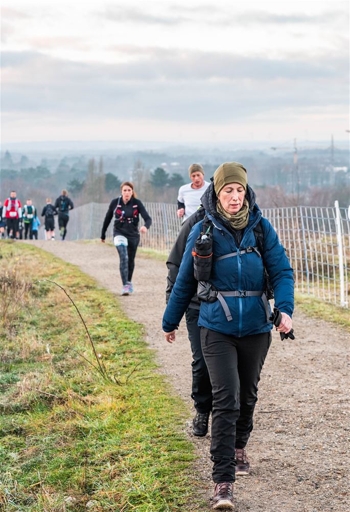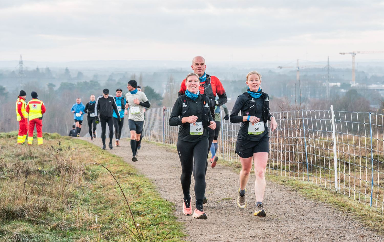 Het was vanmorgen erg druk op De Schacht want daar werd de start gegeven voor de langere afstandsnummers voor de Mijnentocht. In de balzaal van Muze was het aanschuiven om de nummers af te halen. Na de gezamenlijke opwarming gingen de eerste starters er meteen ambitieus tegenaan. Ze doorkruisten de lokale gebouwen zoals ZLDR Luchtfabriek en heel wat dapperen hadden er de mijnterril bijgenomen. Daar was het dan ook een drukte van jewelste van atleten die opwaarts klommen, terwijl anderen de afdaling al hadden ingezet. Wie er de tijd voor nam, werd op de top getrakteerd op een pittoresk uitzicht waarbij het ochtendlicht deels in de nevel werd opgeslorpt. Heel wat deelnemers deden het trouwens rustig aan, voor hen was aankomen en genieten onderweg belangrijker dan één of ander klassement. Vervolgens ging het door bos en groen richting Beringen, waar de finish wacht op be-MINE. (foto’s Ann Jordens)87227