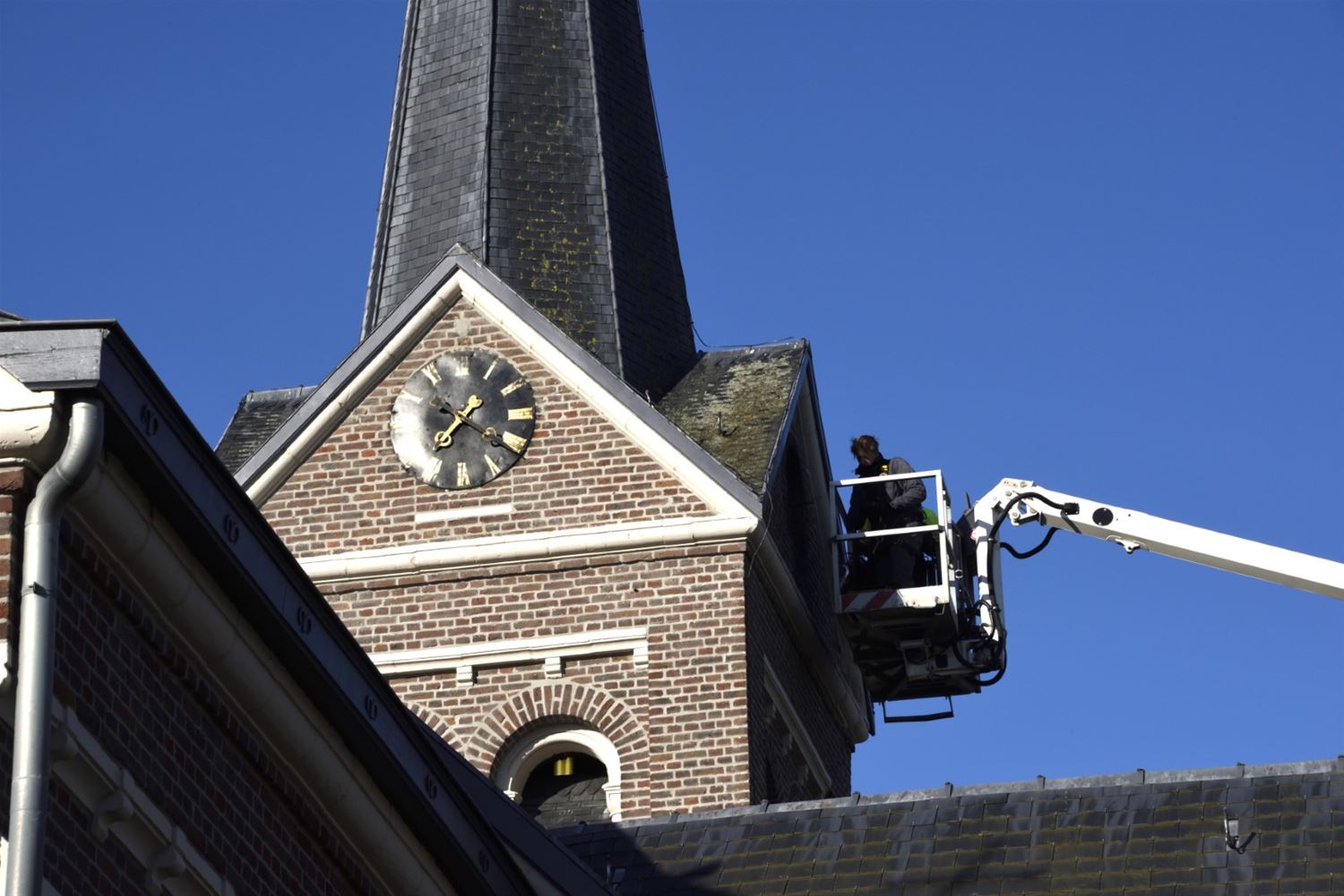 In Bolderberg waren er alsmaar meer inwoners en passanten die het uurwerk in de kerktoren niet meer vertrouwden. Ze kwamen immers al eens te laat op een vergadering of moesten op de stand van de zon afgaan om thuis geen koude soep voorgeschoteld te krijgen. Een grondige inspectie bracht de problemen aan het licht: de tand des tijds - die al sinds 1950 aan het uurwerk knabbelt - en een blikseminslag in 2019 hebben ervoor gezorgd dat het centraal aandrijvingsmechanisme en de verdelingsaandrijvingen tot op de draad versleten waren. En de wijzerplaten hadden ook hun beste tijd gehad. Die aan de kant van de Sint-Jobstraat moest na de blikseminslag zelfs opnieuw vastgezet worden. De sociale druk nam toe, er daagde een sponsor op ... en de wereldvermaarde firma Clock-O-Matic werd voor de restauratie aangesproken. De CEO - uit Koersel - liet zijn Limburggevoel spreken zodat de vernieuwingsoperatie een budgettair haalbare klus werd. Vandaag was het zover en werd het Bolderbergse wonder in één dag voltrokken: de oude wijzerplaten verdwenen en de nieuwe staan te blinken in de toren. En niemand die in Bolderberg voortaan nog een geldig excuus heeft om te laat te komen.77150