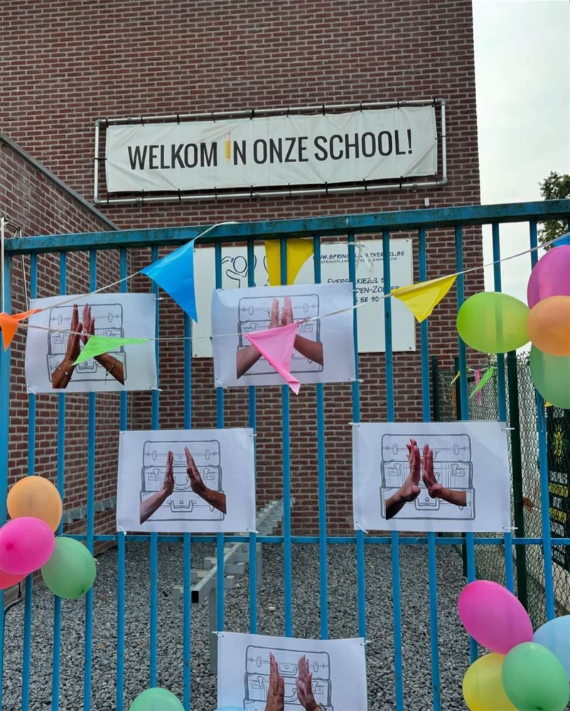 Dag zomervakantie, hallo nieuw schooljaar! Zo openden ze vanmorgen in ‘De Springplank’ het schooljaar en de kinderen hadden al veel verhalen klaar om te vertellen na zo'n heerlijke zomervakantie. Dat komt goed uit, want het jaarthema luidt ‘Jouw verhaal telt’. En wat die handen aan de poort doen, zal de komende dagen duidelijk worden…82893